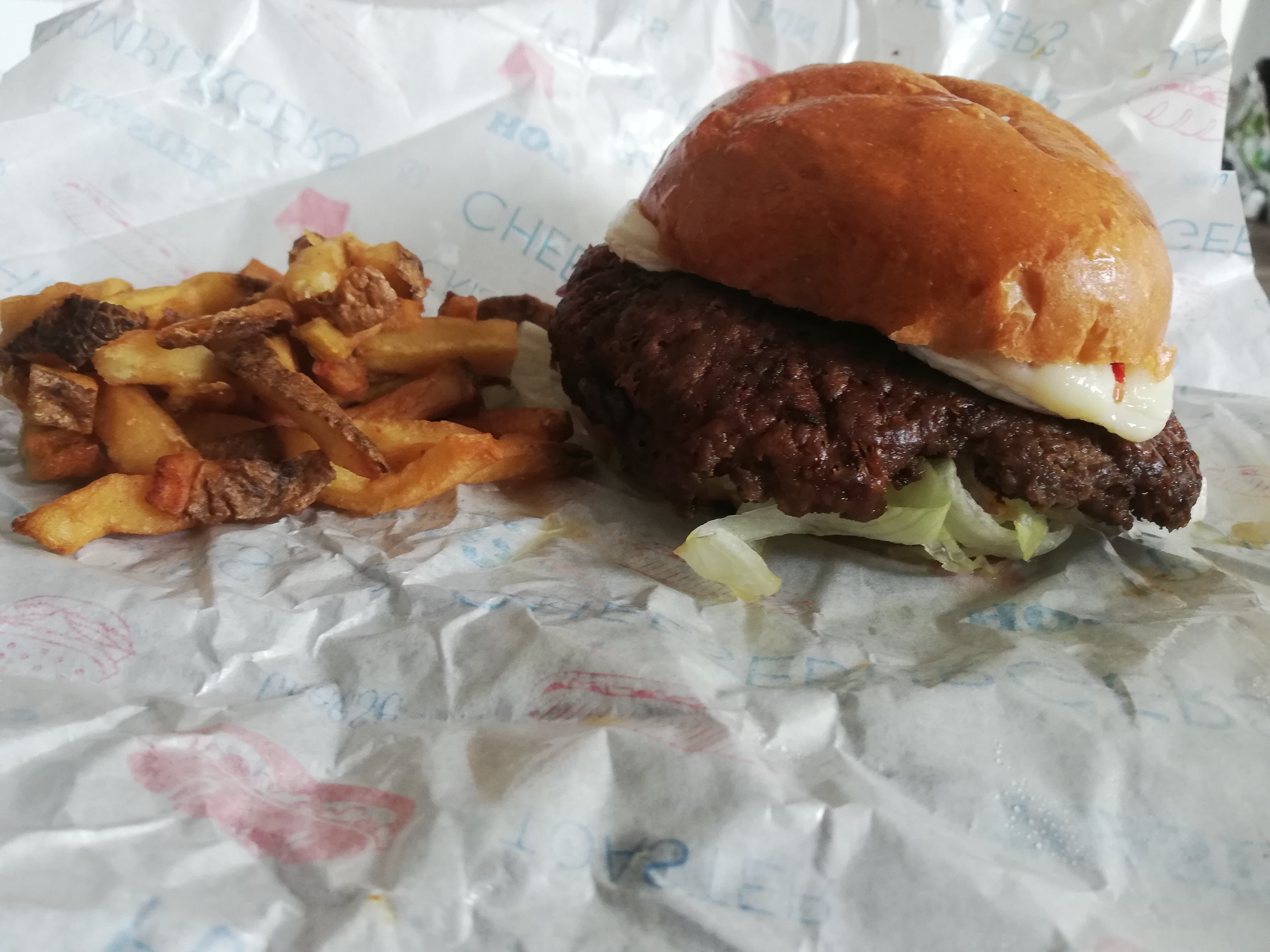 Un burger artisanal, où l'on en a pour son argent et pour sa gourmandises. Un bun burger bien moelleux fait par un boulanger, un steak haché ou bien un filet de poulet pas tout raplapla qui donne beaucoup de volume au burger, des frites que l'on sens faites maisons et comme à la maison. Pour ma part, j'avais pris le burger poulet pili-pili ( ca manquais de piquant à mon goût) et mon cousin qui m'accompagnais a pris un des burger au boeuf, je pensais prendre des wings au cas où, mais celà n'a pas été nécessaire car je peux vous dire que je me suis régaler et j'ai été bien rassasié. Je reviendrais avec grand plaisir.