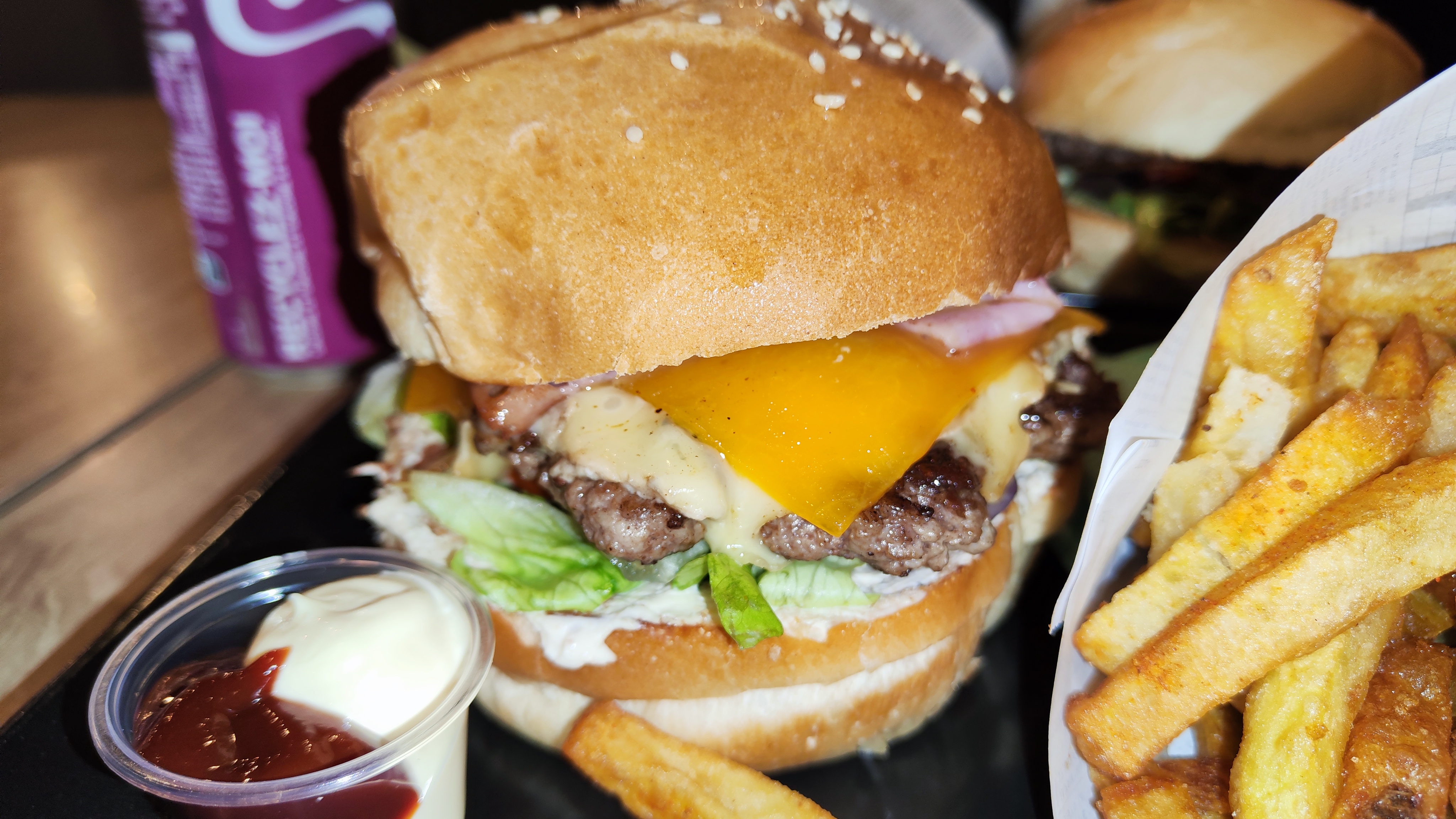 Le burger et les frites sont excellentes. La cuisson de la viande maîtrisée. L'équipe est également sympathique et l'ambiance chaleureuse. À améliorer : l'état des toilettes, l'utilisation de gobelets/cuillères etc à usage unique et le système de sauces pas très hygiénique.