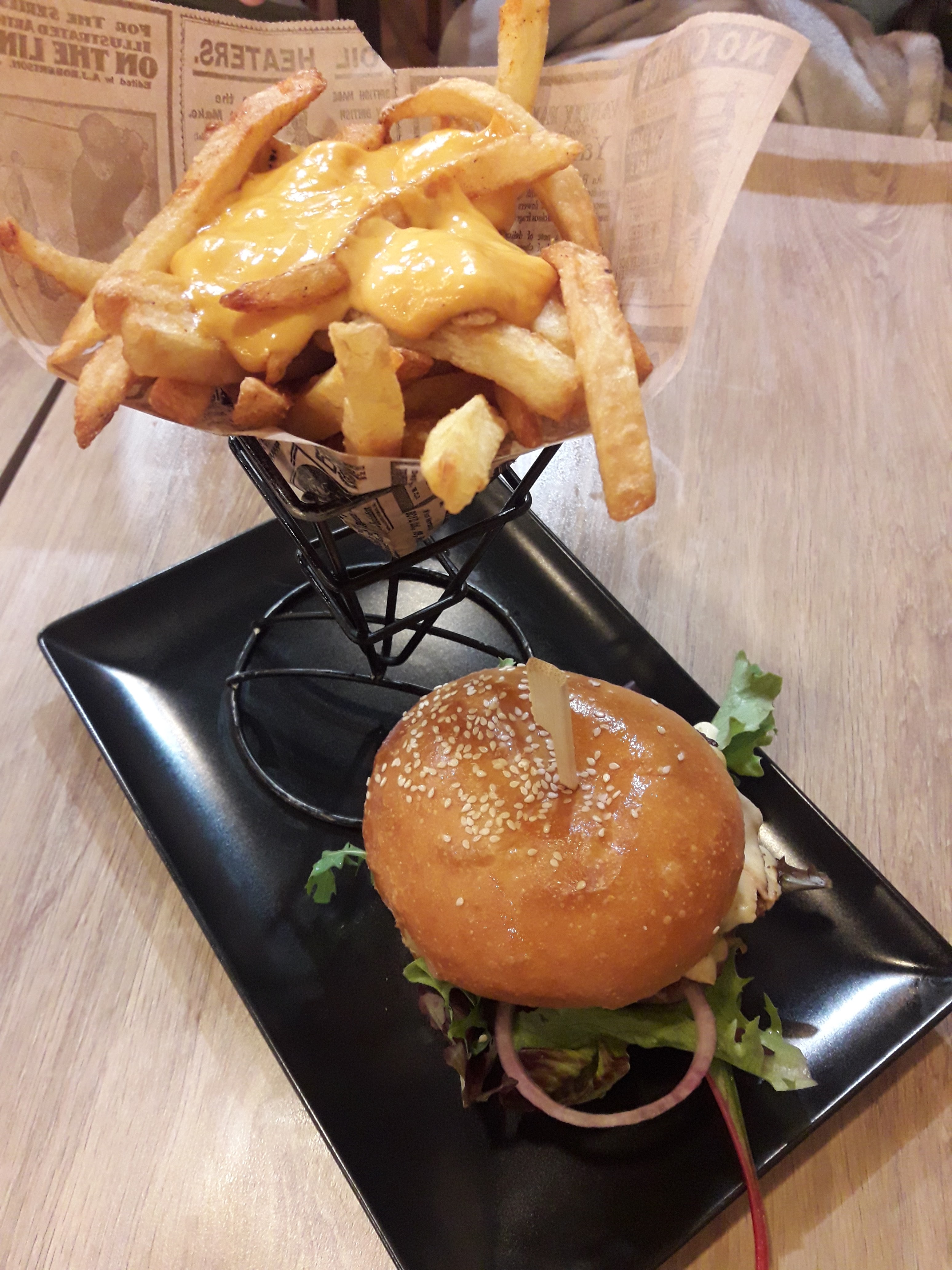 Bel accueil, le choix est difficile car toute la carte est appetissante. Mention ++++ pour le pain. Qualité de la viande indeniable. Tres copieux mais malgré mon enorme hamburger et des frites Maison oui maison, je me suis laissée tenter par un tiramisu caramel beurre salé maison aussi. Agreable moment je reviendrai. En plus, ils écoutent du bon son 😉