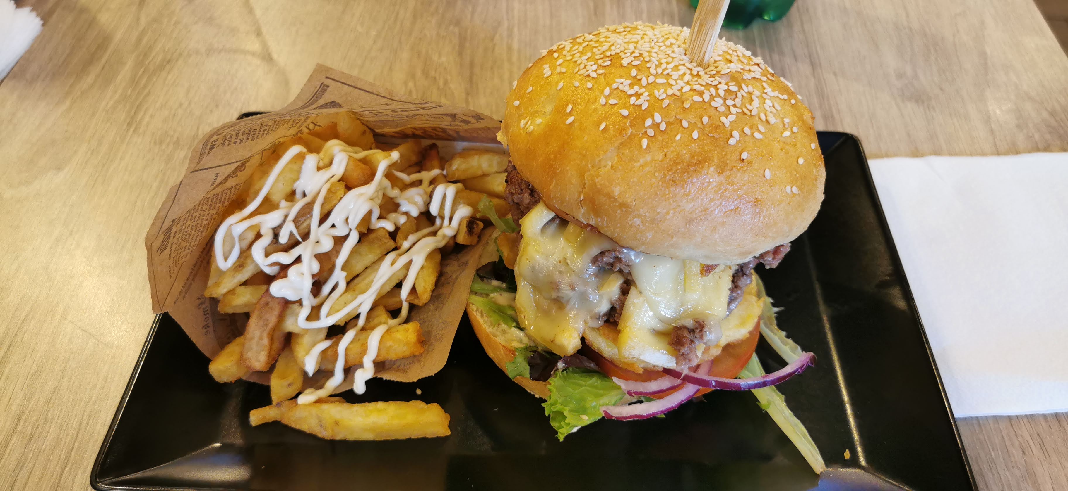 dimanche 17/7/2022 vers 14h Nous sommes venus vérifier les avis internet des hamburgers et effectivement très bons et copieux et le serveur très sympa.... Nous recommandons et reviendrons