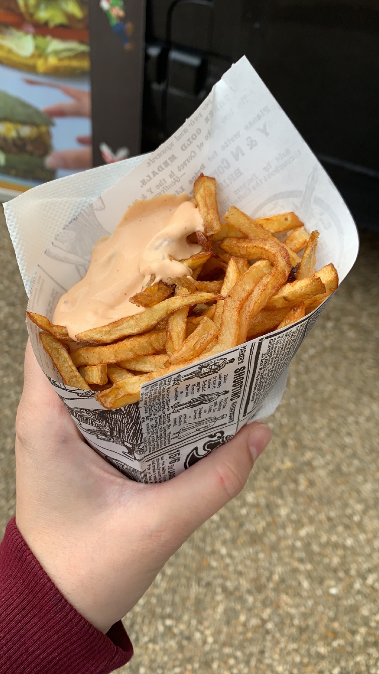 Belle découverte à la foire de Paris Très bon, tout fait sur place même les frites !! Burger coloré hyper joli En plus adorable