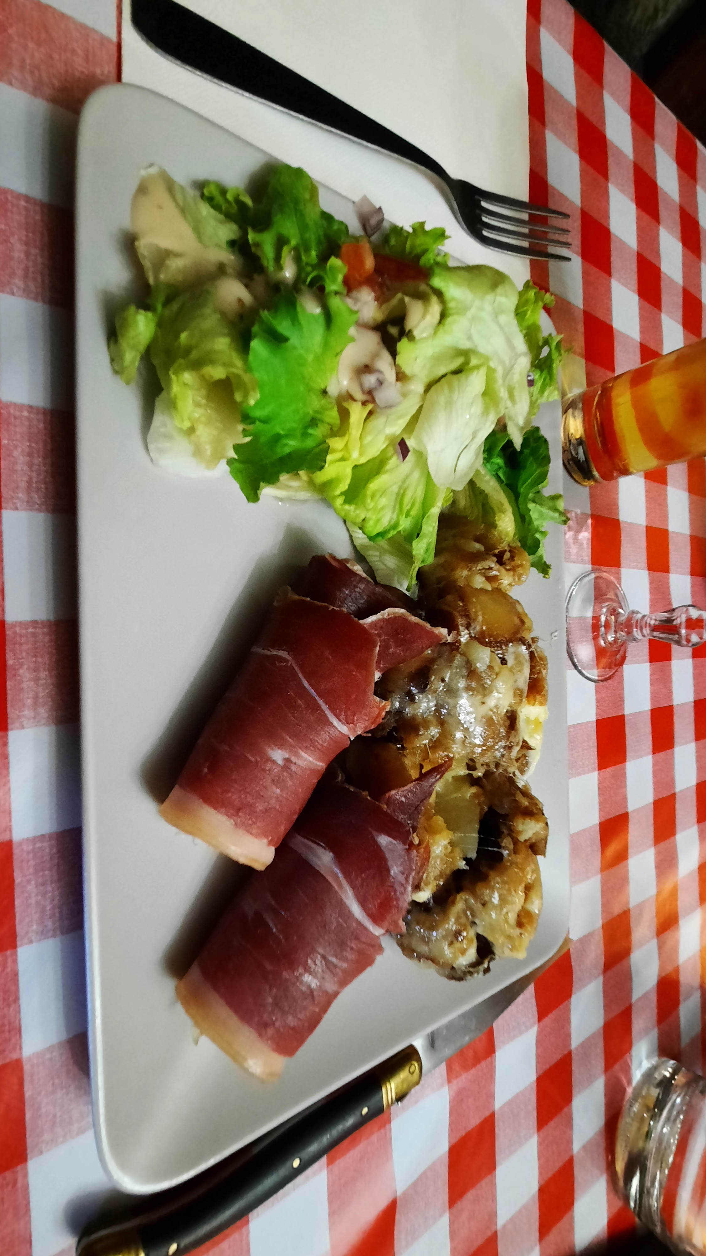 Déjeuner sur la terrasse à l'ombre, service rapide, un peu juste en quantité pour des mecs qui marchent mais c'était bon!