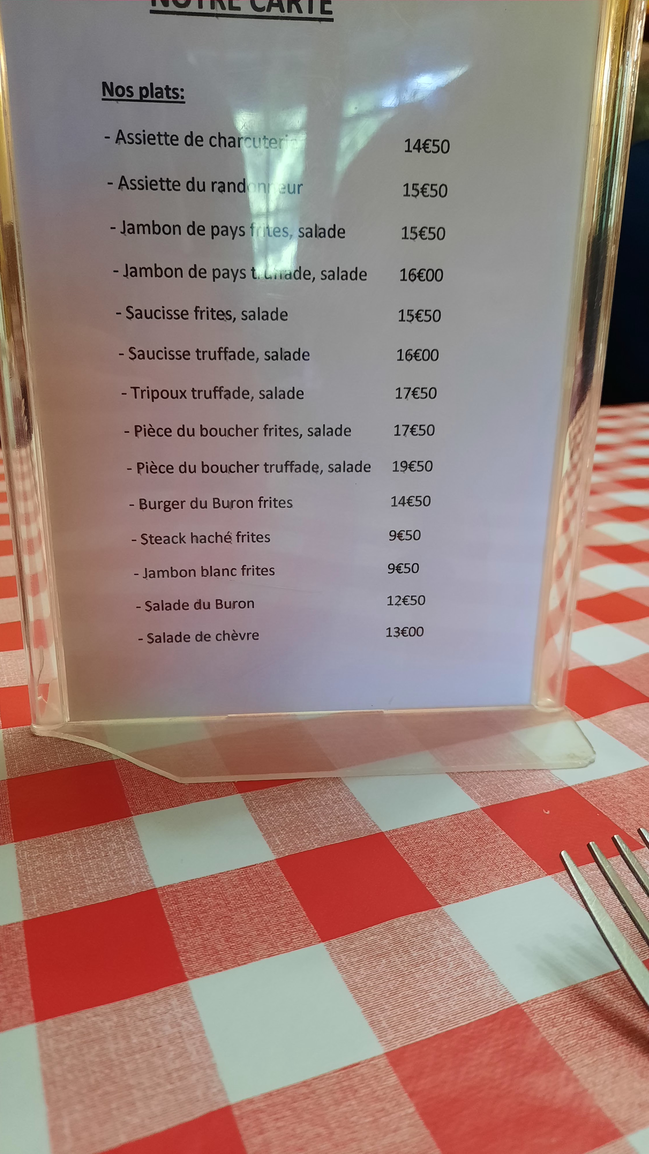 Très bonne petite auberge découverte grâce à Google. Nous n'avons pas été déçus. L'accueil est cordial et agréable. J'ai pris une truffade avec le jambon du pays et sa salade. Le plat était délicieux. Cependant pour le prix j'attendais un peu plus de truffade. Les tarifs sont corrects. Je vous conseille cette petite auberge.