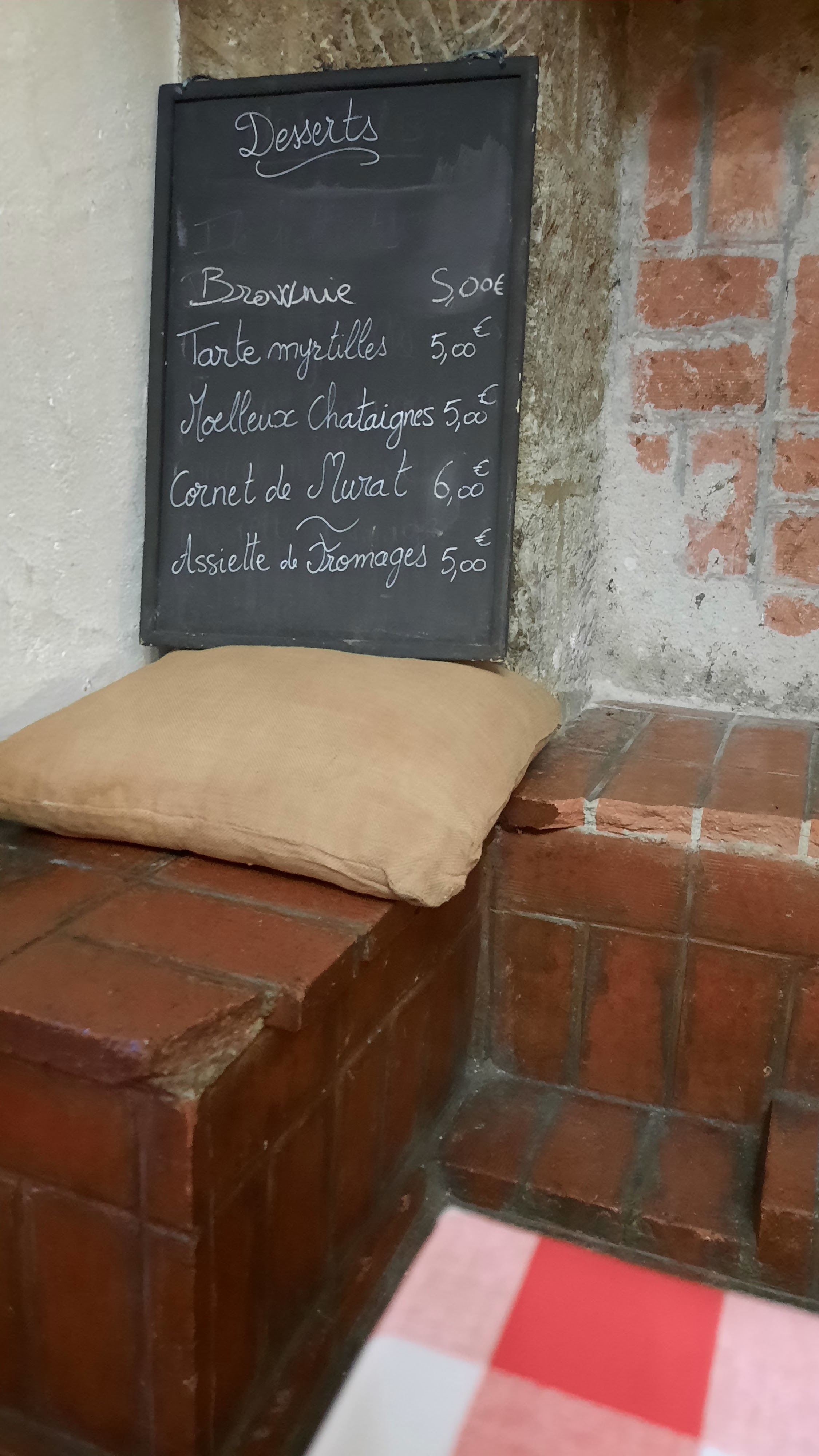Diner de fin de séjour. Bel emplacement mais les plats sont très moyens (terre dans le chou farci, frites industrielles et pas cuites, tuiles du buron sans rapport avec l'original...). Sans compter le chien qui va et vient à la cuisine.... Et le patron ne semble guère apprécier les suggestions d'amélioration, nous nous sommes quasiment fait traiter de menteurs...