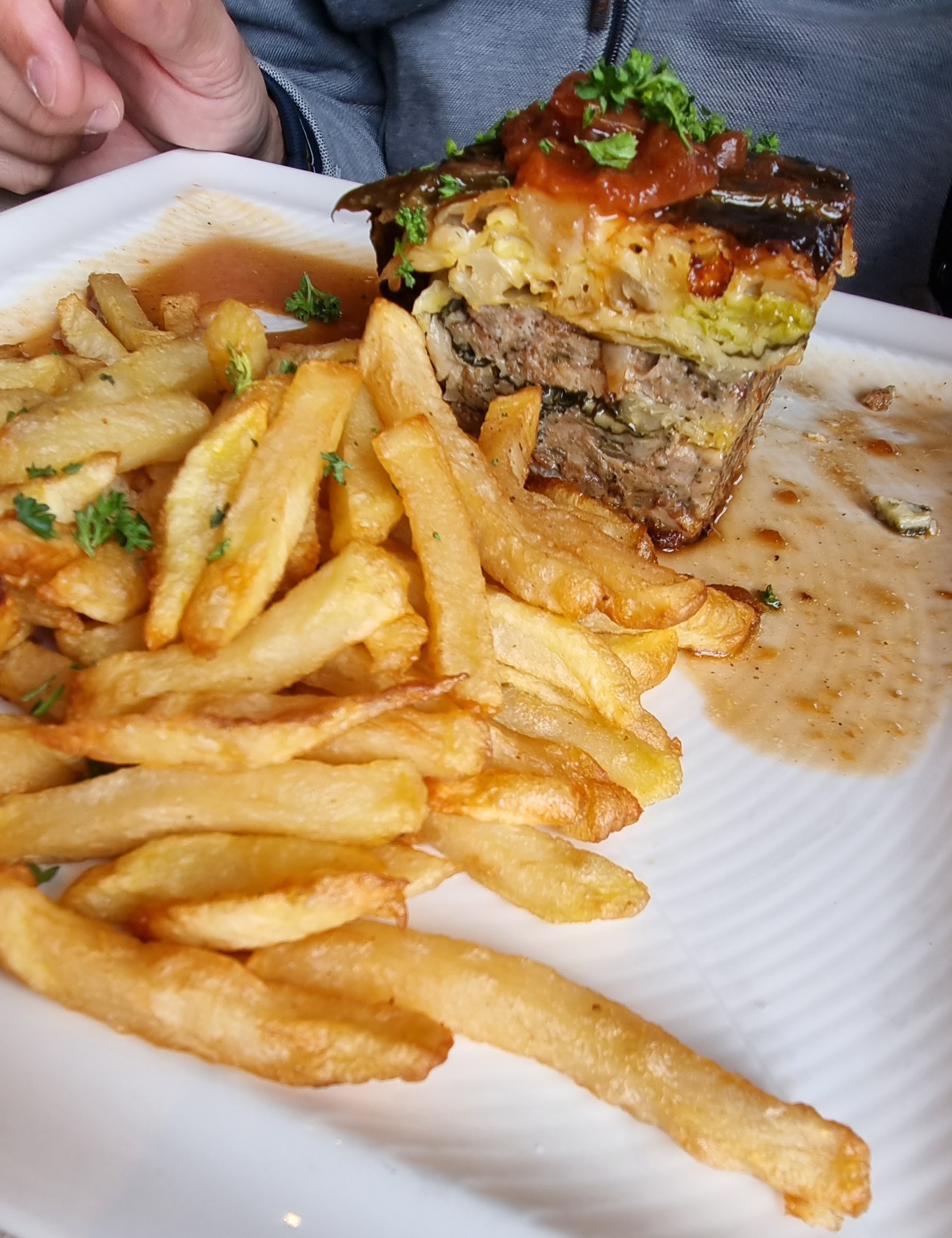 Malgré un grand nombre de personne présente le service était top. Nous avons changé de table pour passer de l’extérieur à l’intérieur et cela n’a pas posé de problème aux serveurs. Les assiettes sont très copieuse et de très bonne qualité, j’ai eu du mal à finir mon assiette. Ce qui fait que le rapport qualité prix est imbattable. Je recommande vivement ce très bon restaurant.