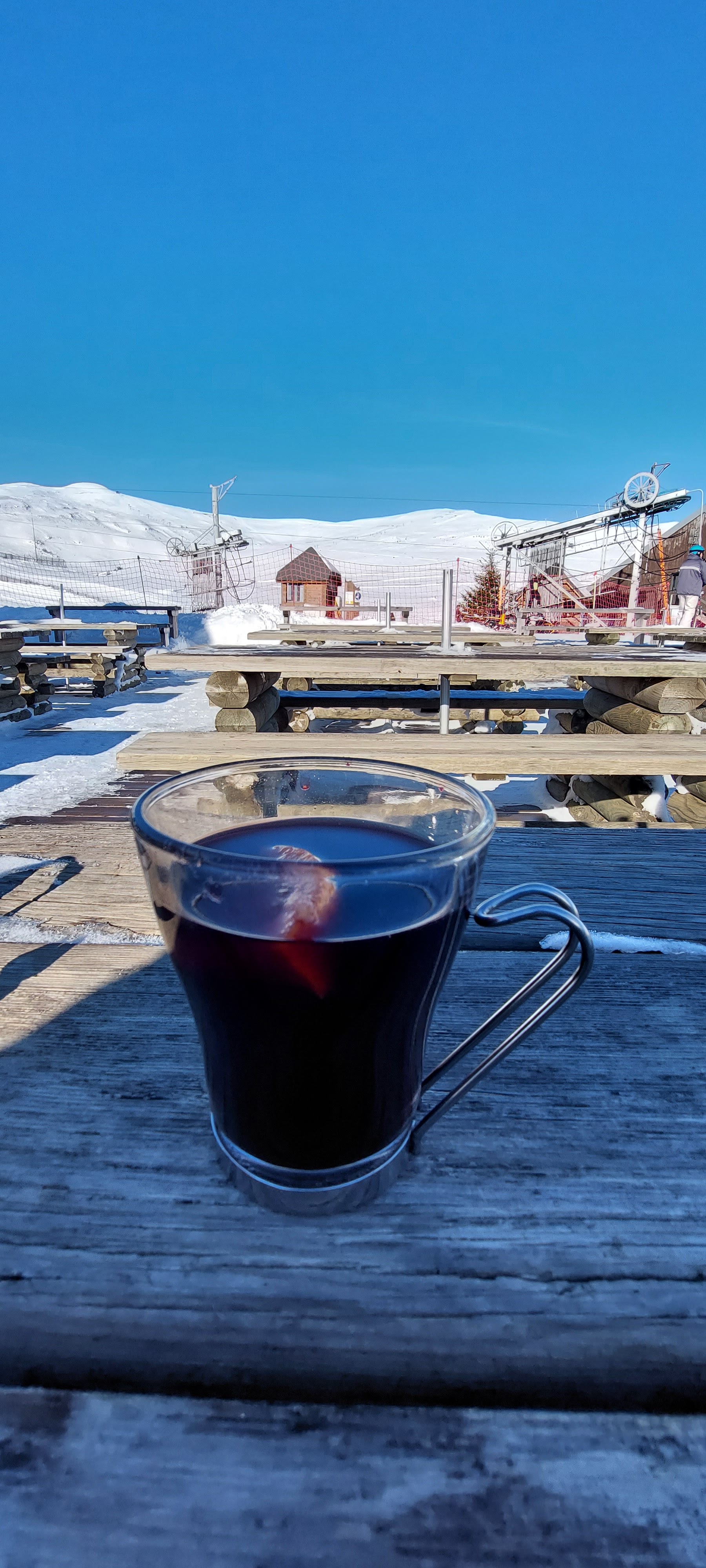 Nous avons juste pris un verre en terrasse. La vue est magnifique. Les serveurs sont très sympas et le vin chaud est bon. Seul regret, l'absence de neige...