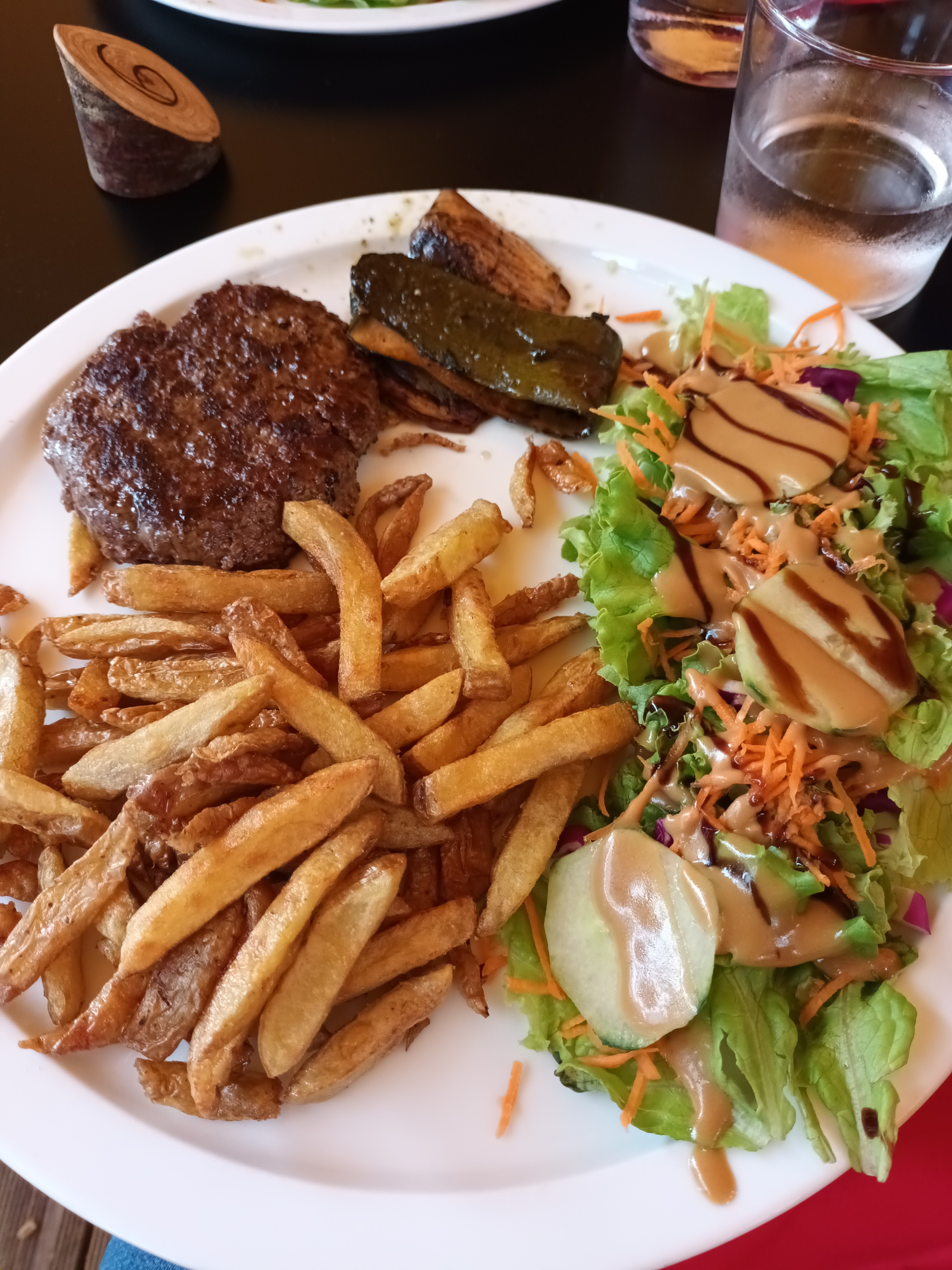 Deux burgers/frites/crudités gargantuesques avec des produits frais et locaux: un délice! Le tout accompagné d'un service radieux alliant gentillesse et bienveillance. Je recommande vivement!