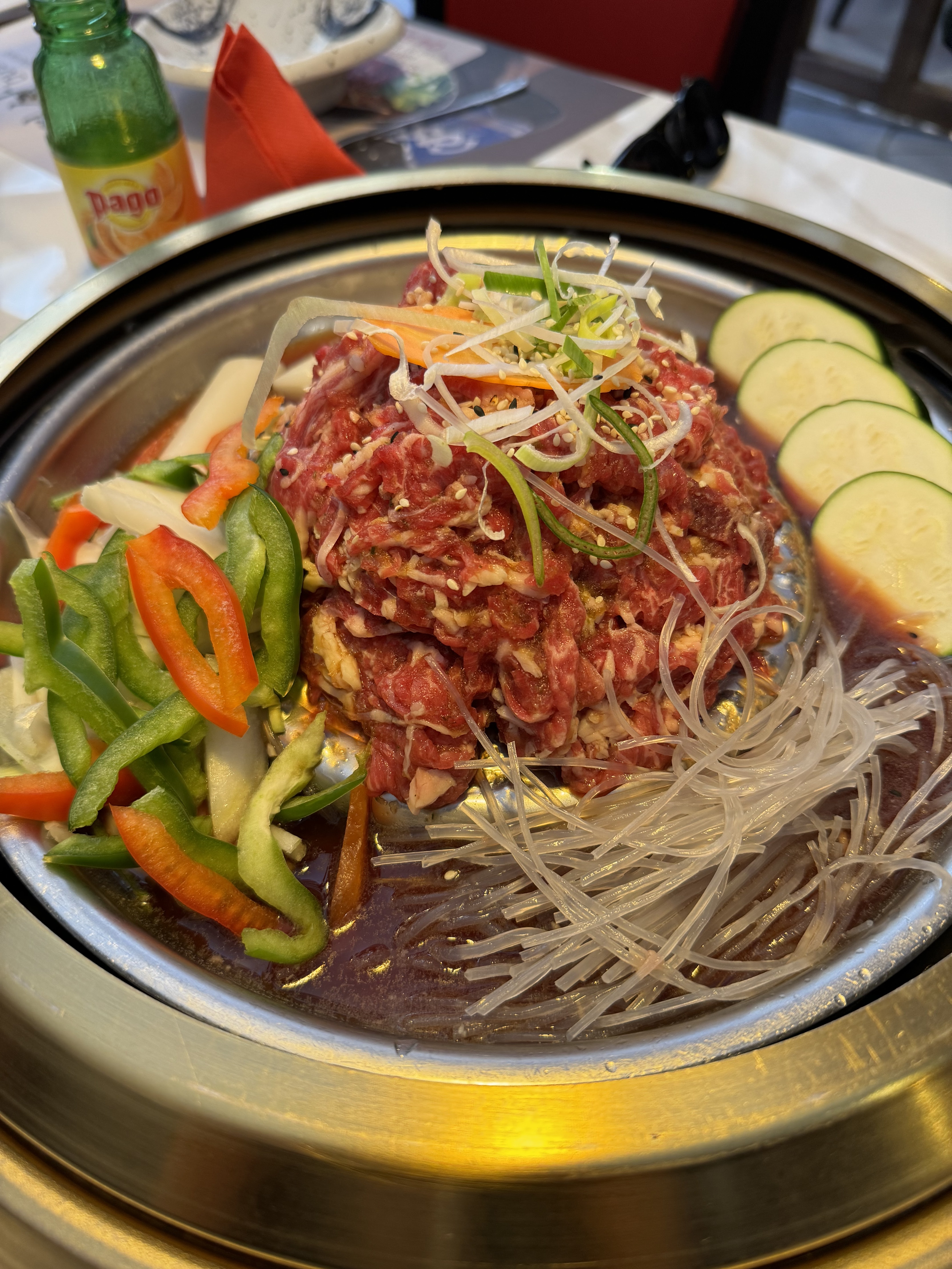 L'expérience dans ce restaurant laisse à désirer en raison d'un accueil peu chaleureux et d'un service précipité de la part du personnel. Ce manque d'attention à l'égard des clients nuit à l'atmosphère globale et à la satisfaction de la visite. La viande était bonne pour le bbq c’est dommage pour le reste et les prix reste quand même excessif un soju a 18€ alors que cela vaut 2€ .