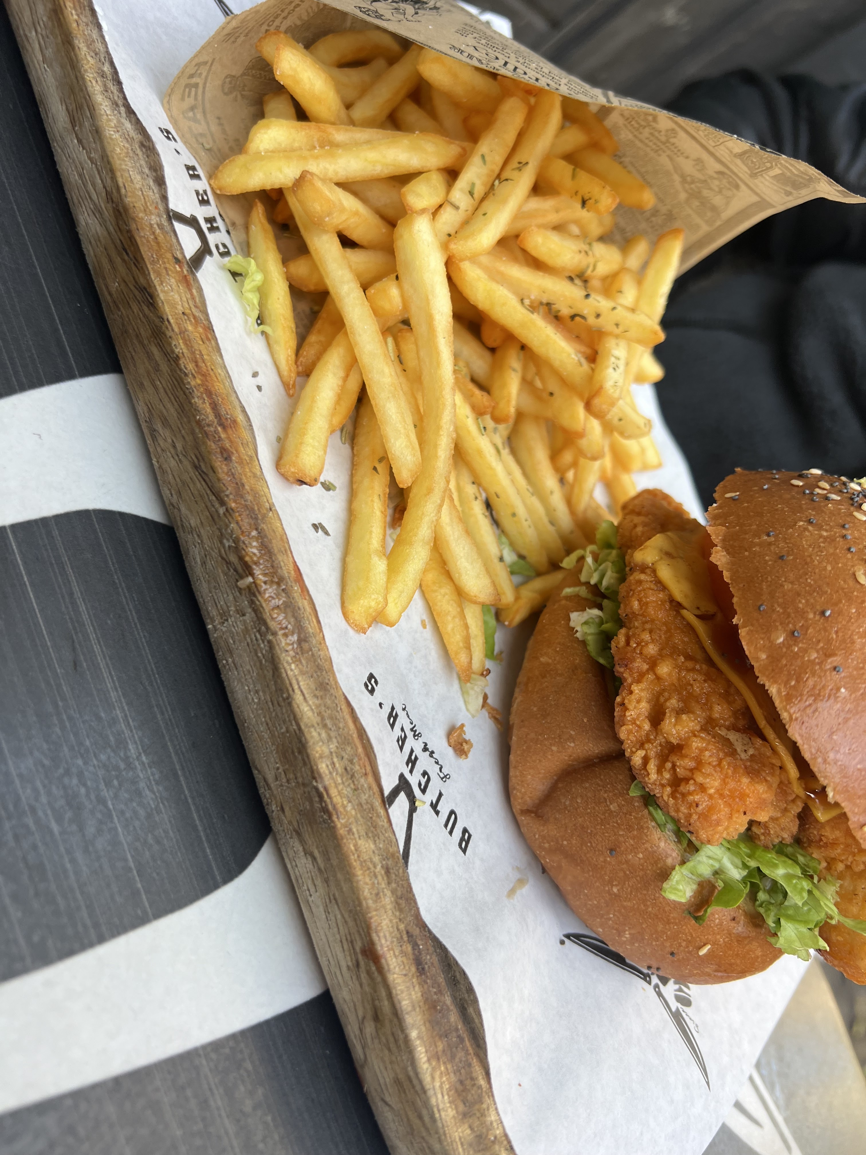 Où ? 📍A côté du métro Noailles. A côté du tram. A côté du Mcdo. 🦋 Quand j'y suis allé ce soir, il y avait 10 personnes à McDo et personne à Butcher. Pourquoi ? 😭 Aucune idée. A Butcher's, le hamburger que j'ai mangé, était au même prix (8€90) avec 2 steaks de 150 grammes. Une bonne poignée de frites et une boisson & sauces. Le tout était gourmand 🧸 ; je suis repu. 🥰 En 2023 : musique à l'intérieur toujours aussi forte. Hamburger toujours aussi mmmh