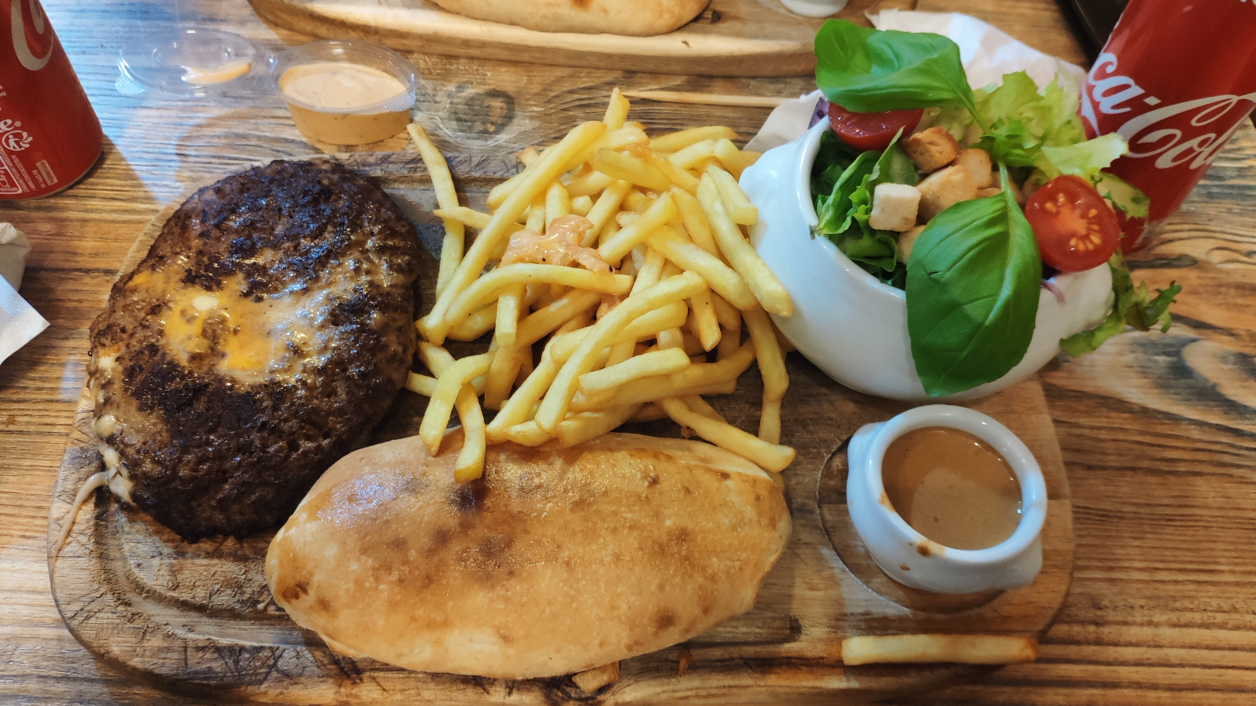 J’ai mangé là bas 2 fois dans la même journée ! Service rapide, salle et toilette propre ✅ Les plats sont consistant ✅ Je trouve néanmoins que l’herbe de provence sur les frites n’est pas nécessaire (mais chacun ses goûts). Et y’avait beaucoup trop de vinaigrette dans ma salade César, je n’ai pas pu la finir.