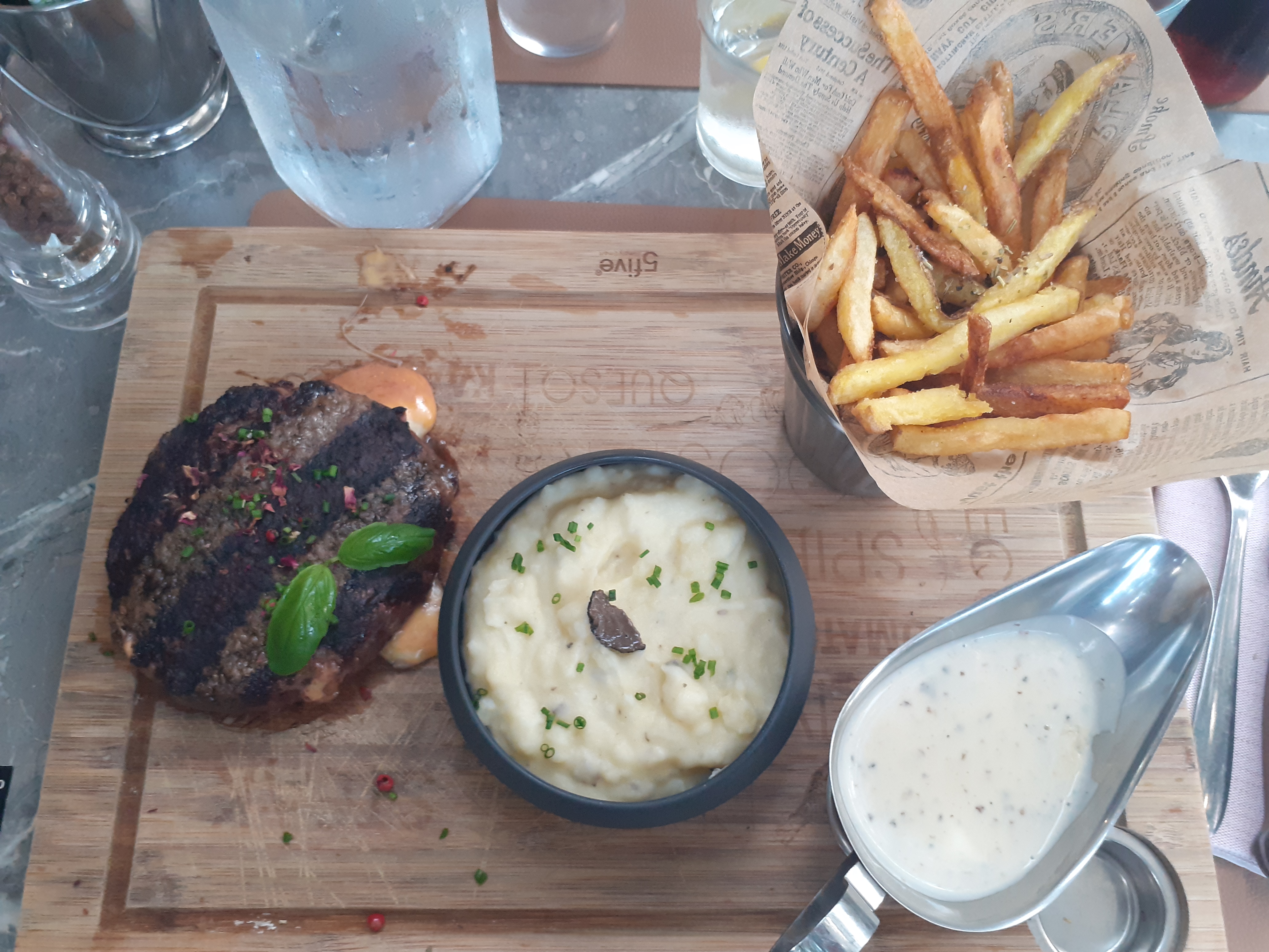 Alors comment vous dire que j’ai commandé le filet de bœuf on m’as servit un menu enfant. Pour la cuisson j’ai demandé à point on m’as servit un corps ensanglanté. Et la viande froide ?? Les glaçons c’est dans le verre !!! Bonne playlist par contre