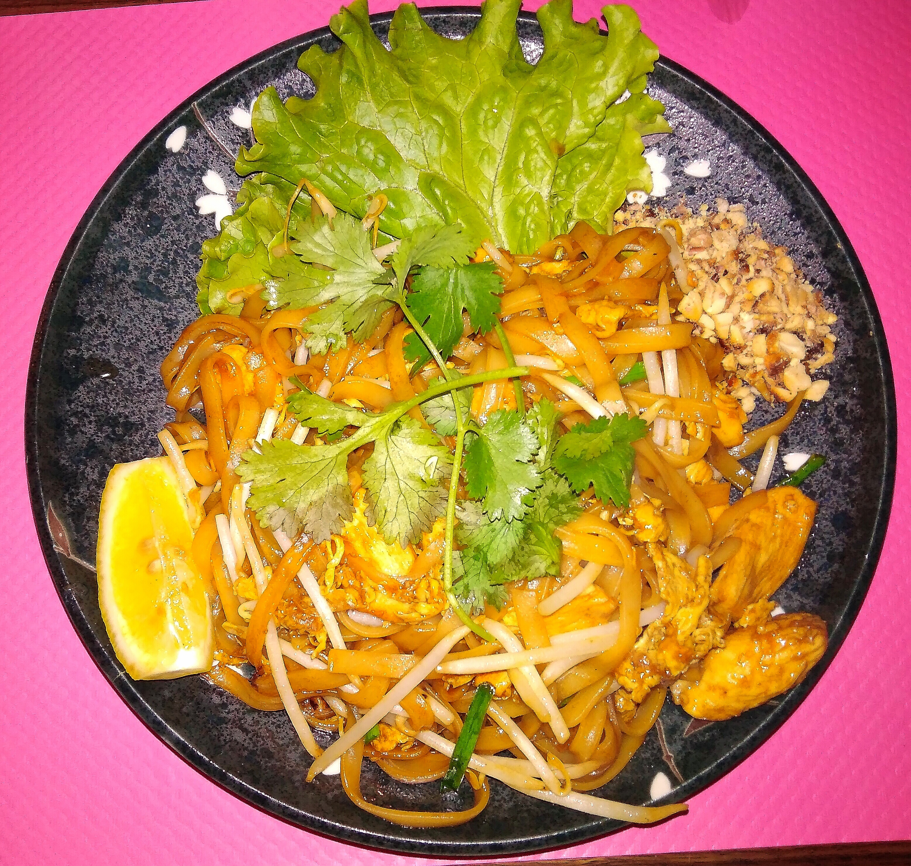 Très bons nems au taro & salade thaï au bœuf. Un peu déçue du pad thaï, trop de sauce et un peu trop sucrée à mon goût.