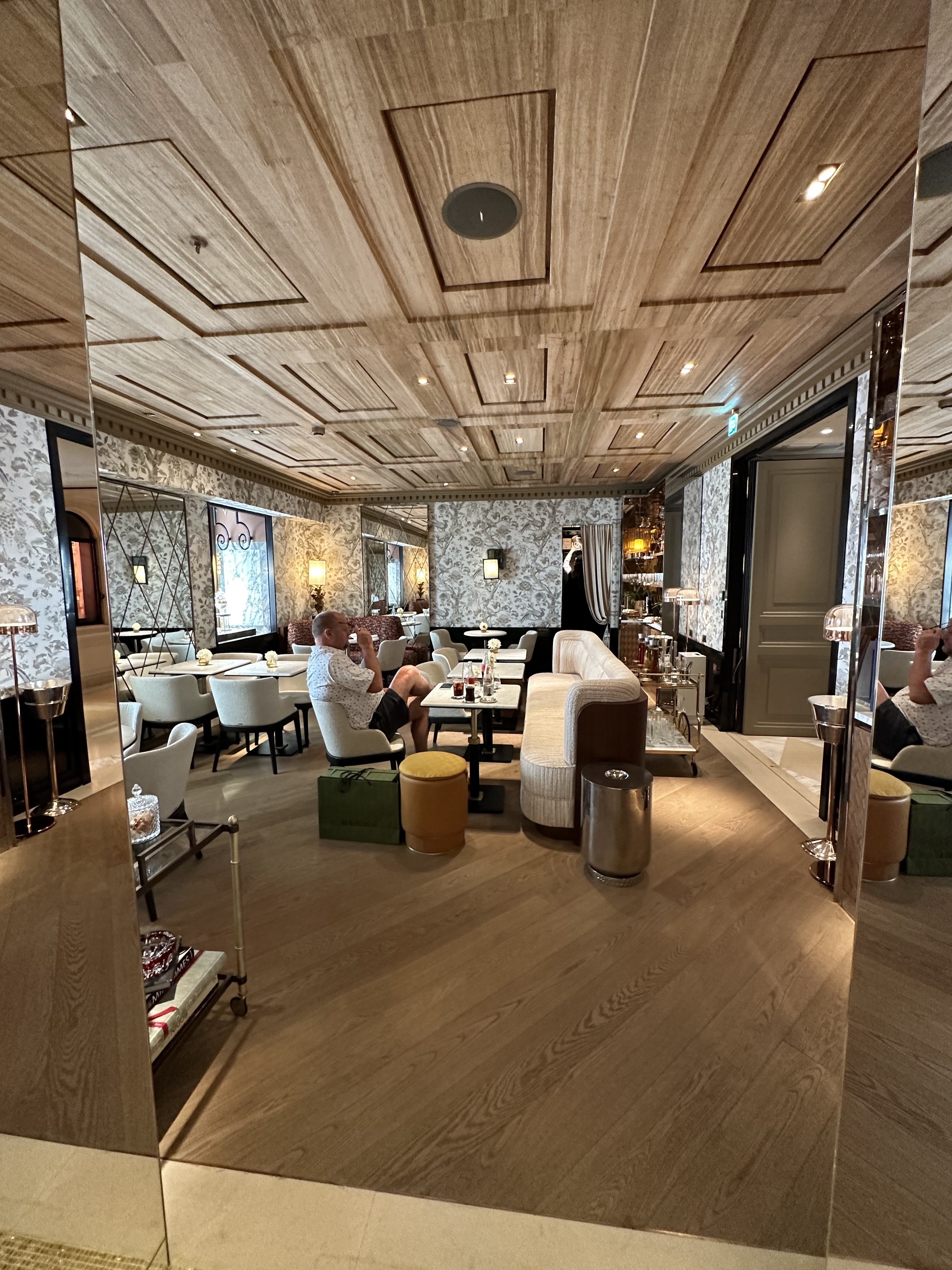 Les verres à eau sont mal rincés (vilaine odeur) . Le service est très bien . Nous avons pris des flans nature et marbré je m’attendais à tomber par terre mais bon rien ne s’est passé . Niveau Ambiance c’est bien vous pouvez vous balader dans Le hall de l’hôtel . Si vous hésitiez avec celui du Ritz ….