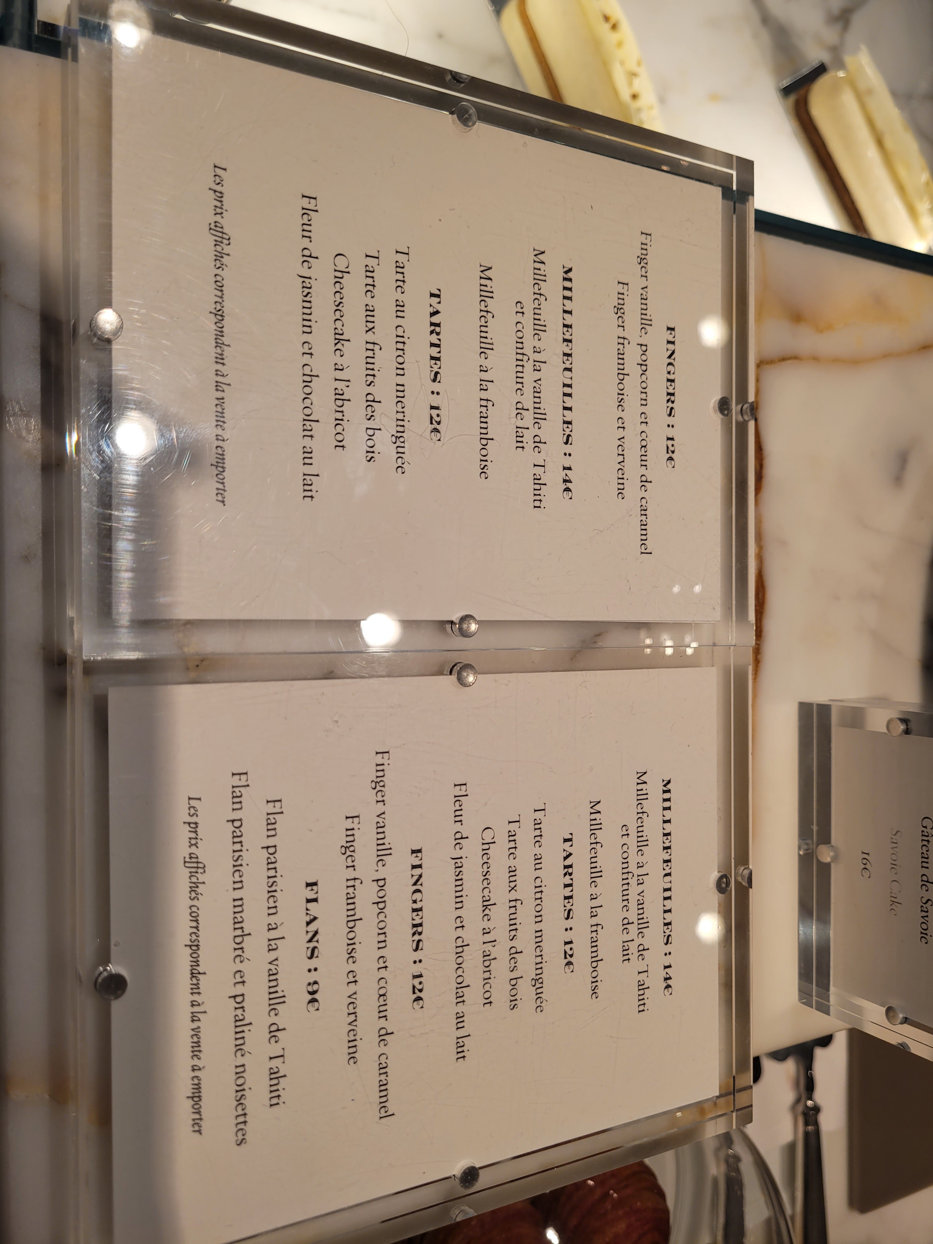 Boutique magnifique, les vendeuses étaient adorables et très à l’écoute. Flan marbré : très bon et très gourmand, ce qu’on attendait. Cependant, la tarte tatin était vraiment très décevante, surtout à 14€ la petite tarte individuelle. Vraiment dommage…