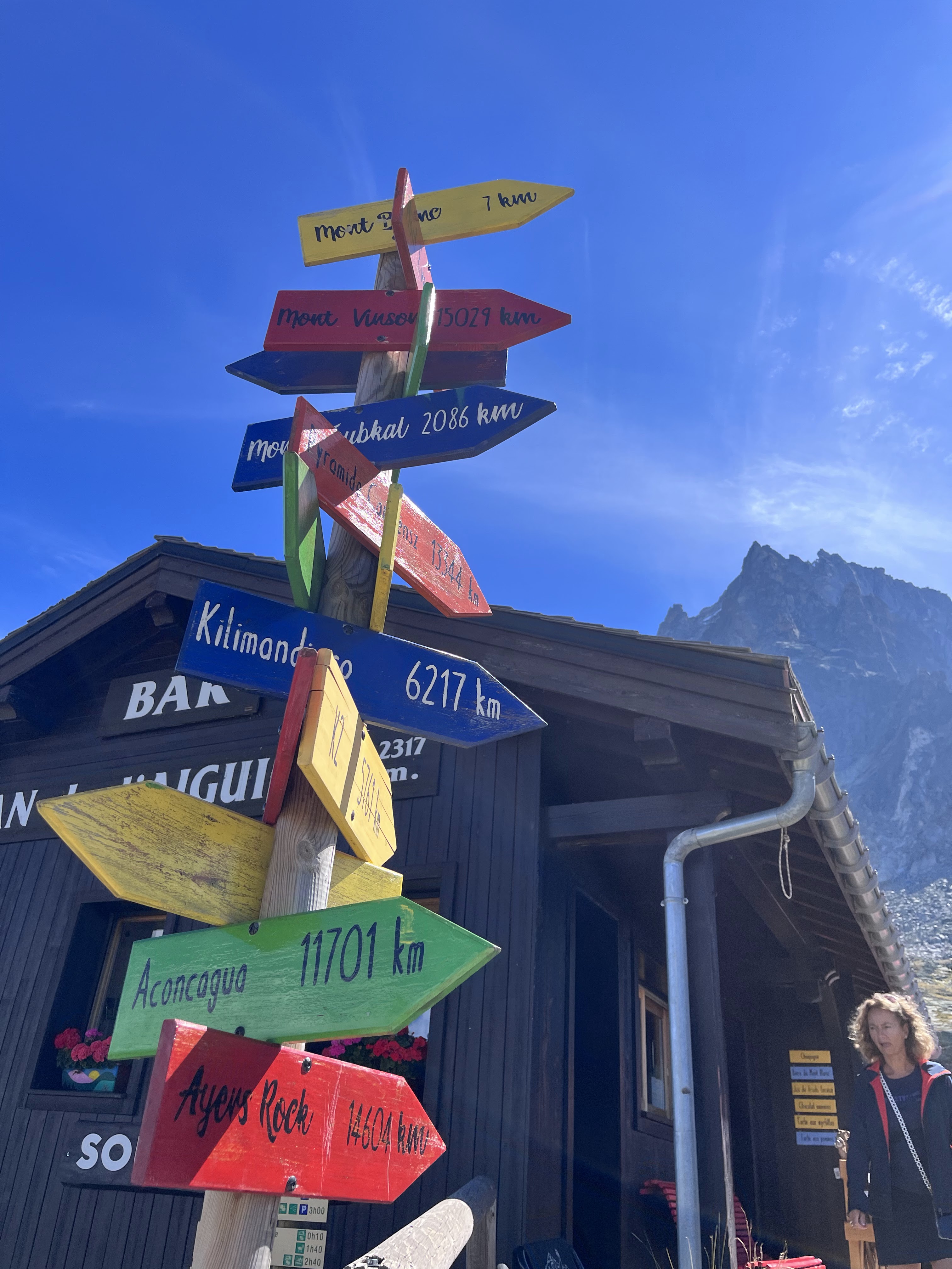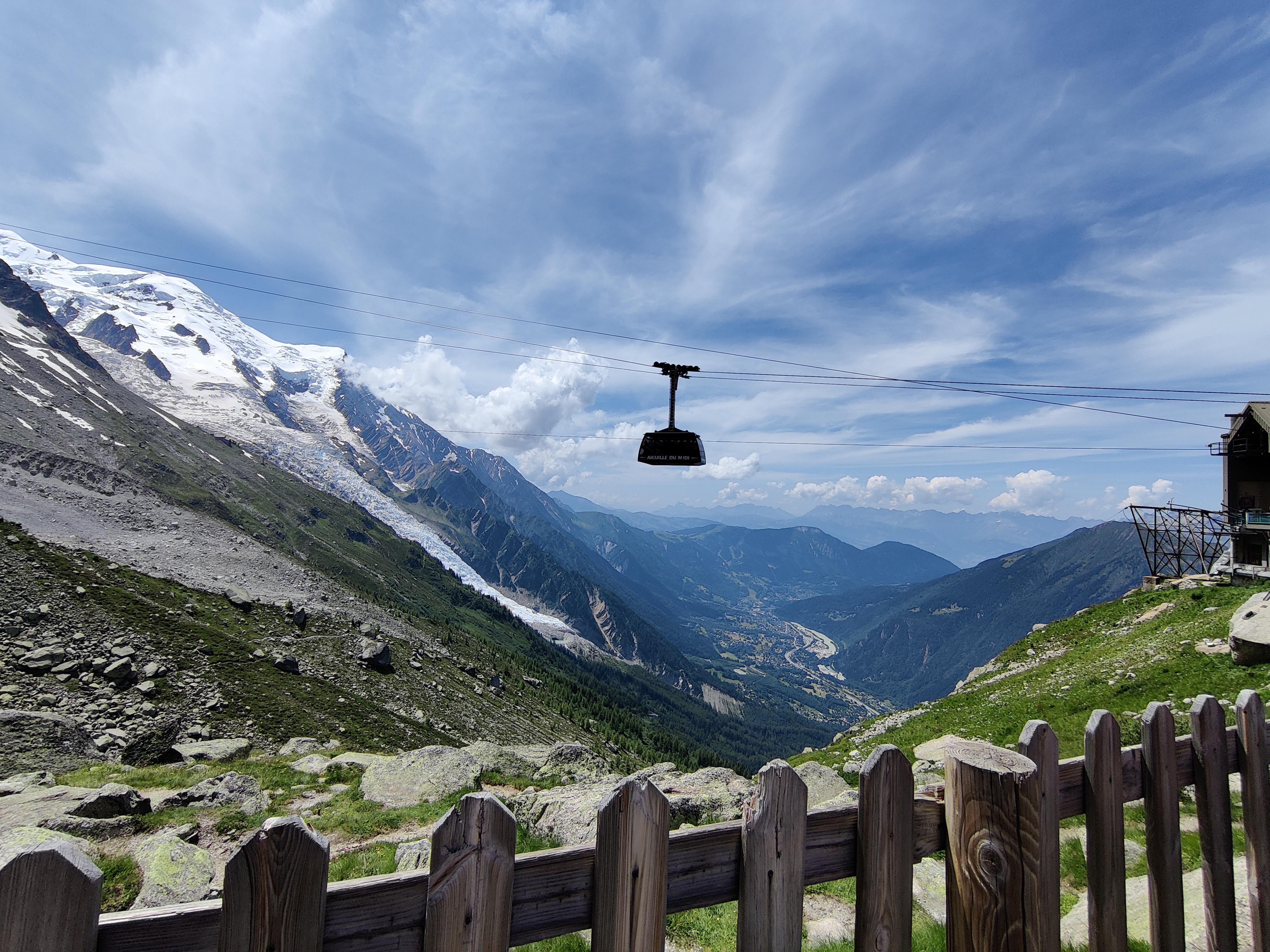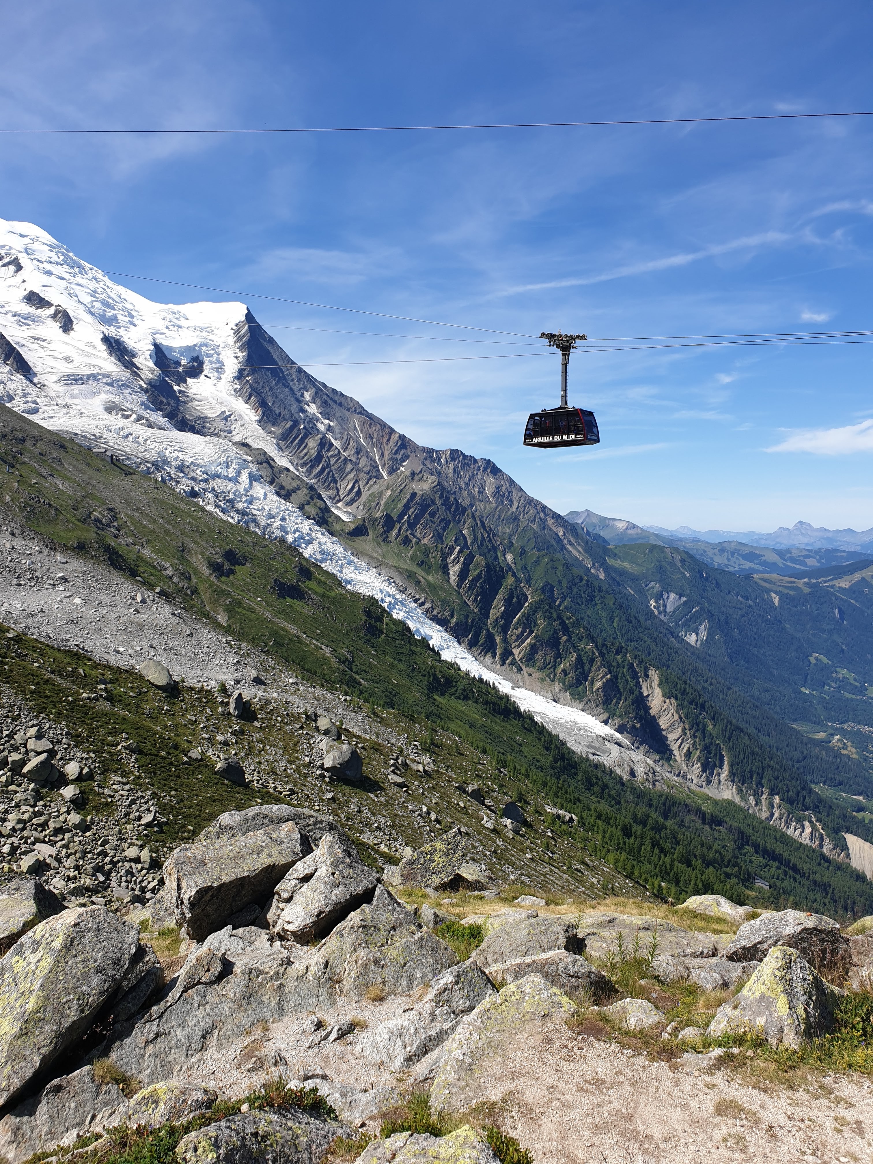 Quel bel endroit, il est utile de réserver sinon il faut parfois attendre quelques heures en bas avant de pouvoir monter. De là, vous pourrez faire diverses randonnées, de 10 minutes à 7 heures de randonnée. Compte tenu de la chaleur de l'été, un short et une chemise suffisent si vous ne montez pas plus haut. Belle vue sur Montblanc et les puissantes montagnes