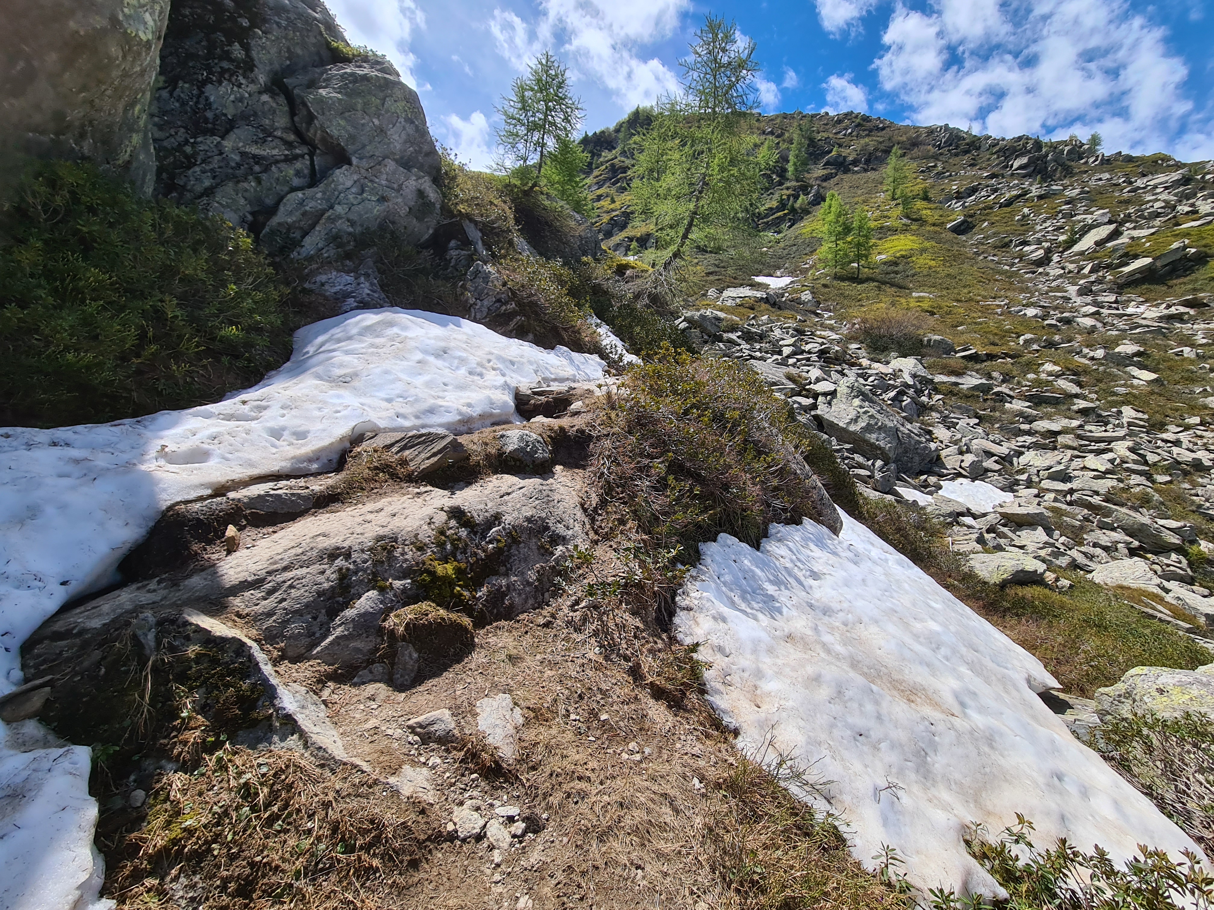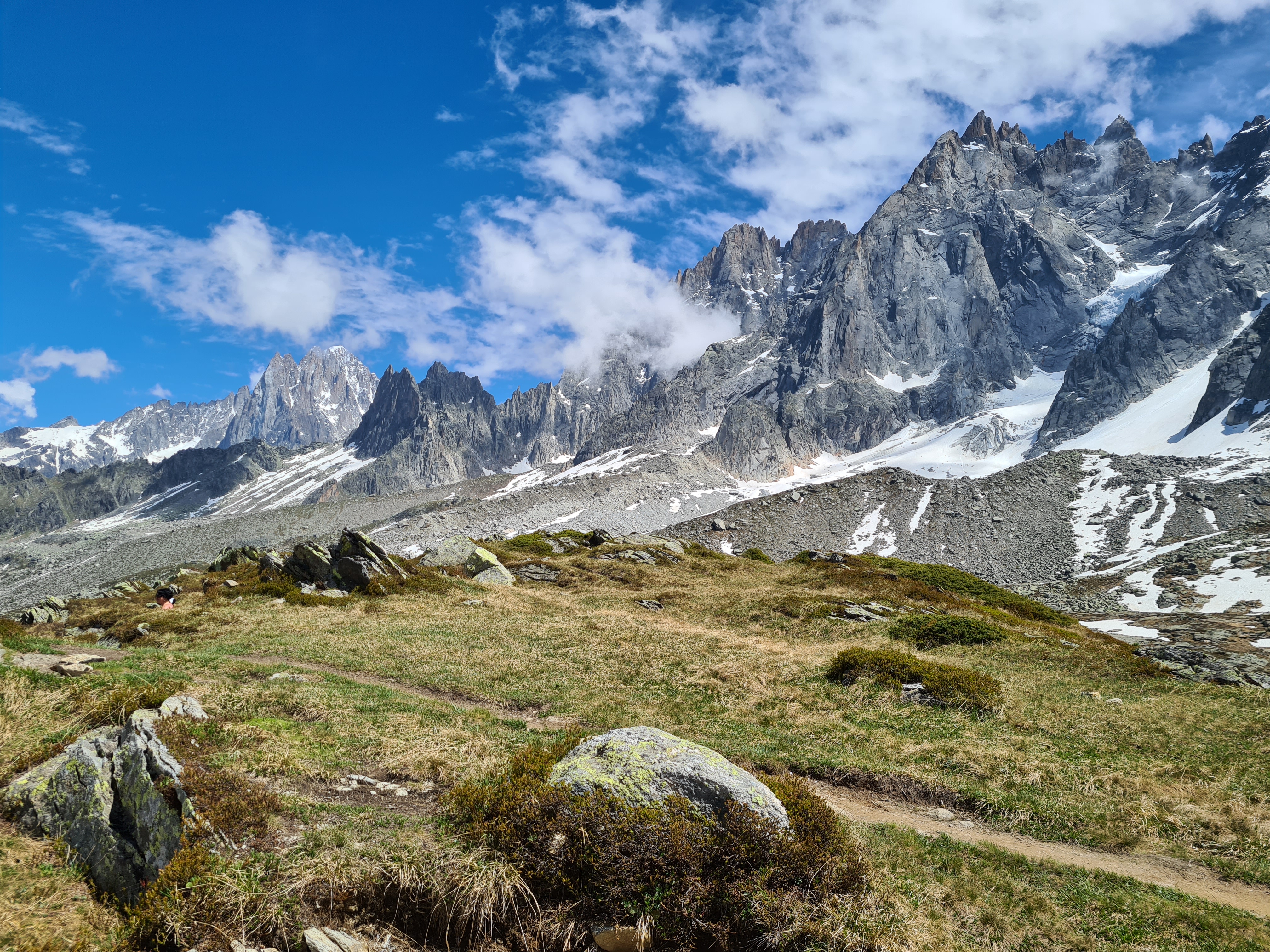 Endroit agréable pour faire la pause au retour de l'aiguille du midi. Point de départ pour le retour vers la vallée. Altitude 2300 m.