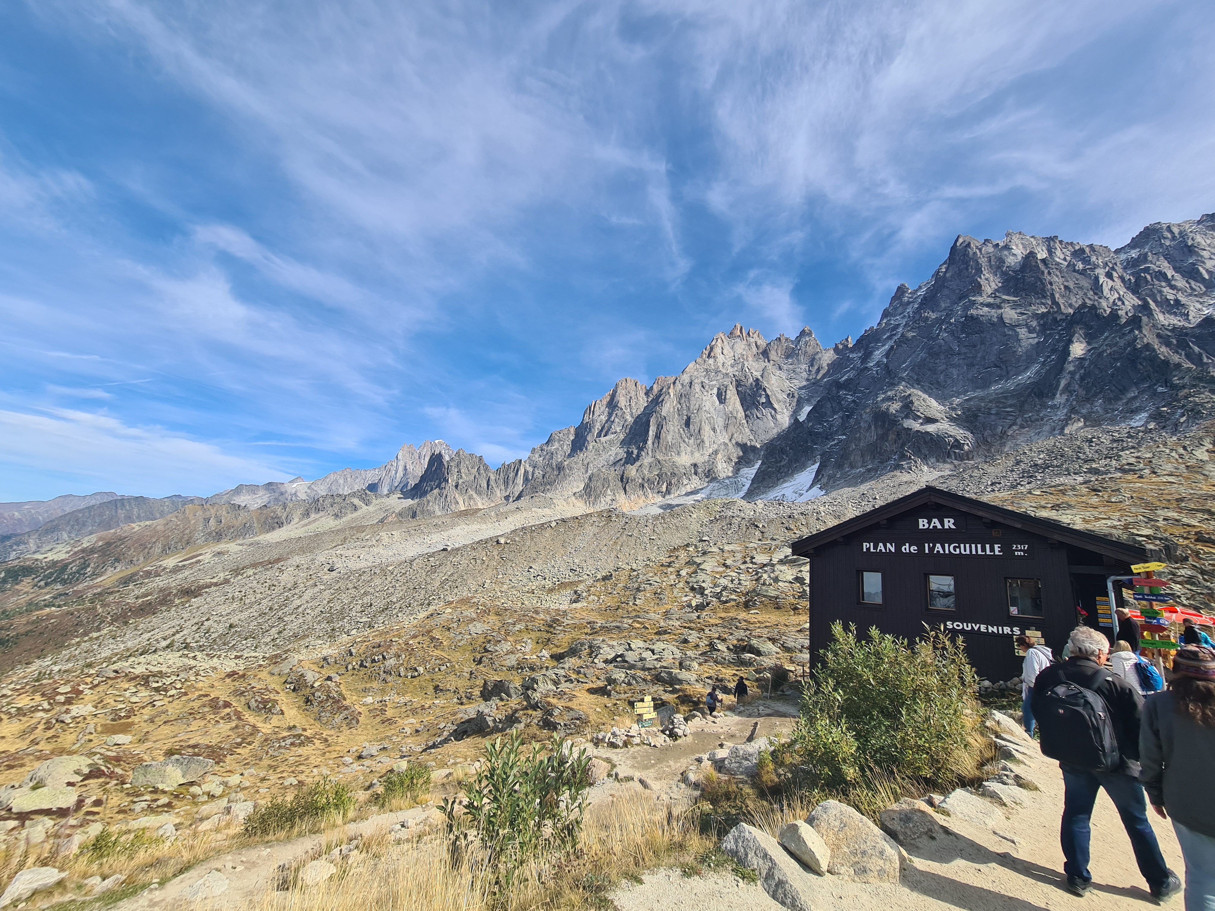 La buvette du Plan de l'Aiguille offre des vues fabuleuses et constitue une étape parfaite sur votre chemin vers ou depuis l'Aiguille du Midi. Servant des boissons chaudes et froides et des collations, c'est un endroit accueillant avec un personnel amical et serviable. Ouvert vers 8h du matin en été, c'est un endroit idéal pour prendre un verre et une pâtisserie avec une vue imprenable sur les montagnes. Facilement accessible depuis le premier arrêt du téléphérique en direction de l'Aiguille du Midi, c'est une destination incontournable lors de votre voyage vers le Mont Blanc. Offrez-vous des collations rafraîchissantes et dégustez des bières locales de Suisse, de France et d'Italie pour une expérience vraiment mémorable.