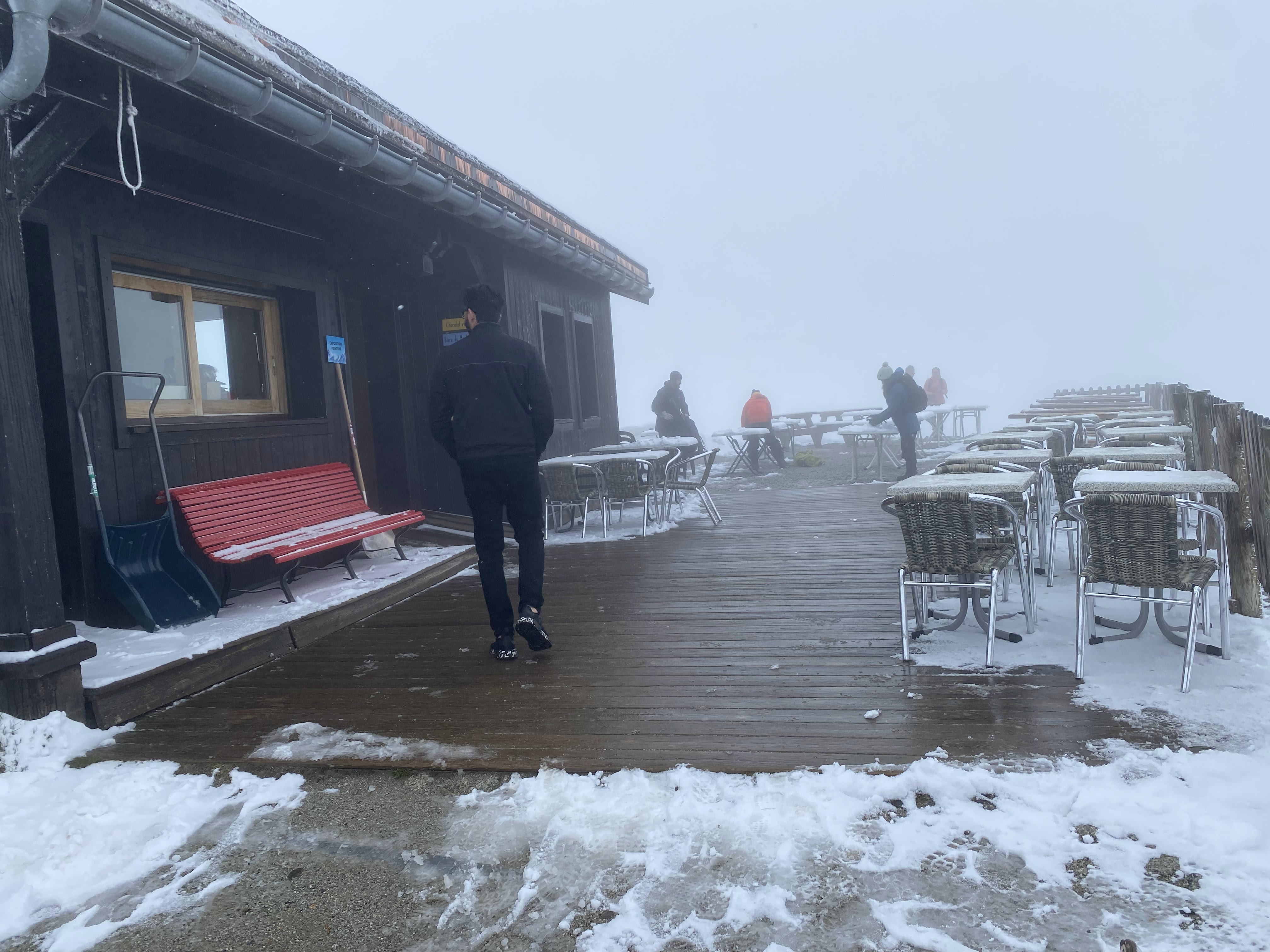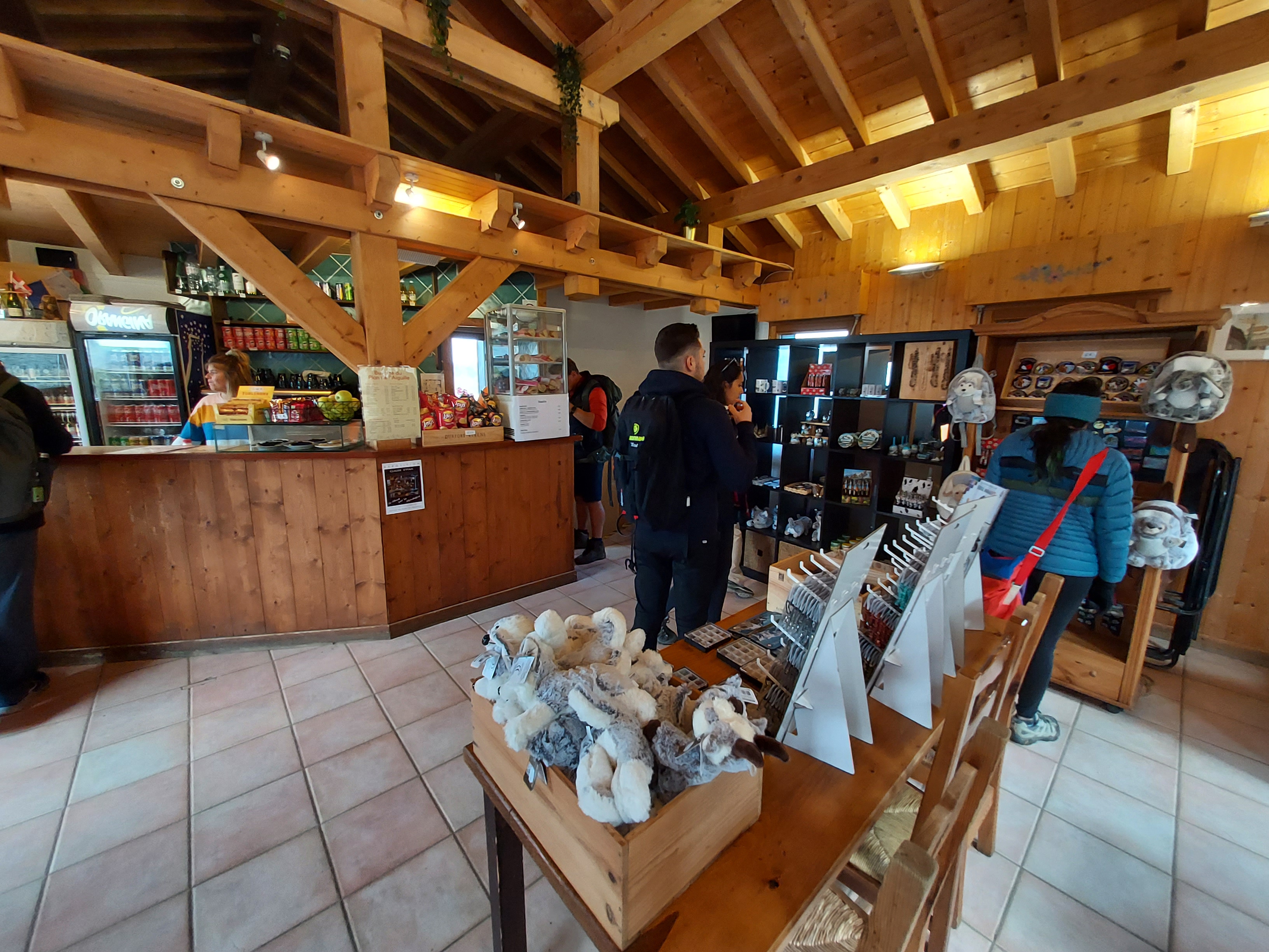 Excellent endroit pour se réchauffer avec un expresso ou un thé chaud tout en admirant les sommets enneigés. Ils vendent des souvenirs ainsi que d'autres boissons, notamment de la bière sans gluten.