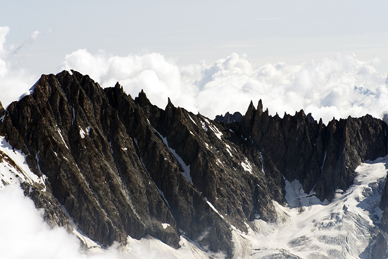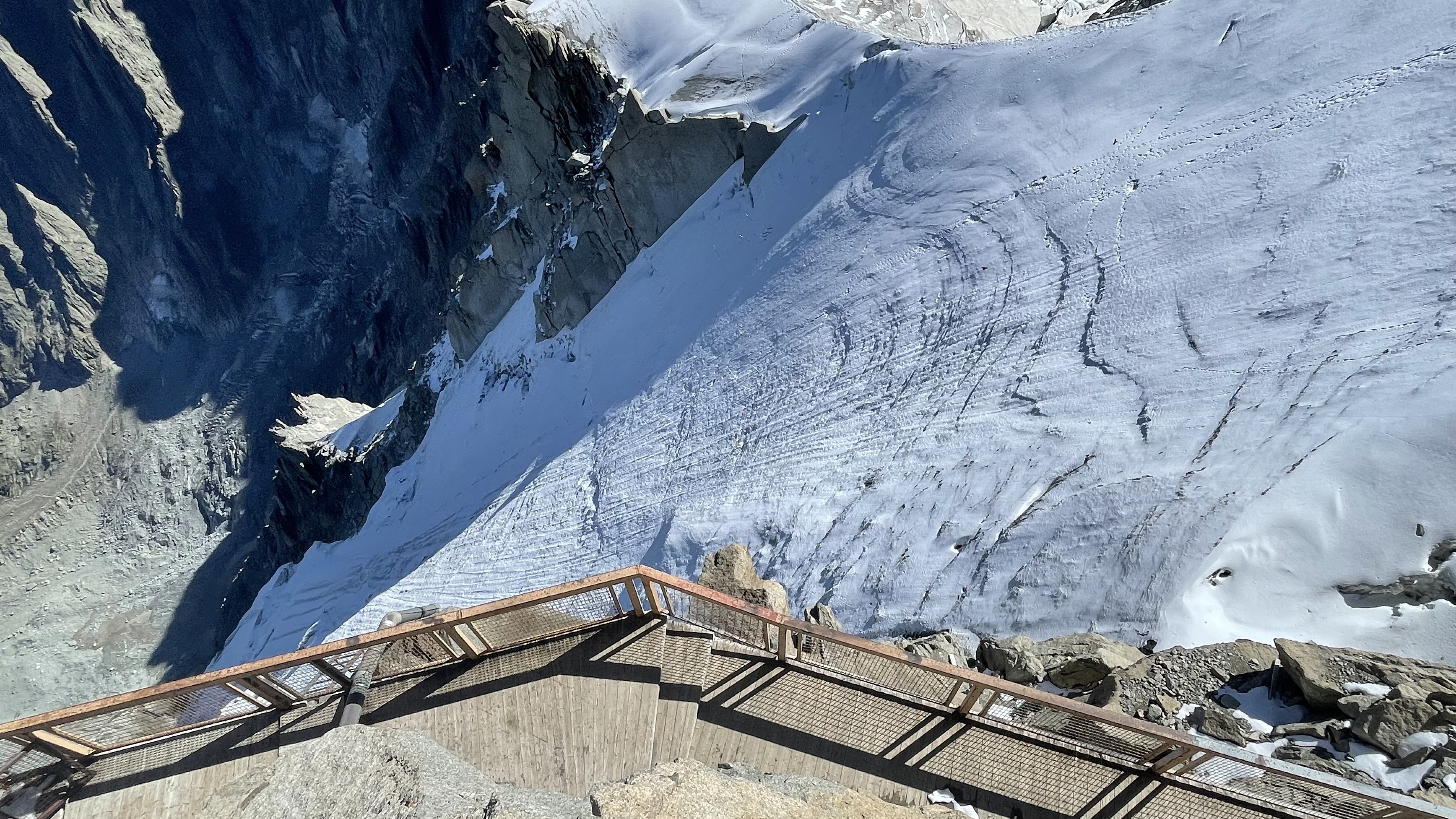 C'est un endroit impressionnant. Les vues imposantes sur les aiguilles avec le Mont Blanc toujours présent. Voici le téléphérique qui monte de Chamonix et de là un autre monte jusqu'à l'Aiguille de Midi, ce dernier franchit un dénivelé de plus de 1500 mètres et fait le bonheur des amateurs de vertige. C'est cher et il y a généralement pas mal de monde, mais cela en vaut vraiment la peine.