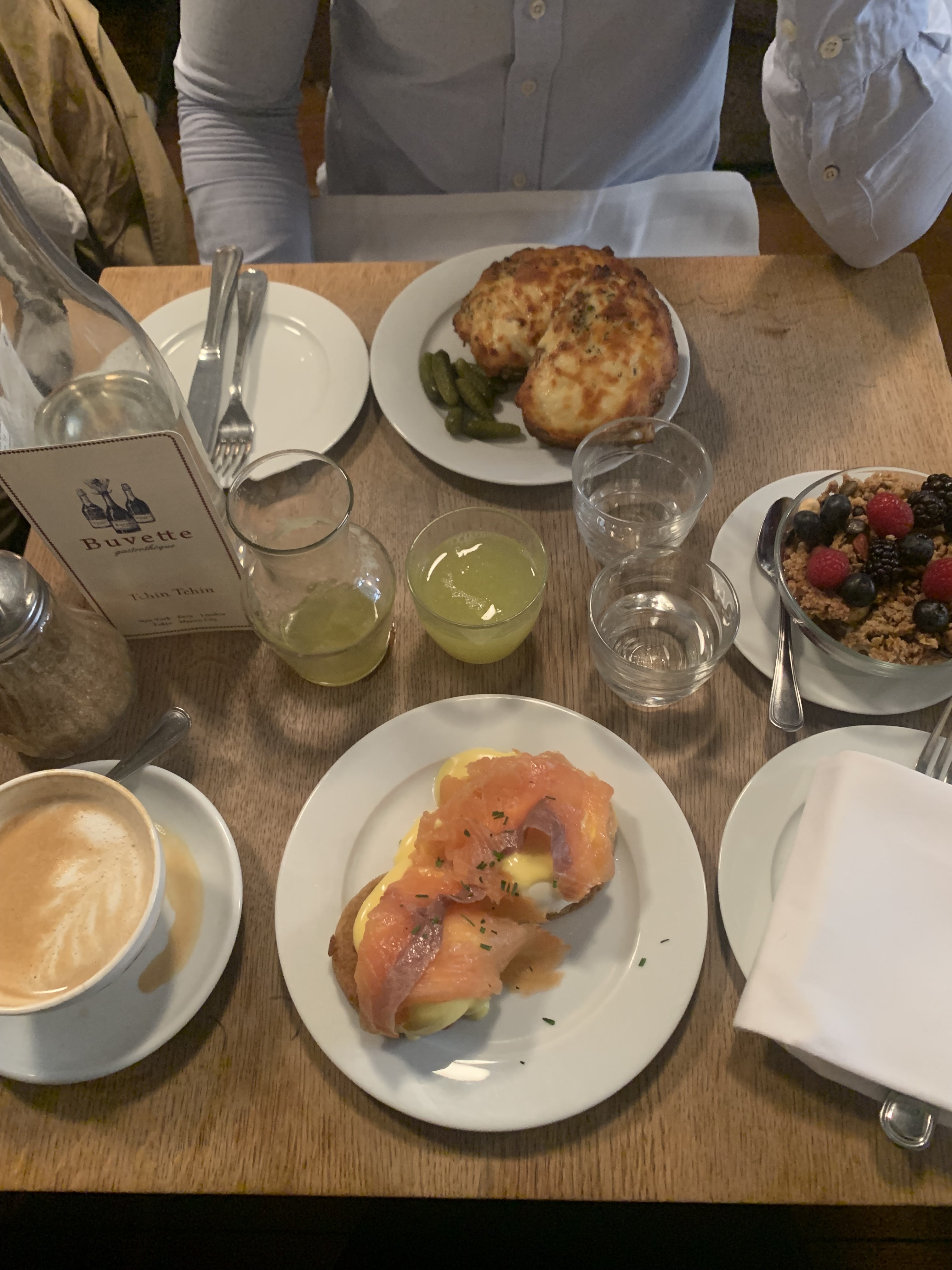 Ayant découvert Buvette à New York, j'avais vraiment hâte de visiter cet endroit à Paris. La nourriture était considérablement décevante. En fait, je suis allé ailleurs pour manger après avoir quitté le restaurant. J'ai remarqué que le serveur mentionnait des offres spéciales sur une autre table - mon serveur ne l'a pas partagé avec moi. Ce n’est tout simplement pas une super expérience du tout.