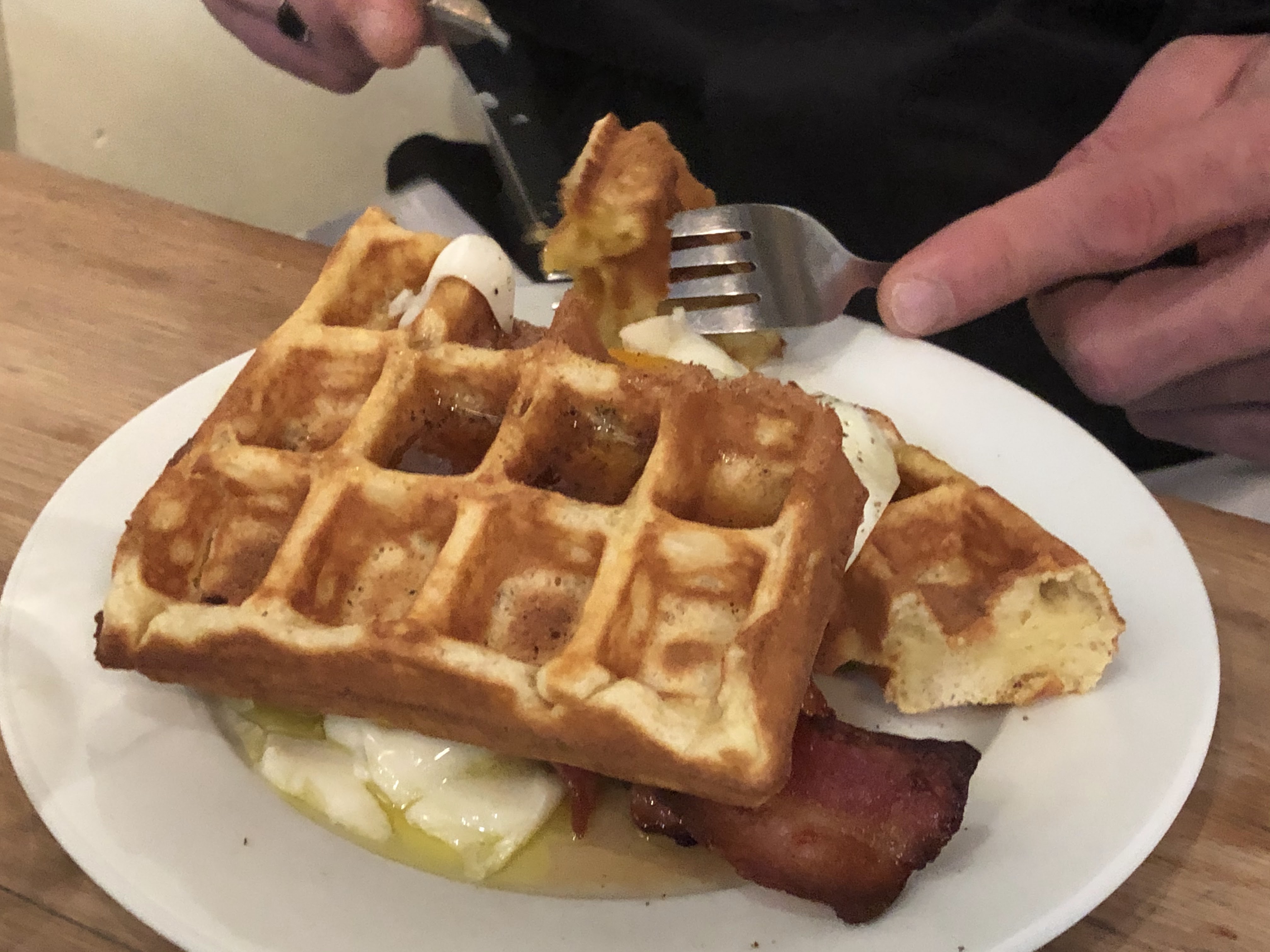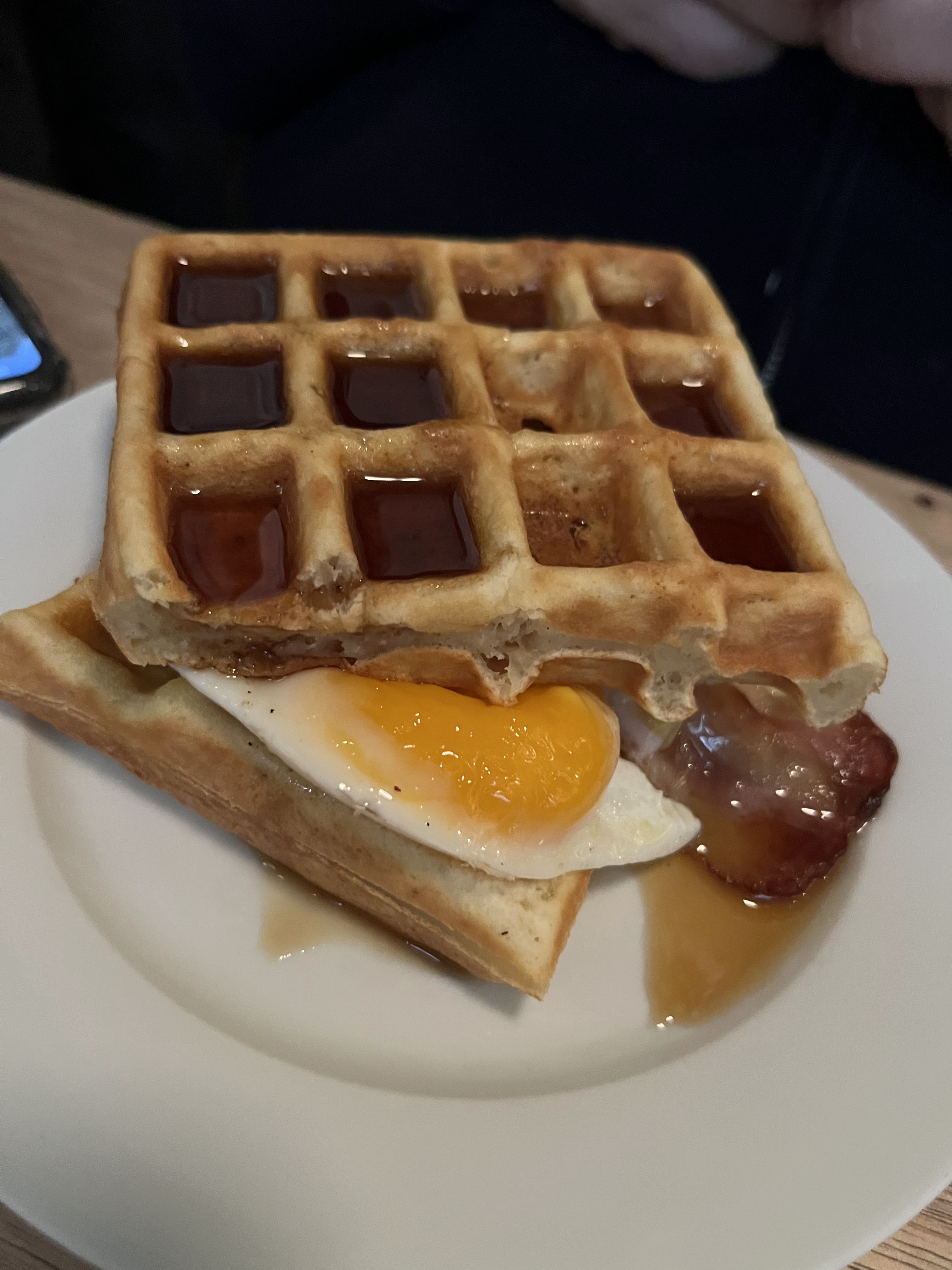 L’endroit porte bien son nom. Très bien, super attention du staff et tout est super bien présenté. La gaufre avec le bacon/œuf/fromage d’la bombe. La salade de poulet aussi, l’œuf meurette pour finir le salé. Et puis la gaufre au fruit rouge pour la touche de sucré. Une tuerie. Je recommande.