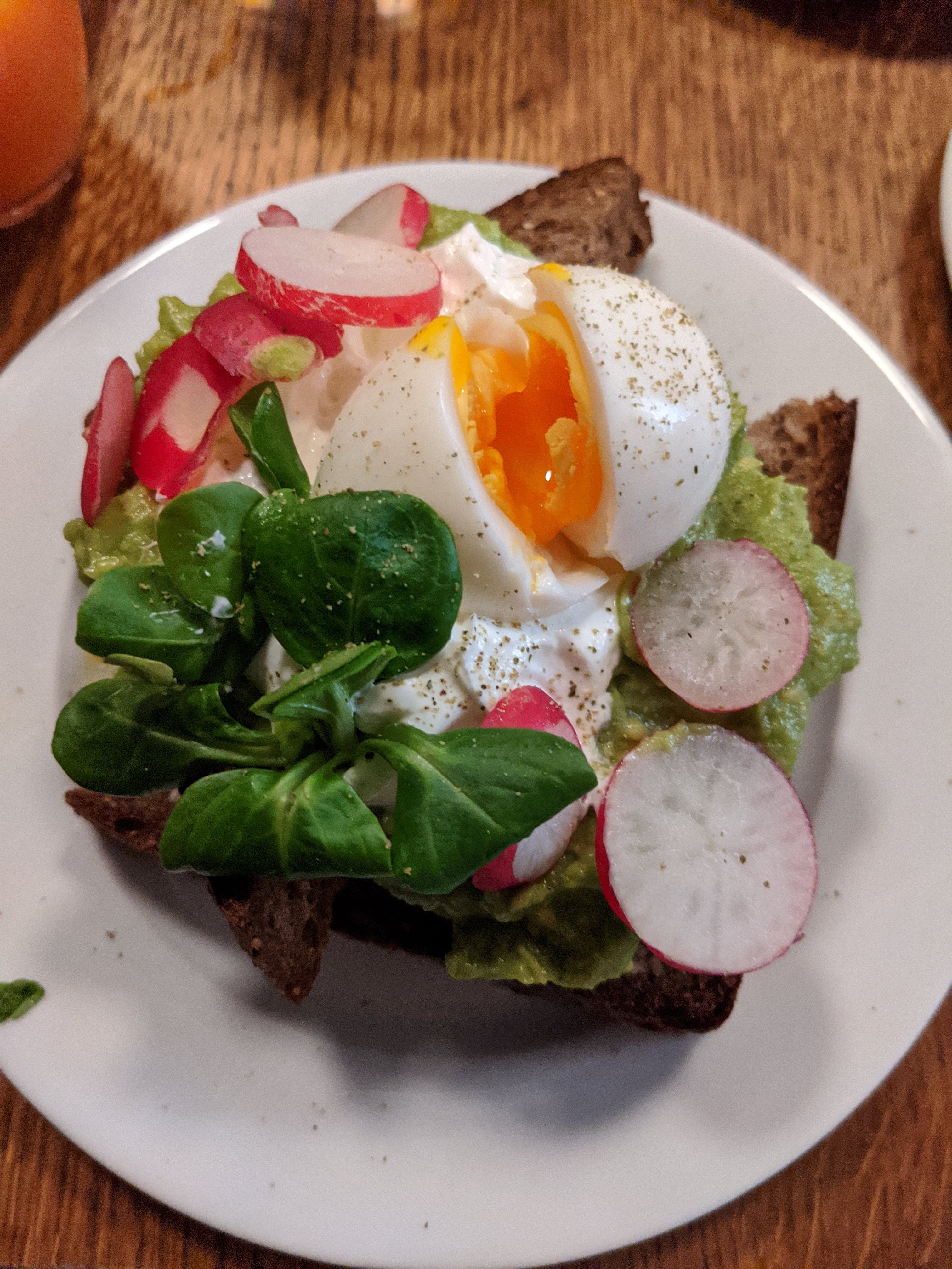 Nous sommes venus ici pour le petit-déjeuner et avons pris le toast à l'avocat comme cela nous avait été recommandé. Il contient une mayonnaise à l'ail, ce à quoi nous sommes habitués, mais c'était super. Bon café aussi.