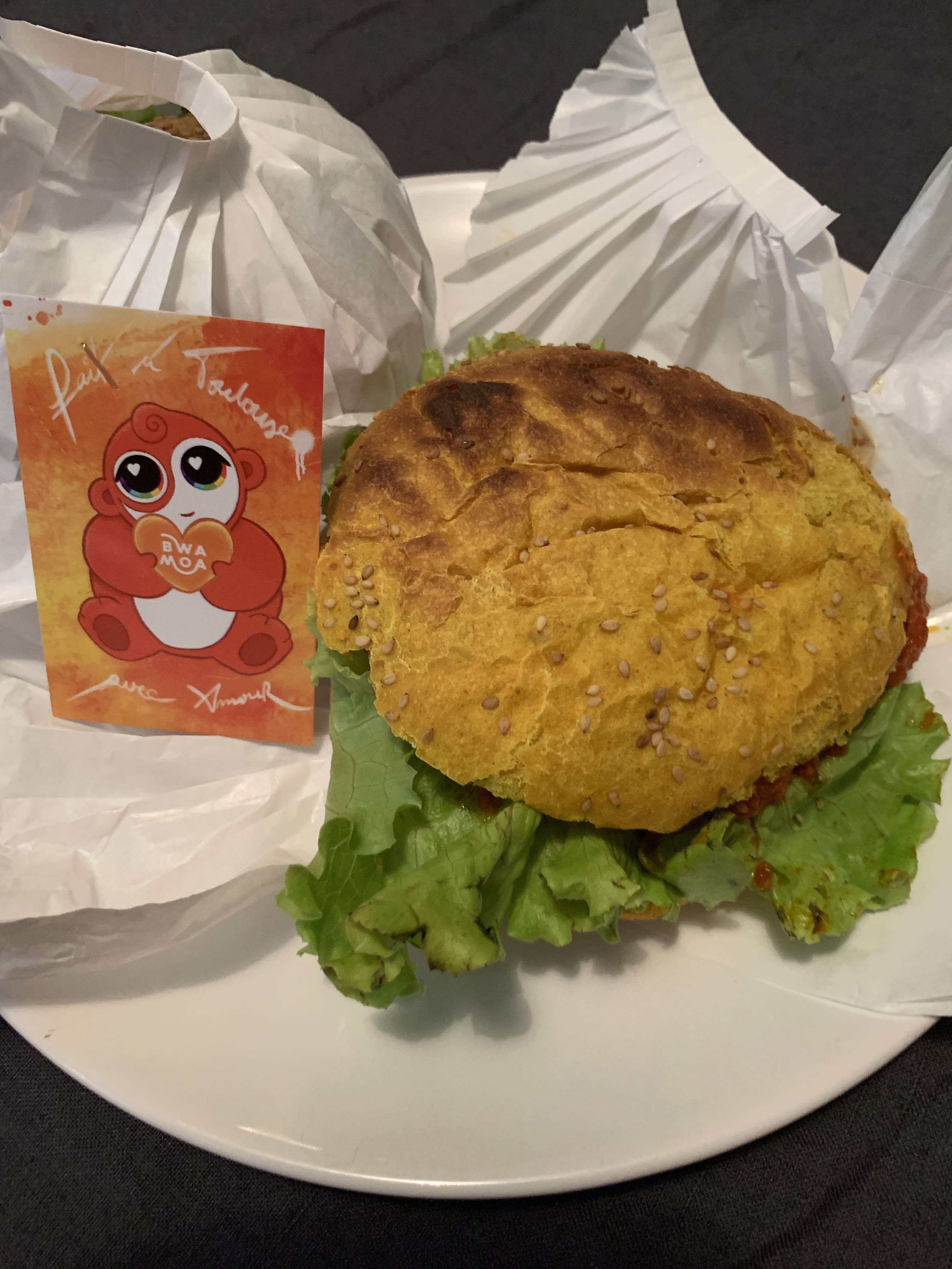 L'idéal c'est de prendre et manger dehors c'est super parcequ'on est au bord de la garonne! Mais les burger mon dieu, super bon j'ai adoré j'ai hâte de tester les différentes recettes! Les sauces pour les frites sont innovantes et la diversité de choix entre frites patates douces beignets de patates et frites de légumes c'est top! Et le bonus c'est beau bon et on as des cadeaux?! Mais pardon mais merci pour les madeleines et les pierres c'est ultra chou et ça fait tellement de bien ! Je reviendrais souvent! Recettes végétariennes et végan délicieuses!