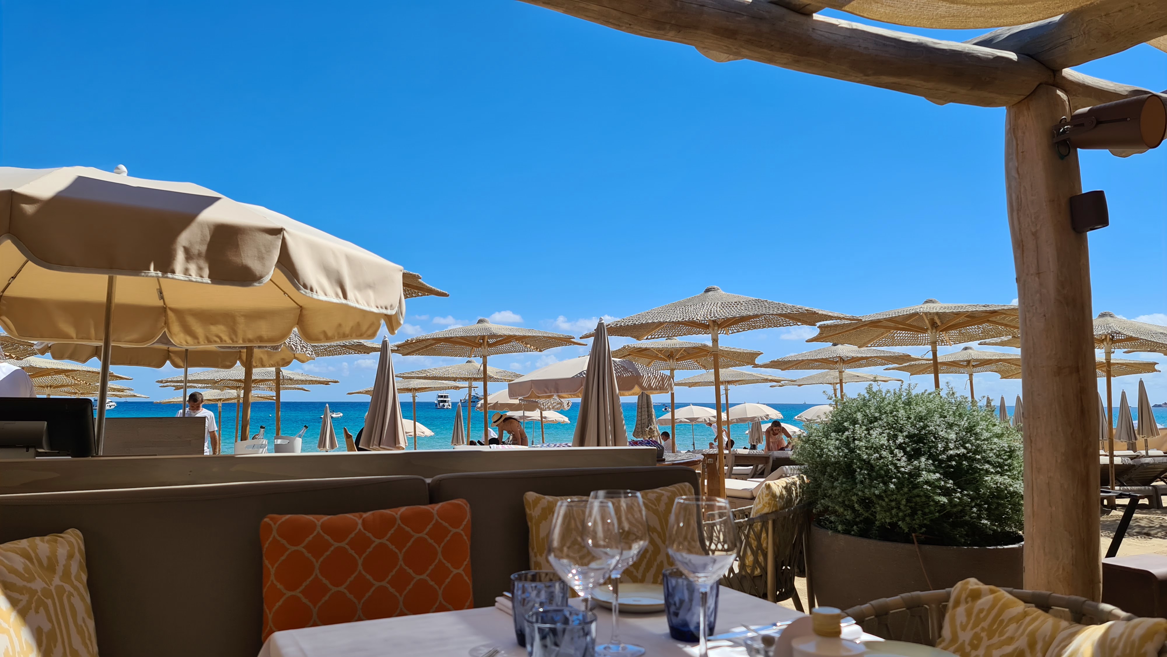 J'ai adoré aller déjeuner à cette plage. Le lieu est vraiment très beau et la nourriture excellente. J'ai particulièrement apprécié leur caviar. Le service est très bon, quoique parfois légèrement approximatif ce qui sans gâcher l'expérience et un peu décevant dans une plage à ce niveau de prix. Je reviendrais néanmoins les yeux fermés.