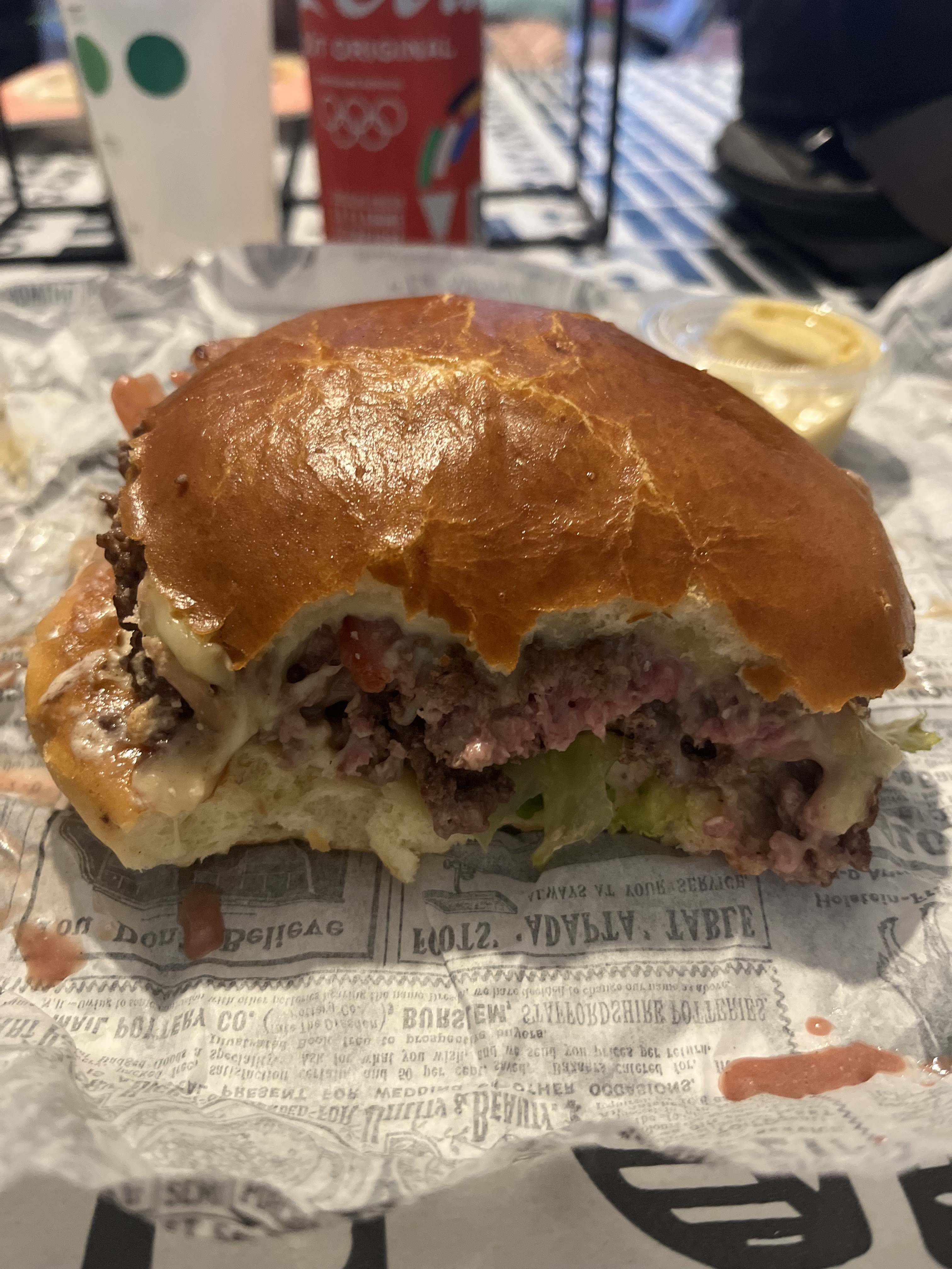 Tres bon accueil, personnel sympathique. Burger d’excellente qualité , sauces délicieuses , frites délicieuses faites maison . Menu tres copieux. Il y avait bien longtemps que je n’avait fait un aussi bien repas burger.