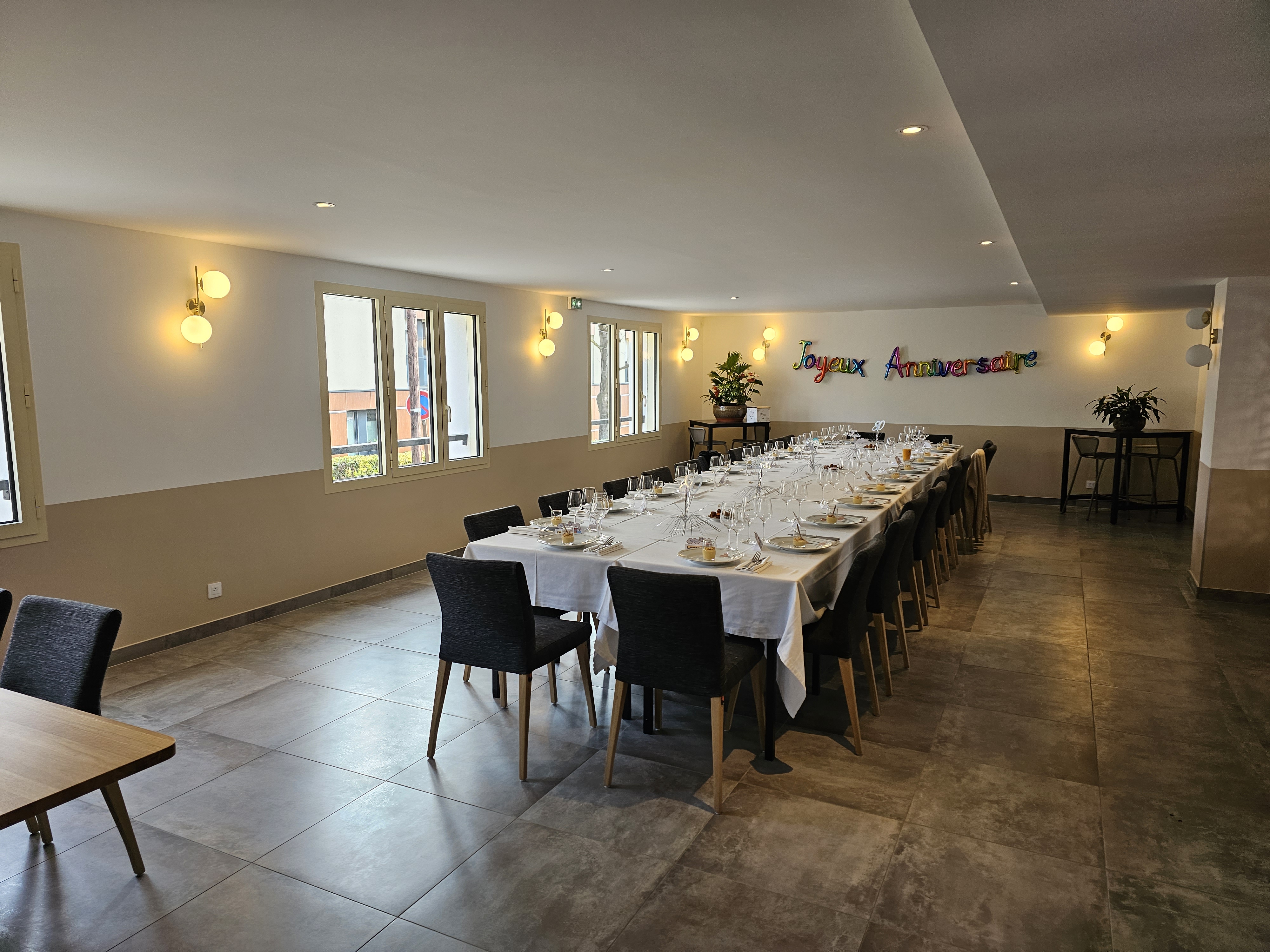 Repas d'anniversaire dans une grande salle du restaurant. Accueil chaleureux: personnel sympathique et à l'écoute. Repas de qualité avec des produits excellents: 3 menus différents nous étaient proposés. Toute la famille était ravie de ce moment convivial dans ce cadre sobre et décoré avec goût.