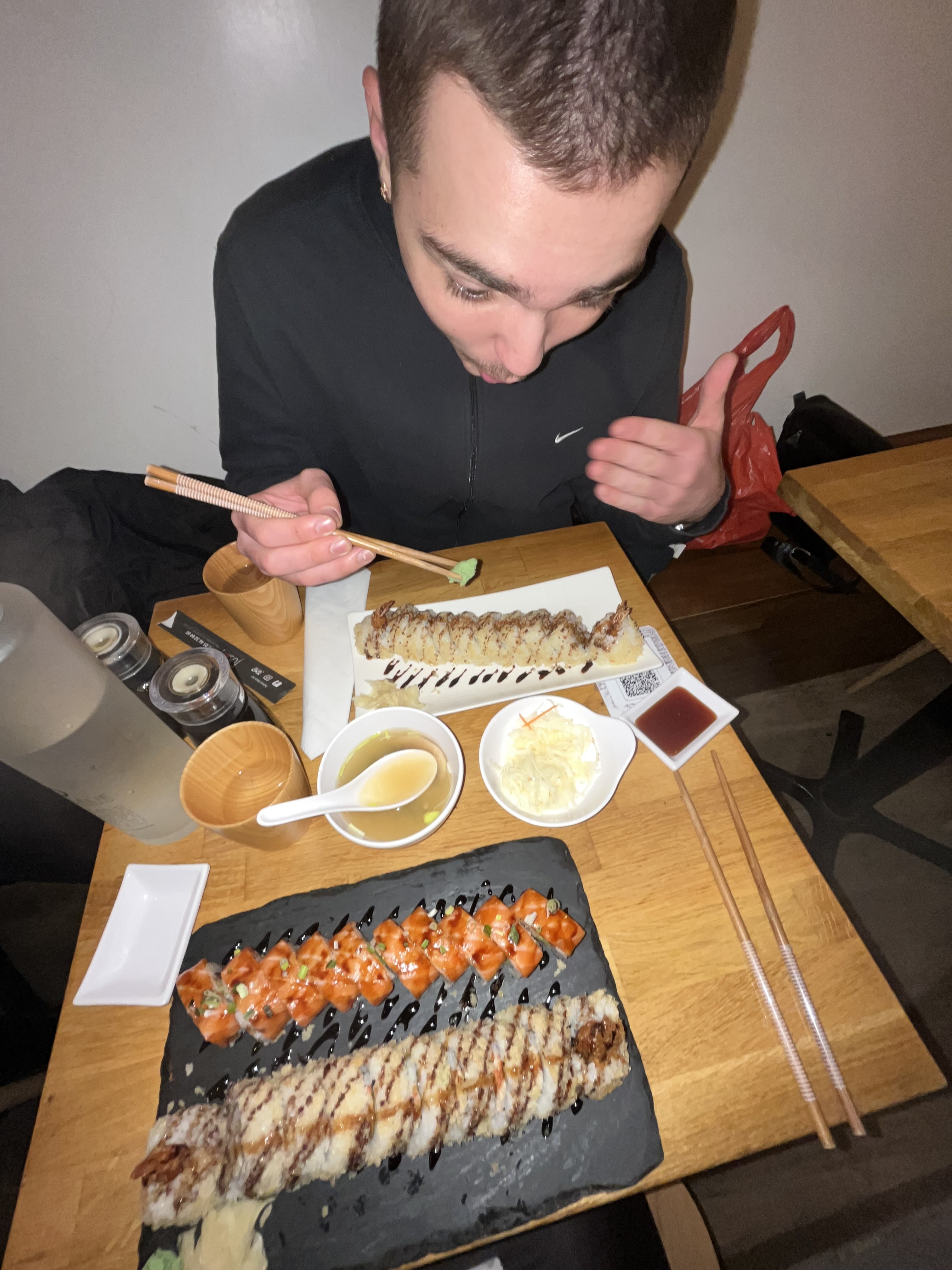Très bon dîner ! Les rolls sont très bons et vraiment gros donc assez gourmand :) Seul petit bémol les tables sont collantes donc faire attention aux prochaines visites !