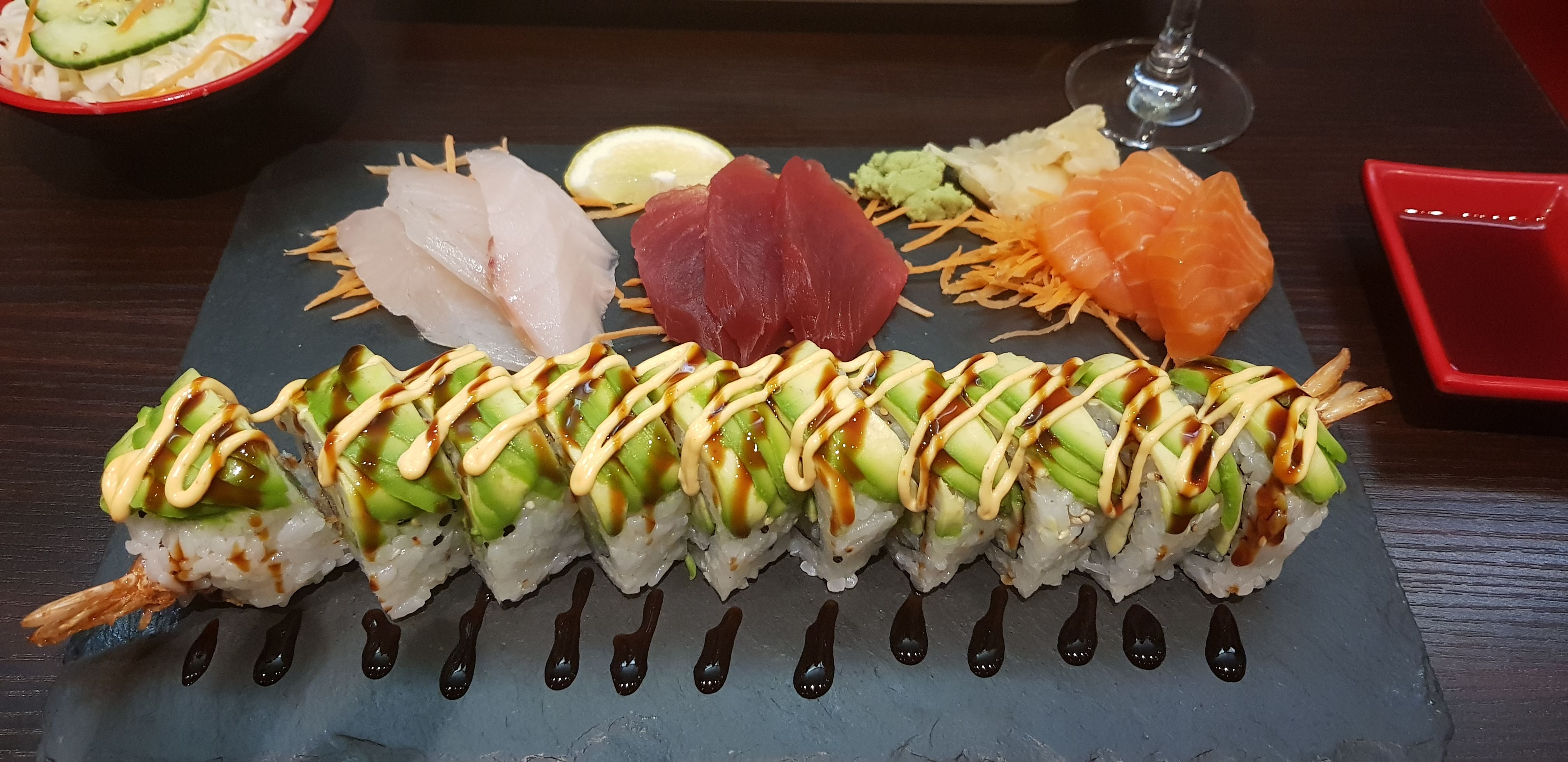 Concept original de faire les rolls, celui à l'avocat, sauce anguille et tempura est très bon. Les sashimis sont frais. Petit bémol sur la salade de choux un peu fade mais nous sommes globalement très satisfait. L'équipe est accueillante et chaleureuse.