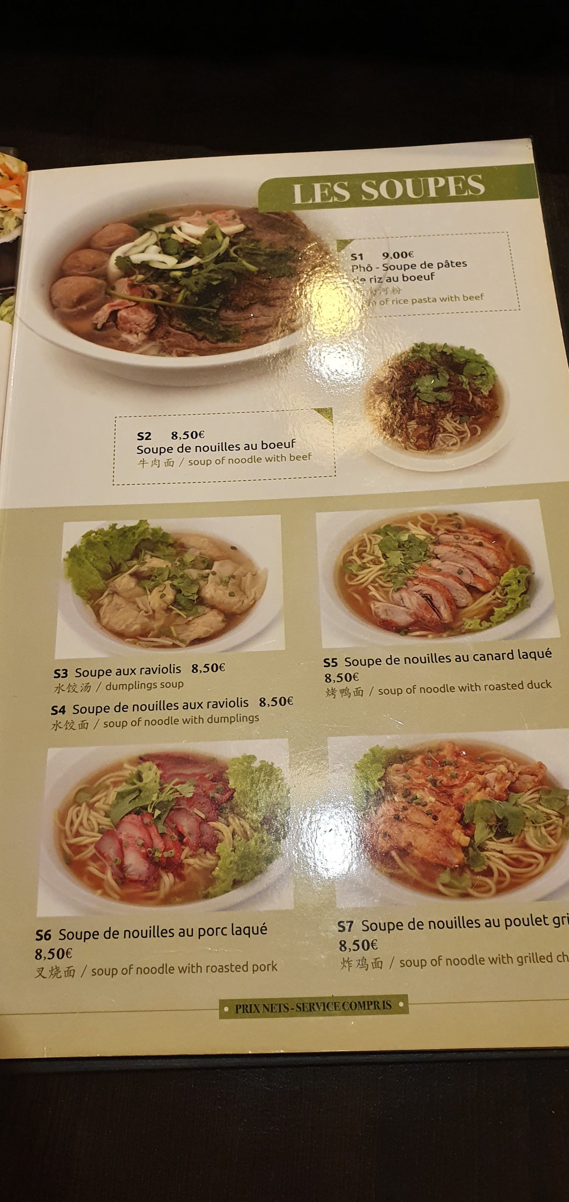 J’ai pris des nems et une soupe au boeuf.. pour mois c’est un raté.. le bouillon n’avait aucun goût j’avais l’impression de boire de l’eau chaud et du bœuf vraiment je déconseille ce plat. Les Nems étaient bons. Mon amie a prit un pho qui était bon mais très salé. Expérience mitigée pour nous.