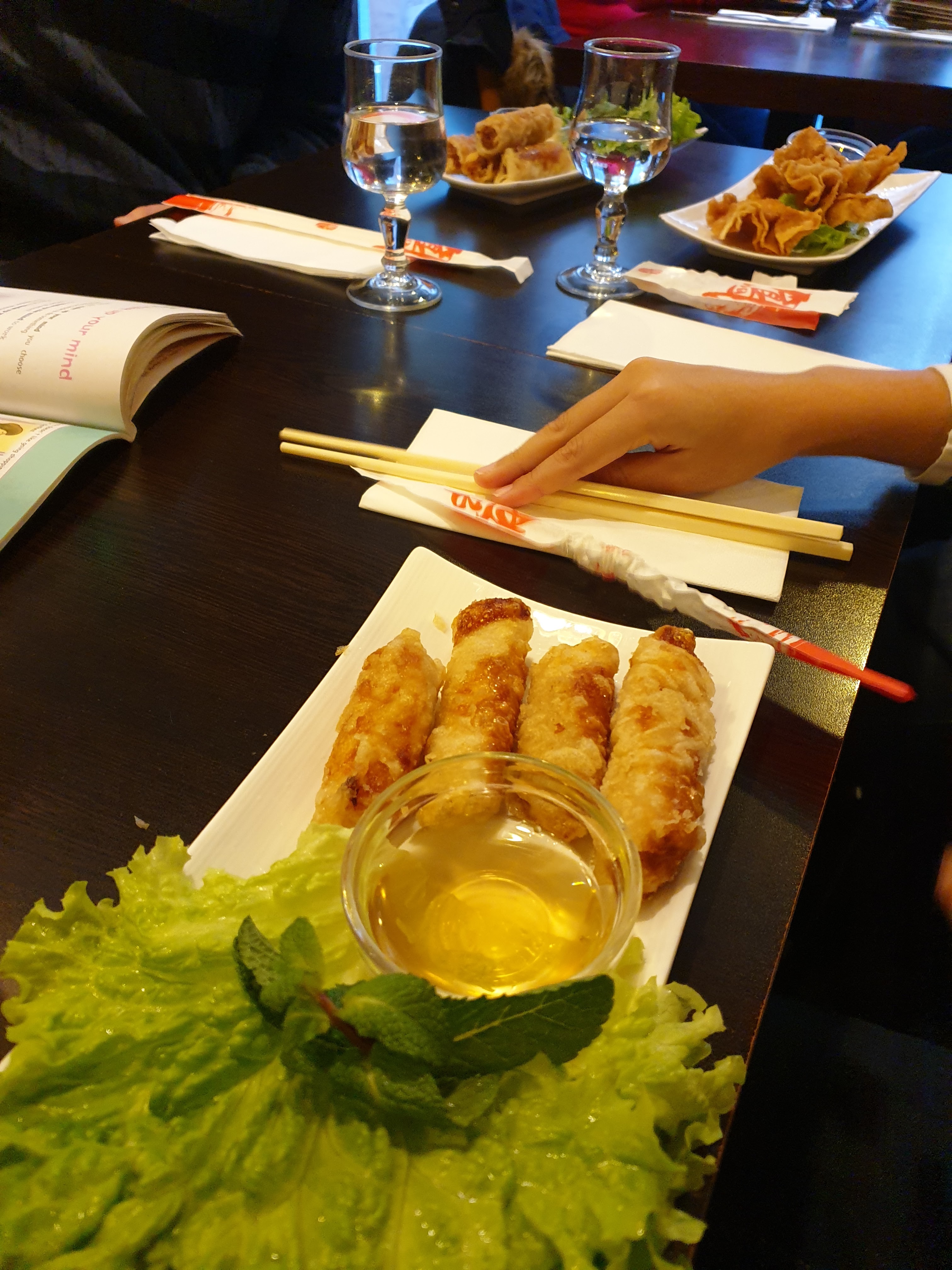 2 très bonnes expériences dans ce petit restaurant asiatique ! Les prix sont vraiment abordables, les plats sont savoureux et généreux. Les serveurs sont gentils comme tout et se donnent à fond. On a été servis plutôt rapidement alors que c'était pleins. Mes nems au poulets étaient très bons, très chauds. Les nouilles aux boeufs sont aussi très bonnes et copieuses. Nous n'avons pas eu besoin de prendre de desserts. Peut-être serait-il judicieux d'ajouter quelques autres desserts à la carte qui n'est pas très fournie à ce niveau là ? Ils m'avaient semblés chers pour la quantité. Je recommande néanmoins pour les plats !