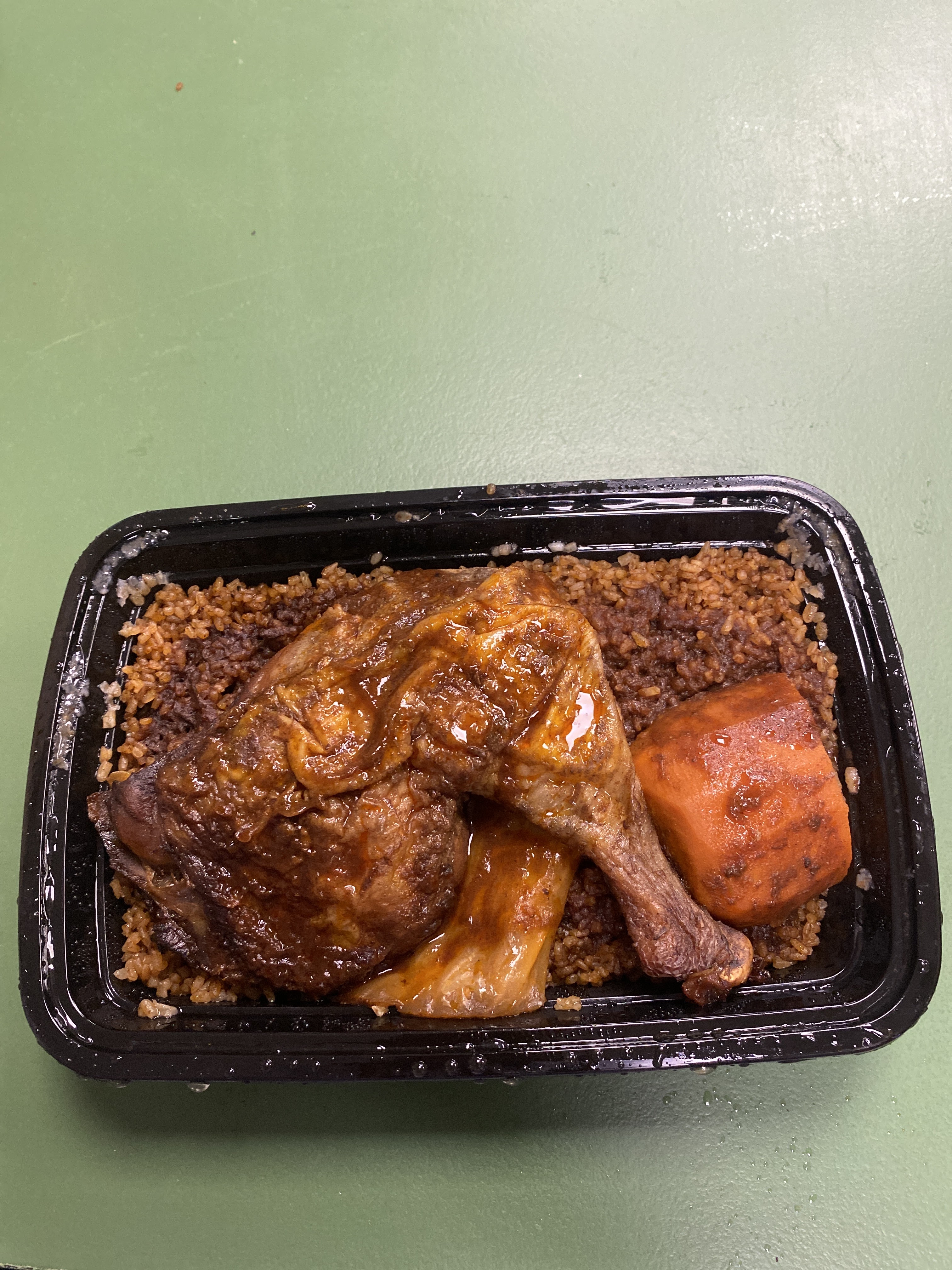 C’est du ooulet avec du riz et une sauce à partt. Pas mijoté. Le maffe a le goût de tomate en tube, pas d’arachide. Pas de citron dans le yassa. Les bananes sont molles et spongieuses j’ai dû les jeter. A éviter de toute urgence.