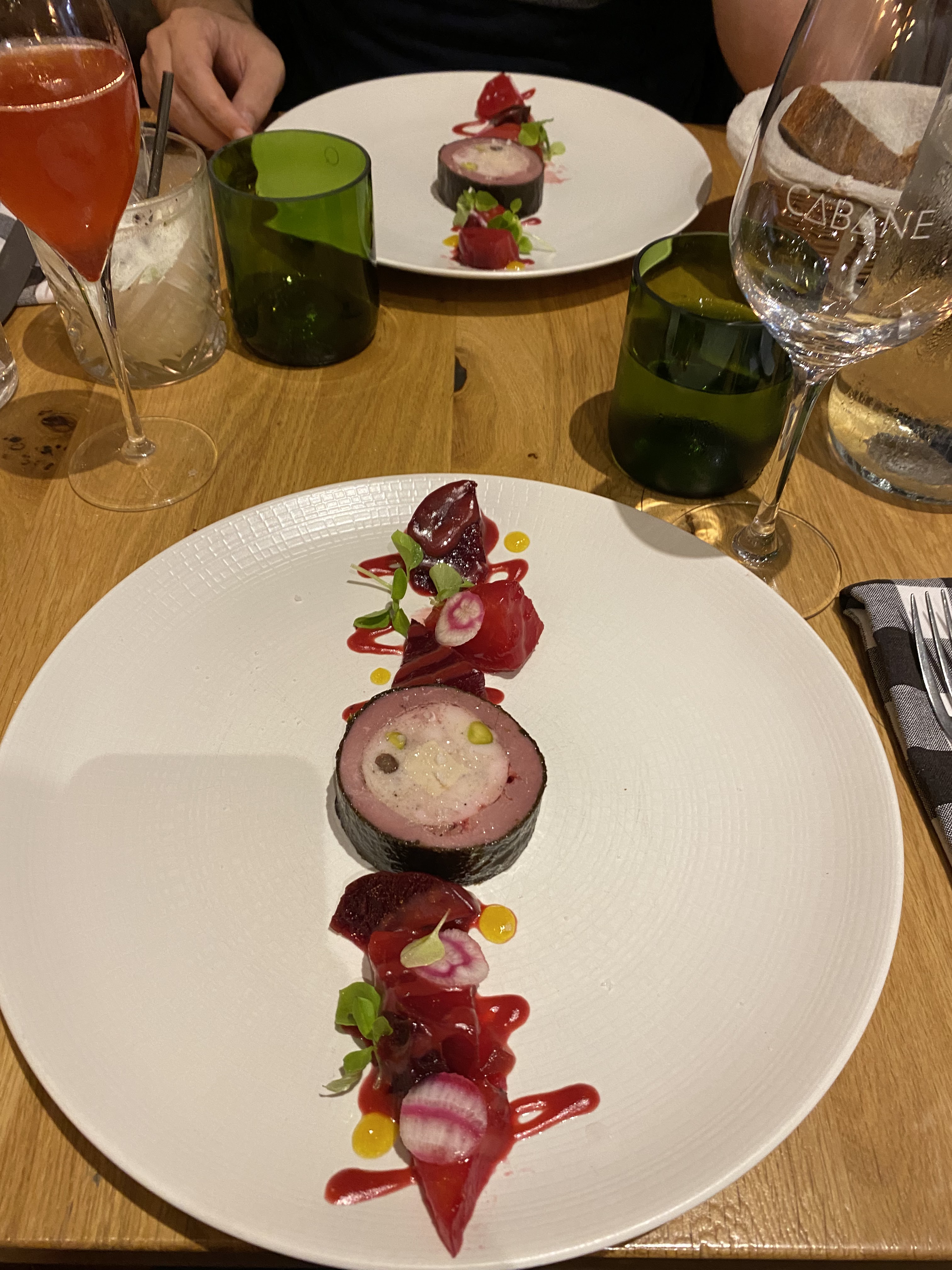 Encore un dîner hier soir chez Cabane et chaque fois c’est un émerveillement : les assiettes sont aussi belles que bonnes, les saveurs parfaitement mariées… et le service attentionné, juste ce qu’il faut. Vivement la prochaine fois