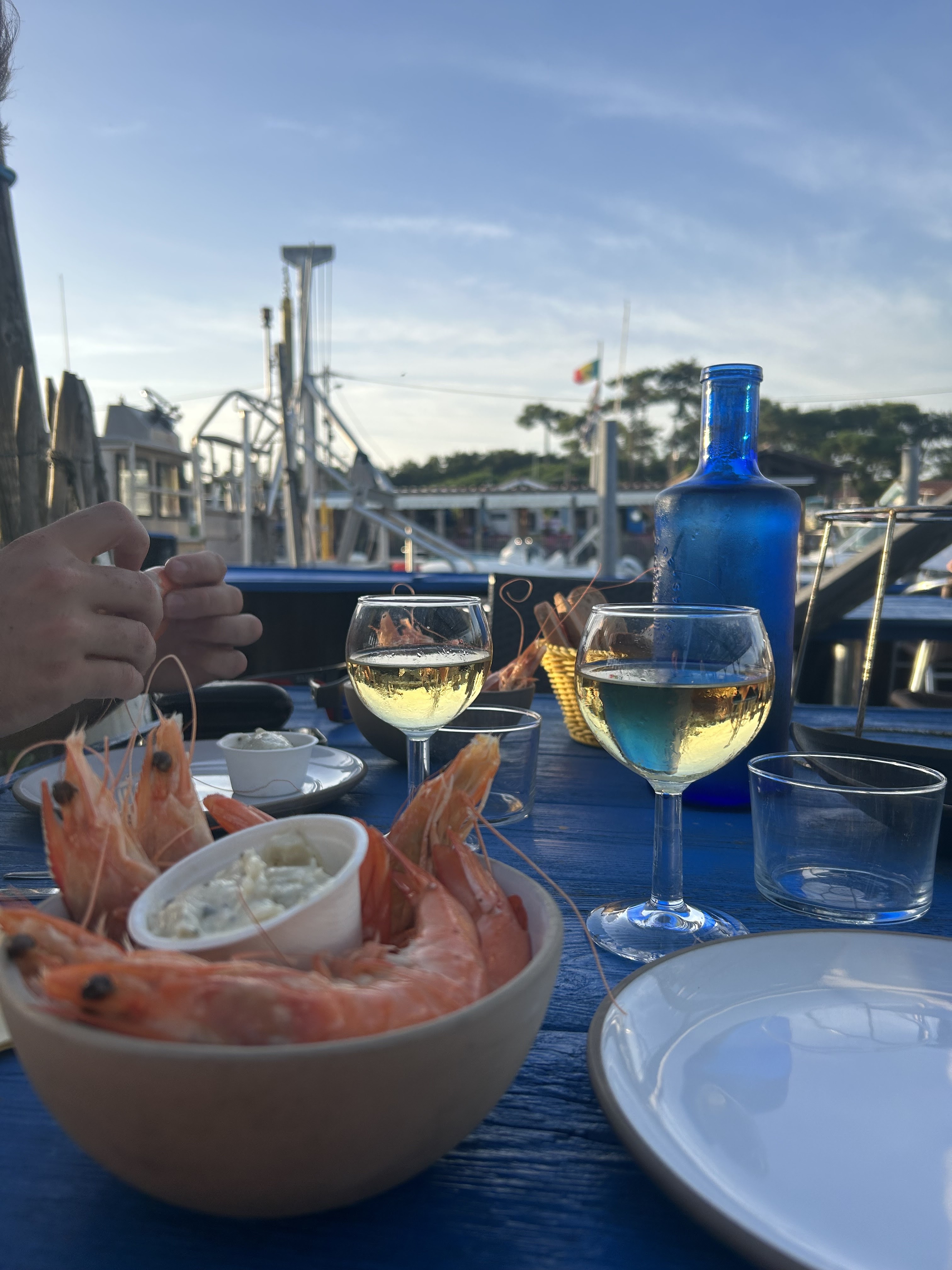 Avec le soleil, c'est super de déguster leurs huitres, crevettes. Dommage, ce jour là il ni avait plus de boulots. Et avec un petit verre de blanc....