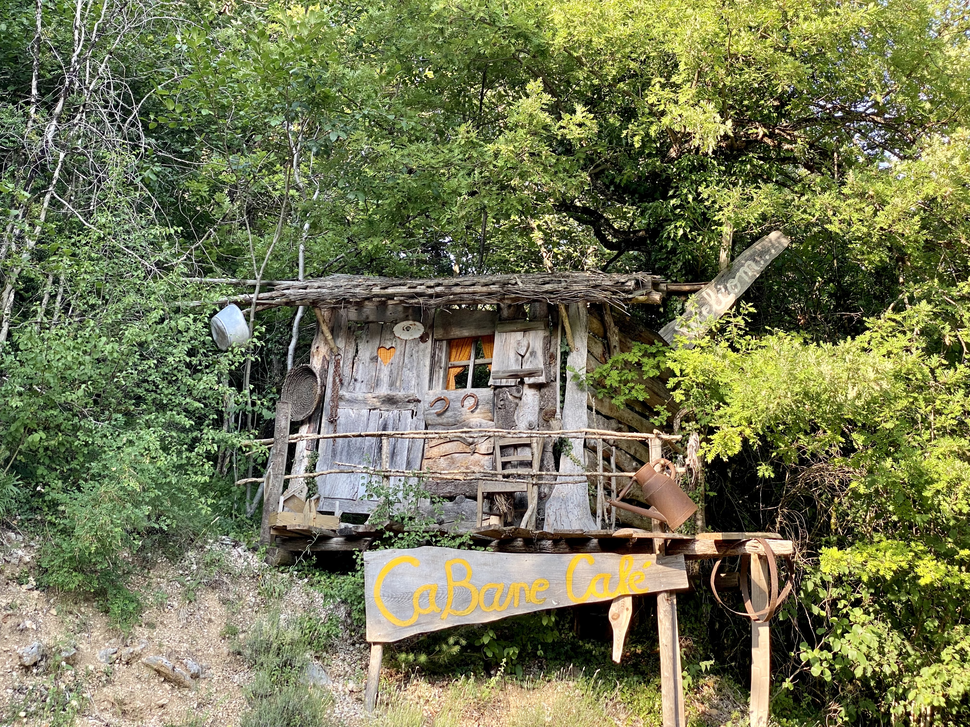 Juste un café sur la route de la grotte. Un endroit hors du temps. Accueil chaleureux. Nous avons fait le plein de produits locaux pour la plupart bio. J'ai adoré, la cabane au fond du jardin...🎶🎶