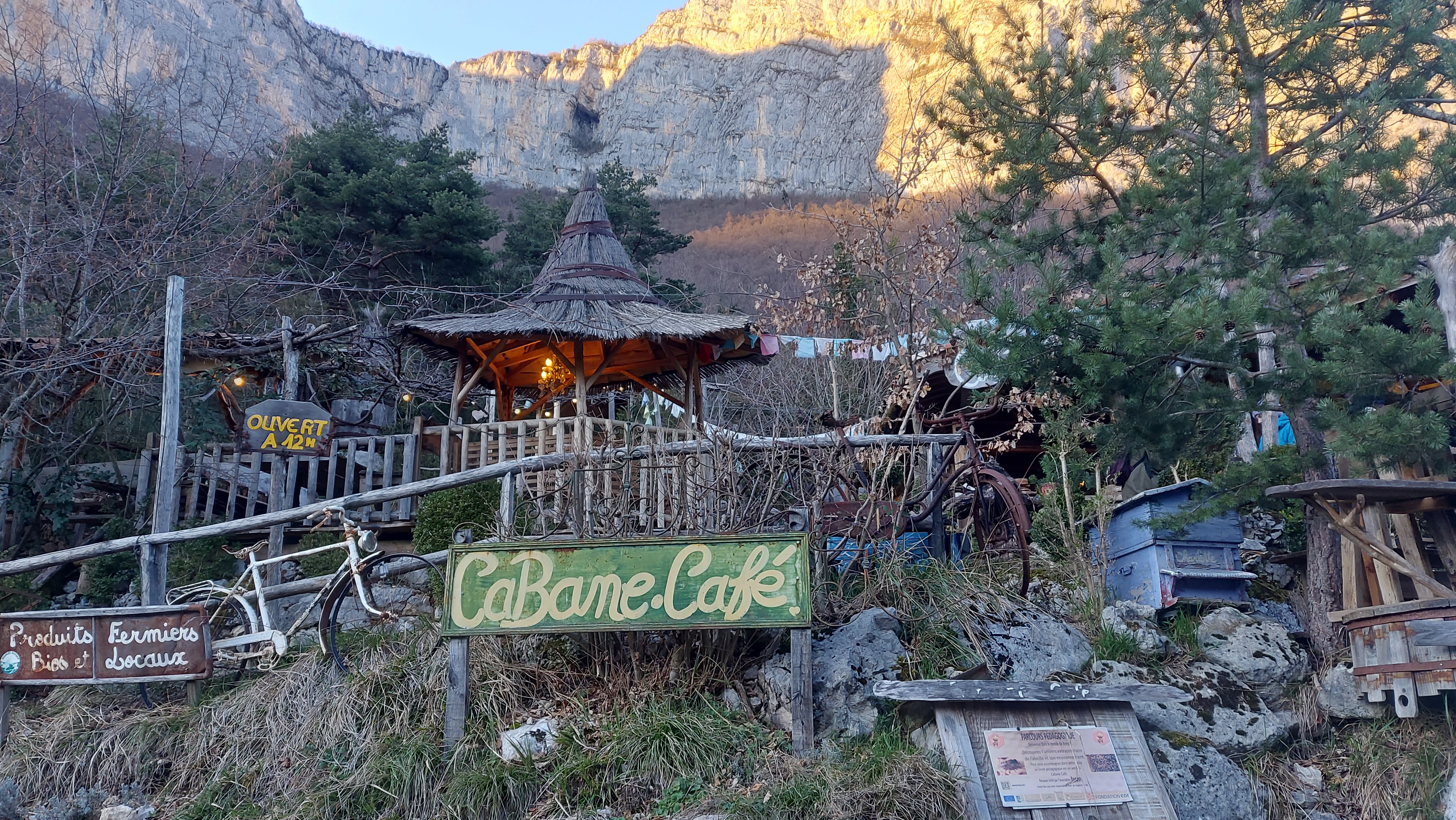 L'endroit est vraiment insolite, magnifique et apaisant. De passage avec les enfants sur la route de choranche On devait imprivise le pic nique alors on s'est arrêté à la cabane café Le cadre au top, mais au moment de l'addition... ça pique. Certes les produits sont bio et locaux, (les ravioles saint jean...moyen quand même et la sauce du gratin pas top). En tous cas c'est un super projet, super endroit.