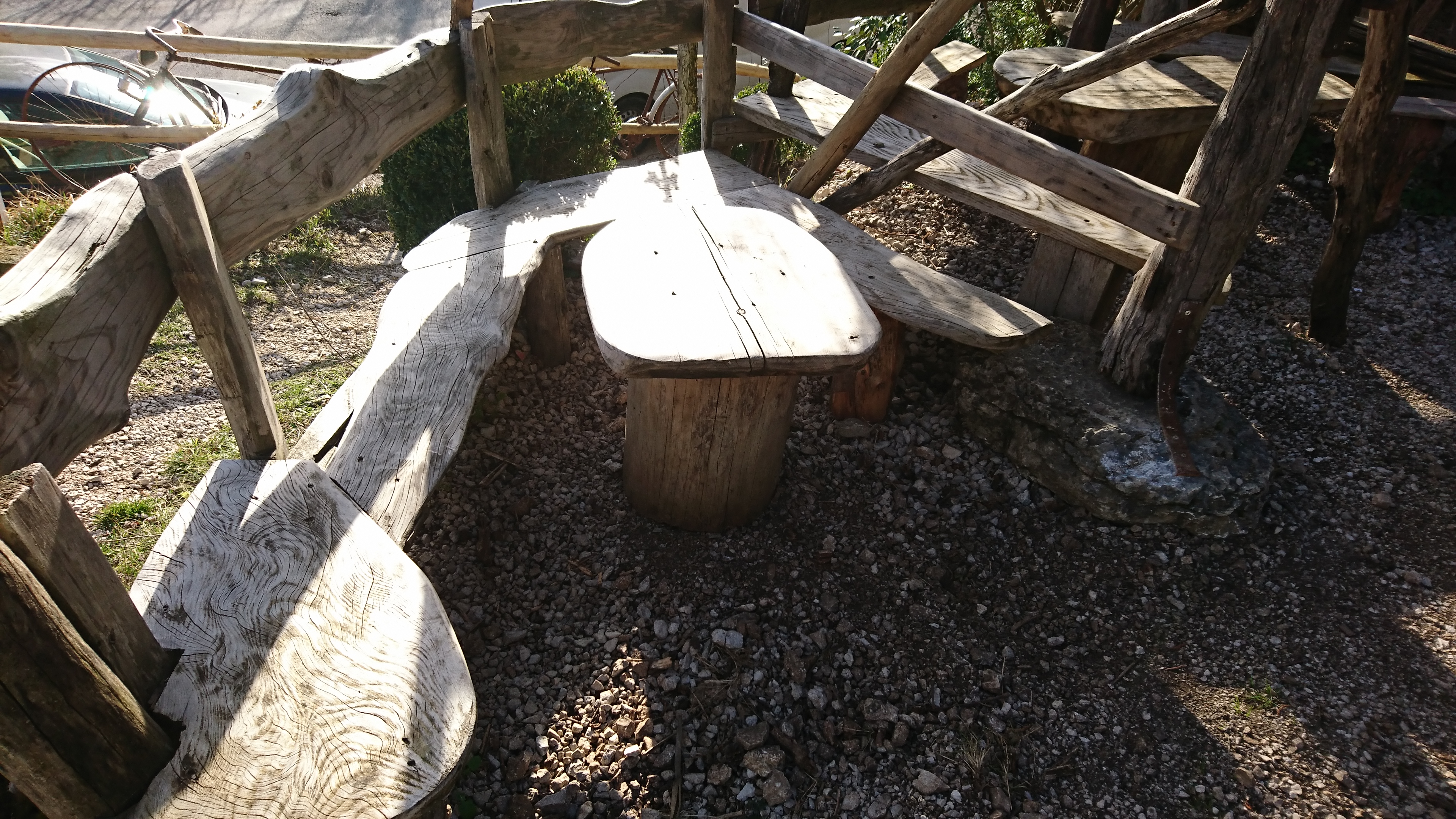 Plein de petits espaces ombragés dispersés dans la nature, pour y déguster les produits locaux en vente. Une pause Picnic vraiment agréable!
