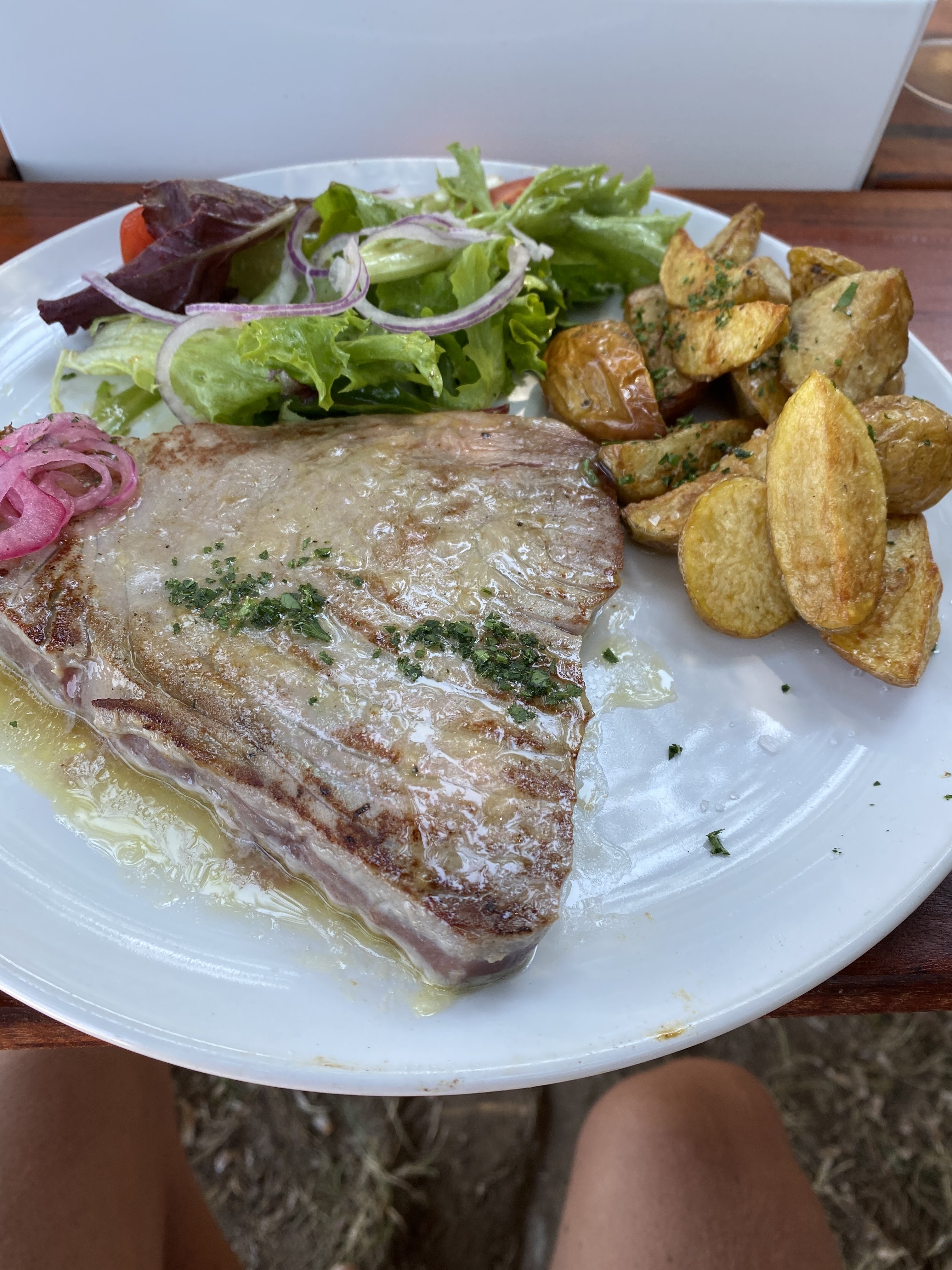 Bien entendu il faut réserver, sinon n’espérez pas avoir de place dans le seul restaurant du coin! La vue est top. Service détendu et plats goûteux et généreux. Nous y avons passé un très bon moment.
