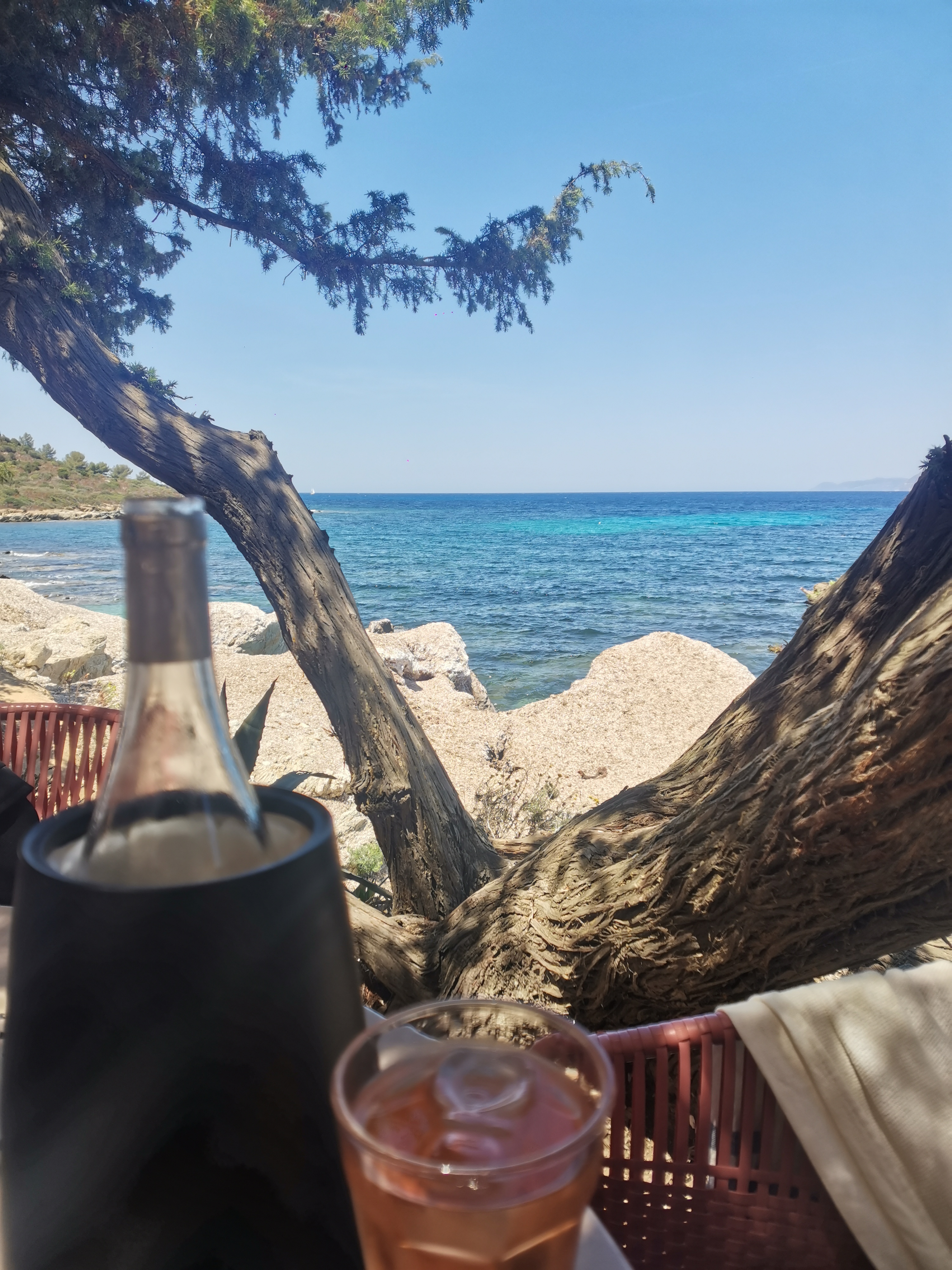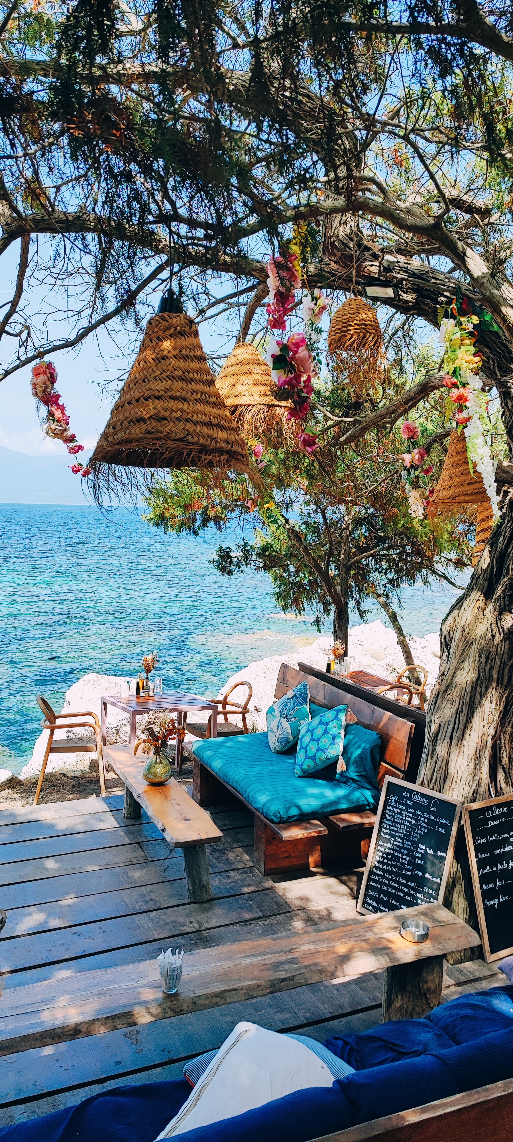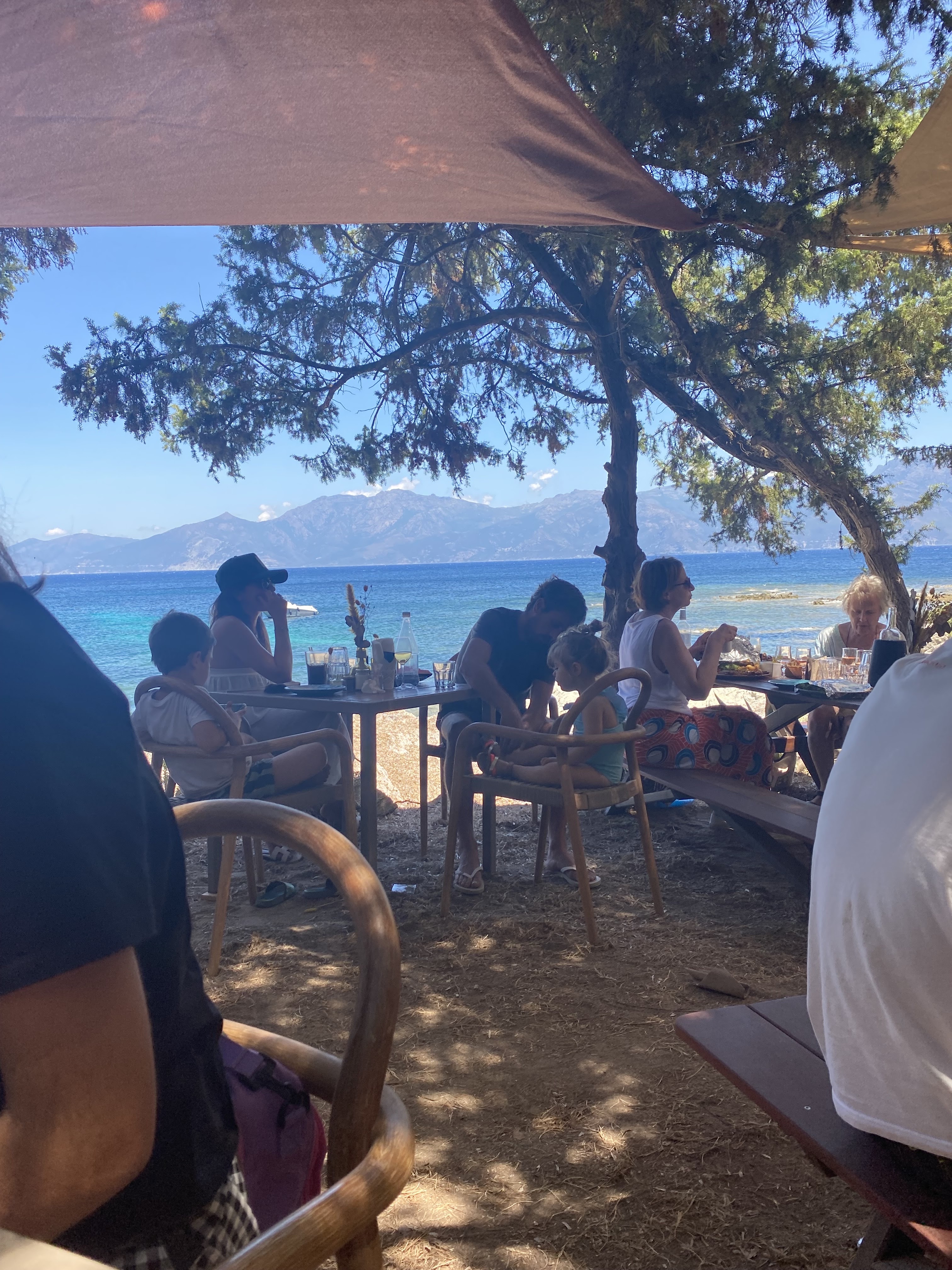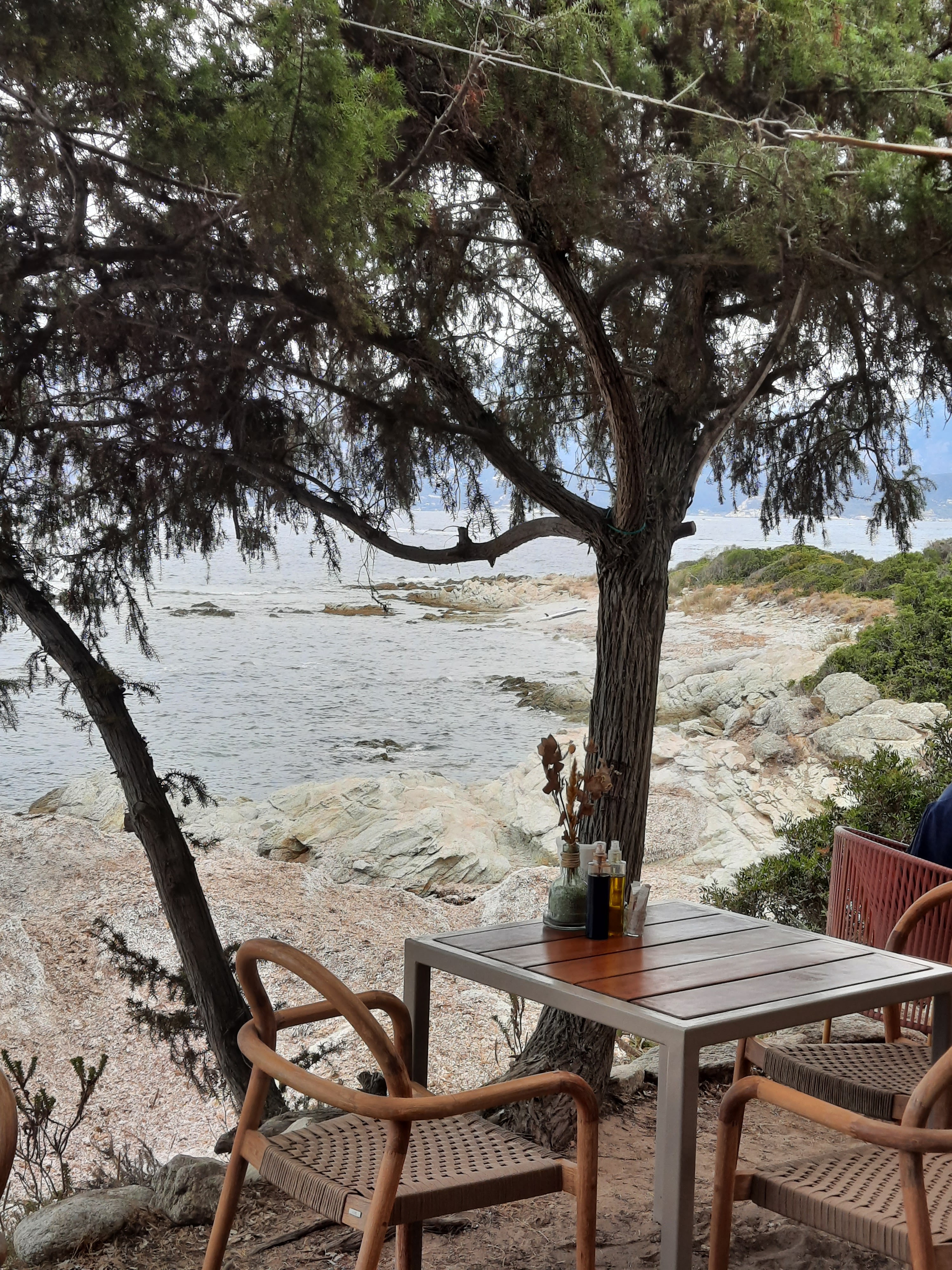 Bon restaurant de plage belle déco dans les tamaris surplombant les rochers très bon moment 😍😍