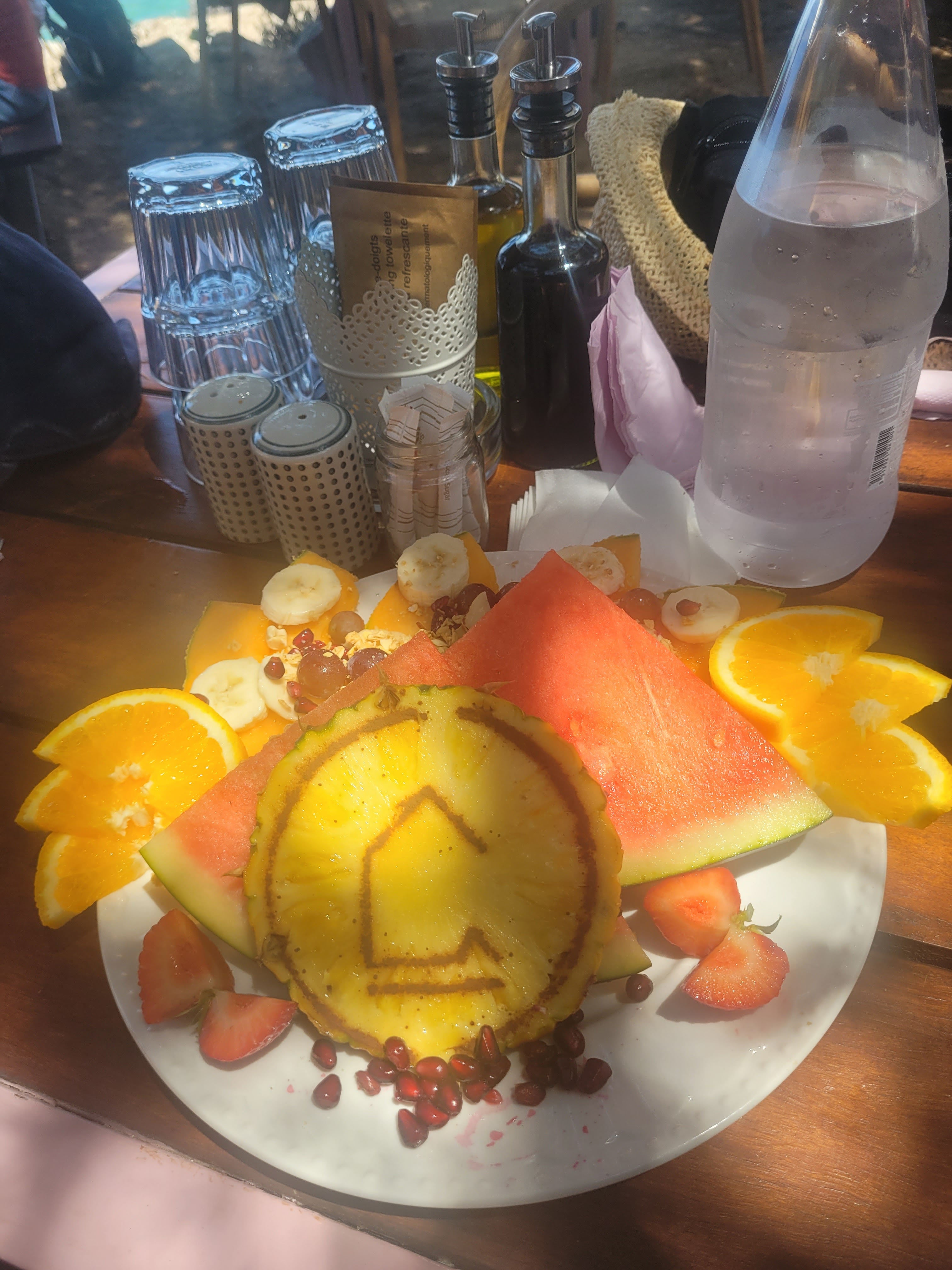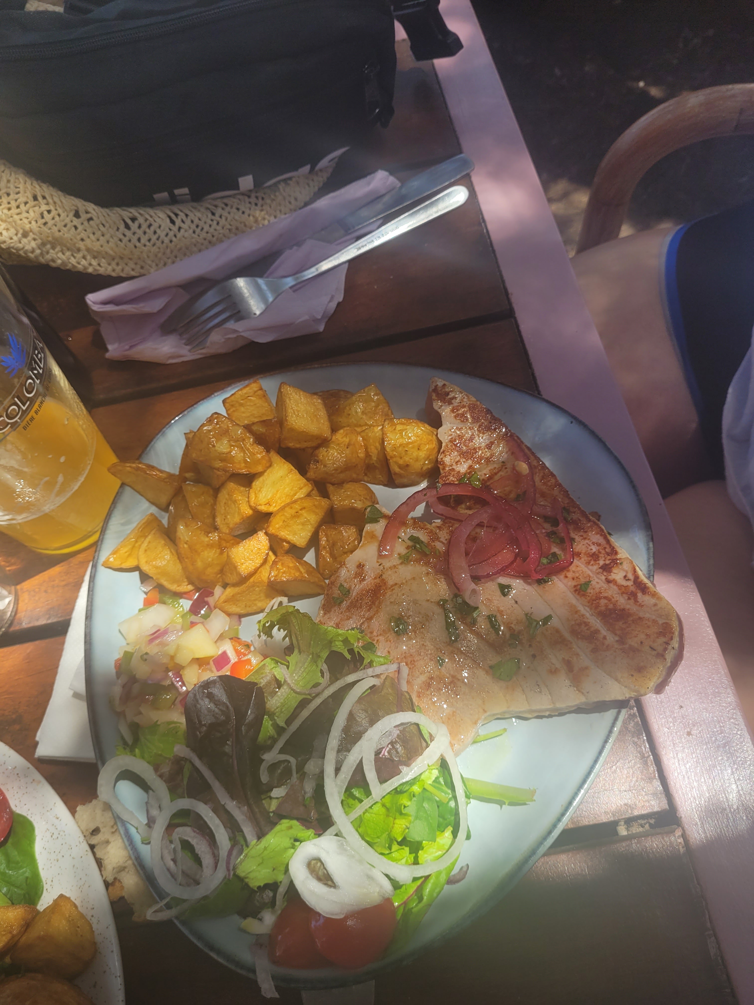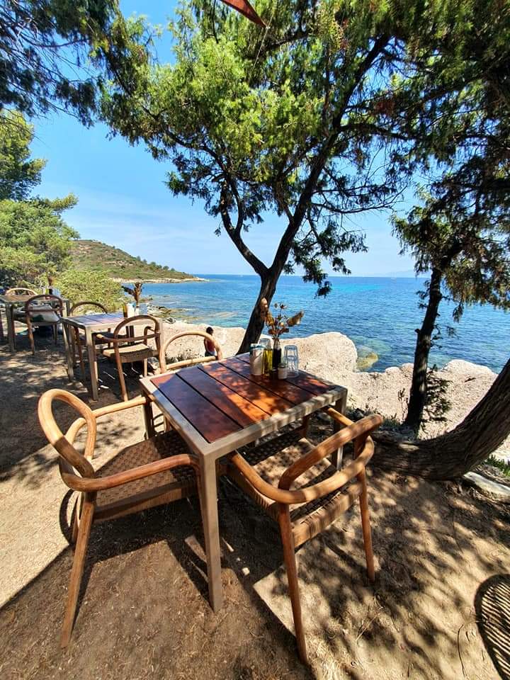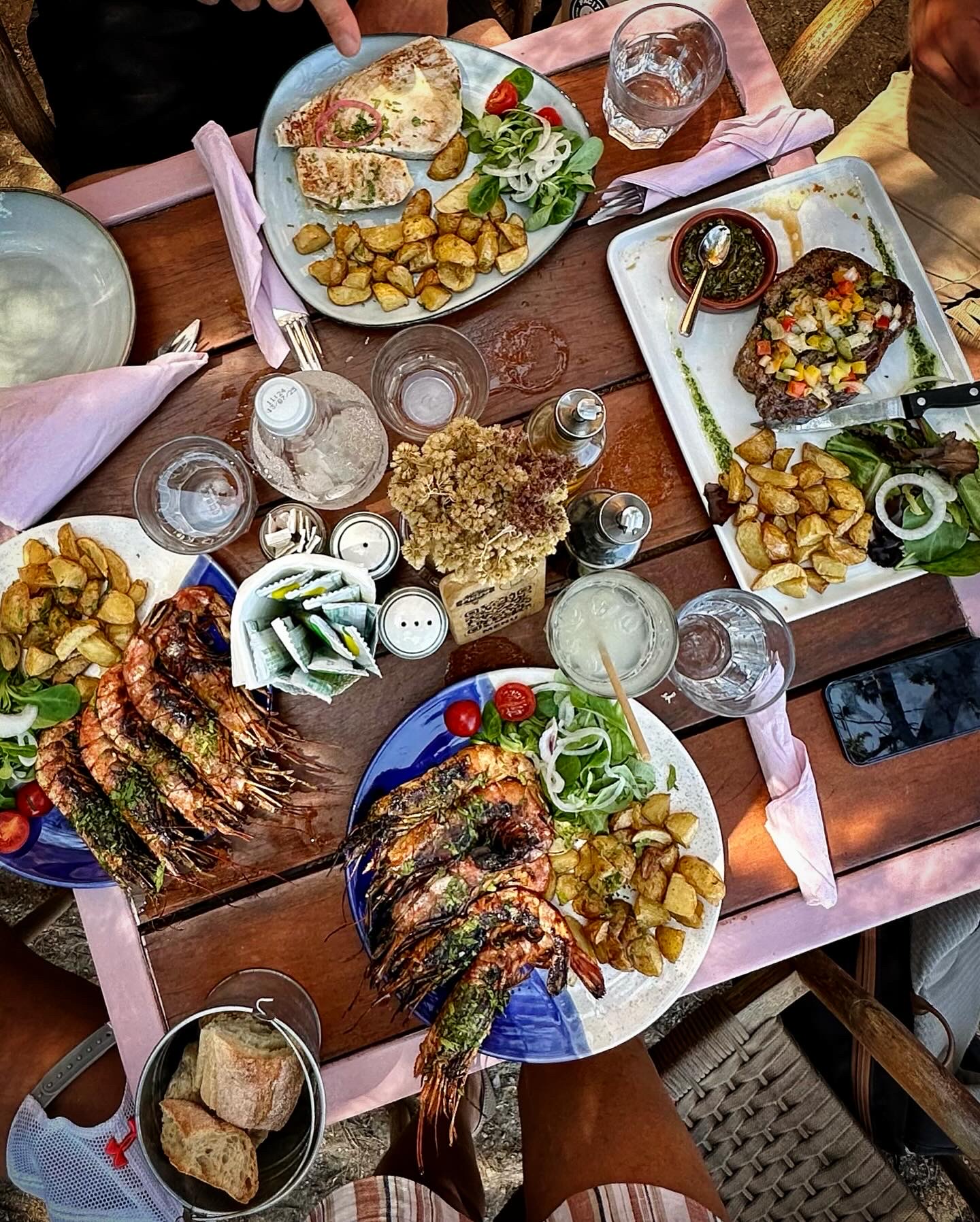 Bon restaurant de plage belle déco dans les tamaris surplombant les rochers très bon moment 😍😍