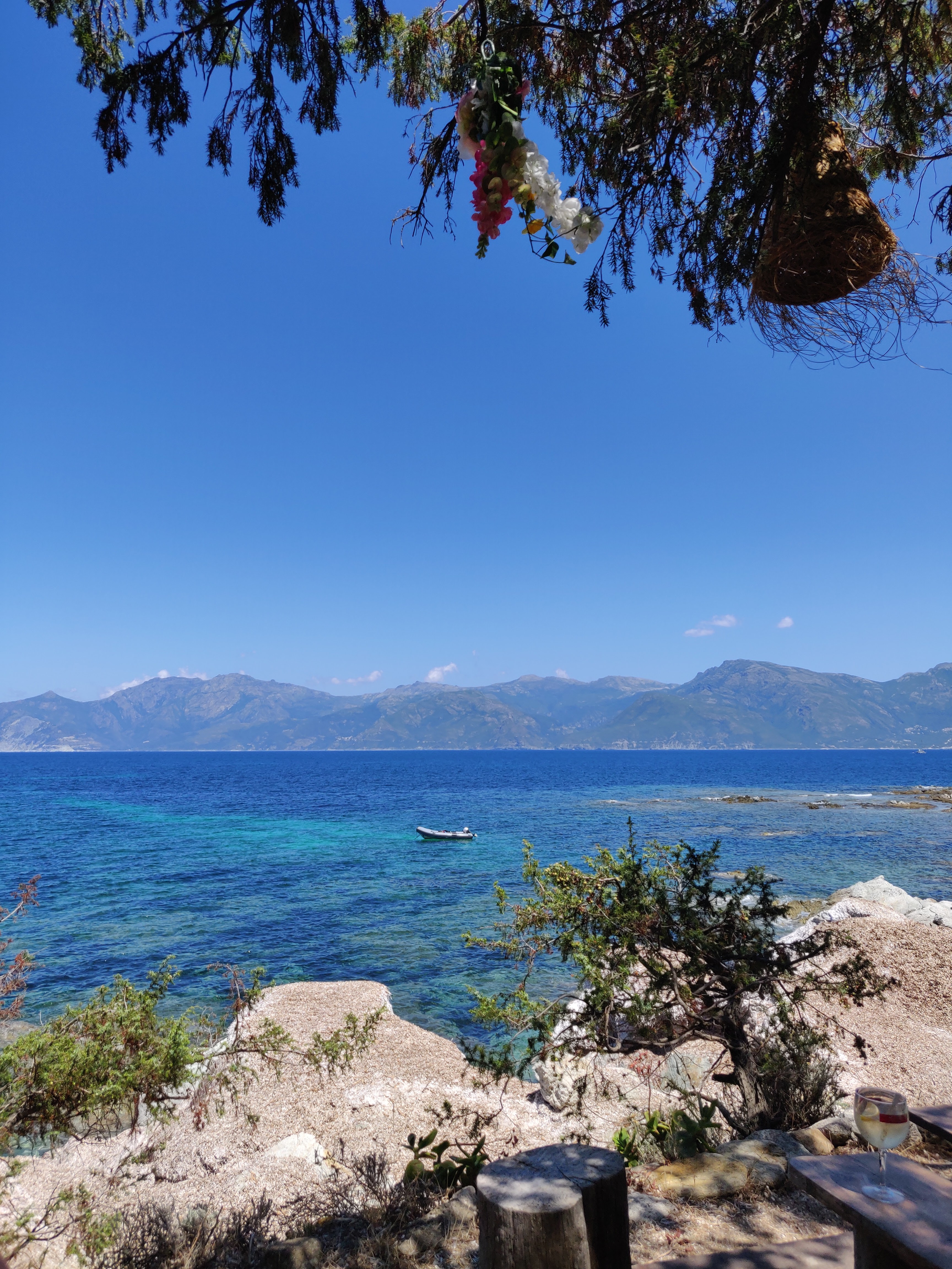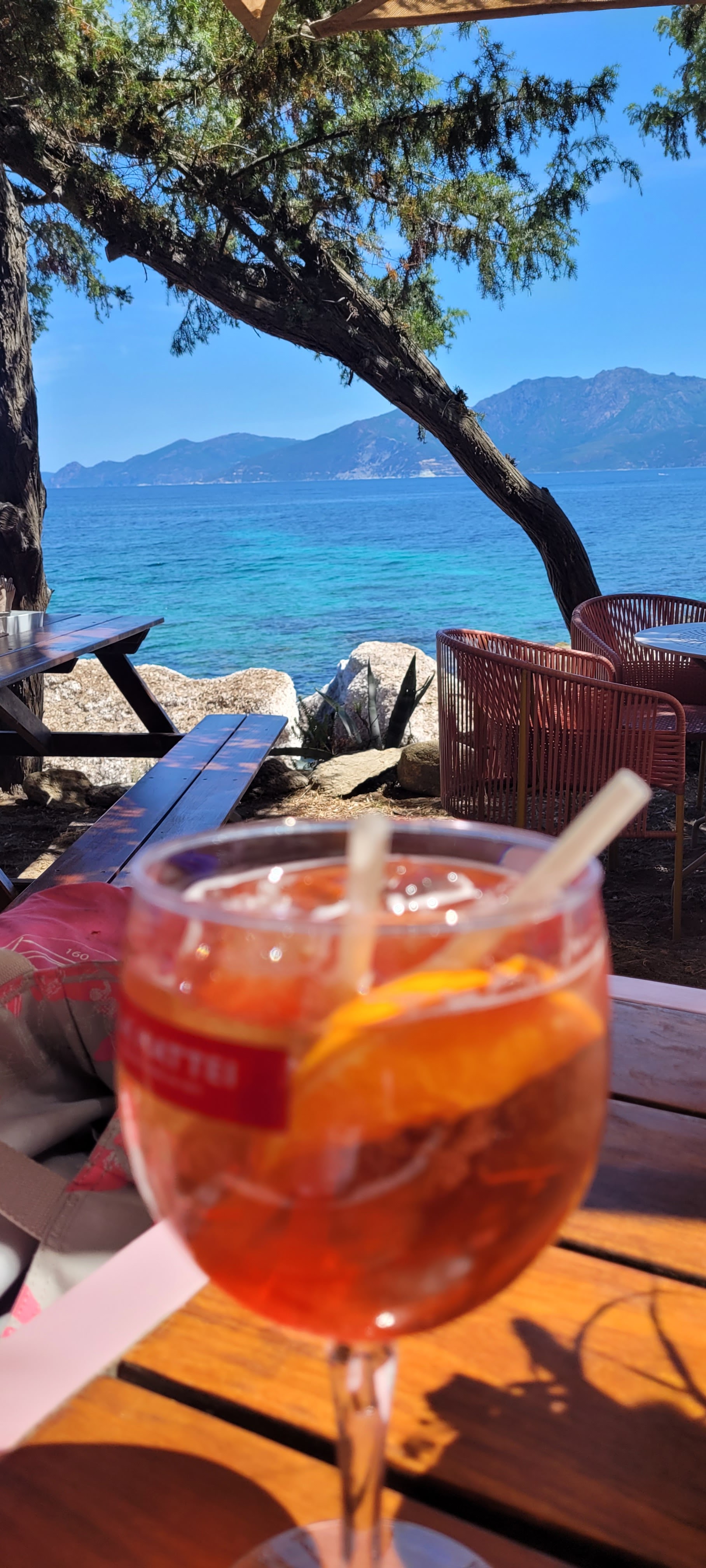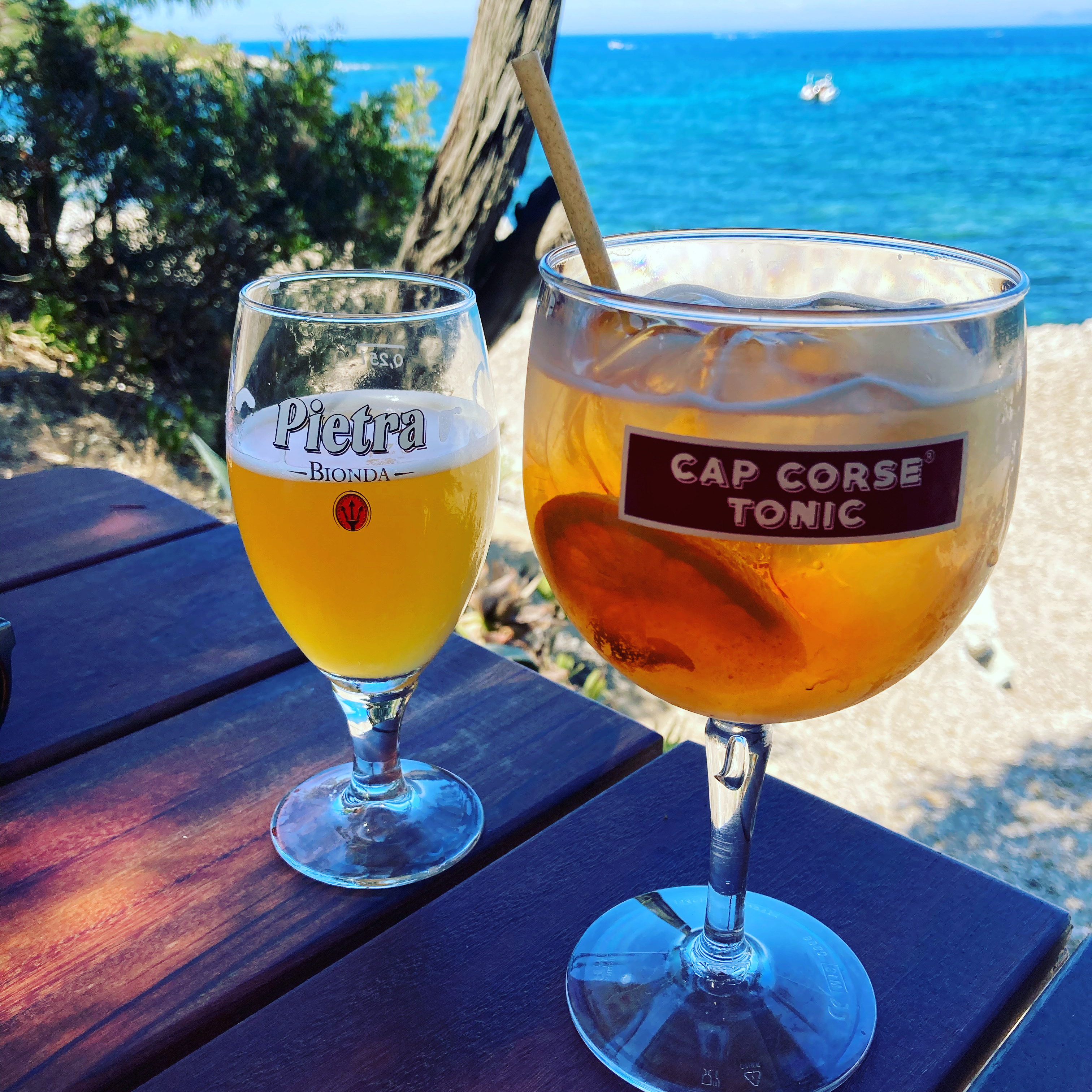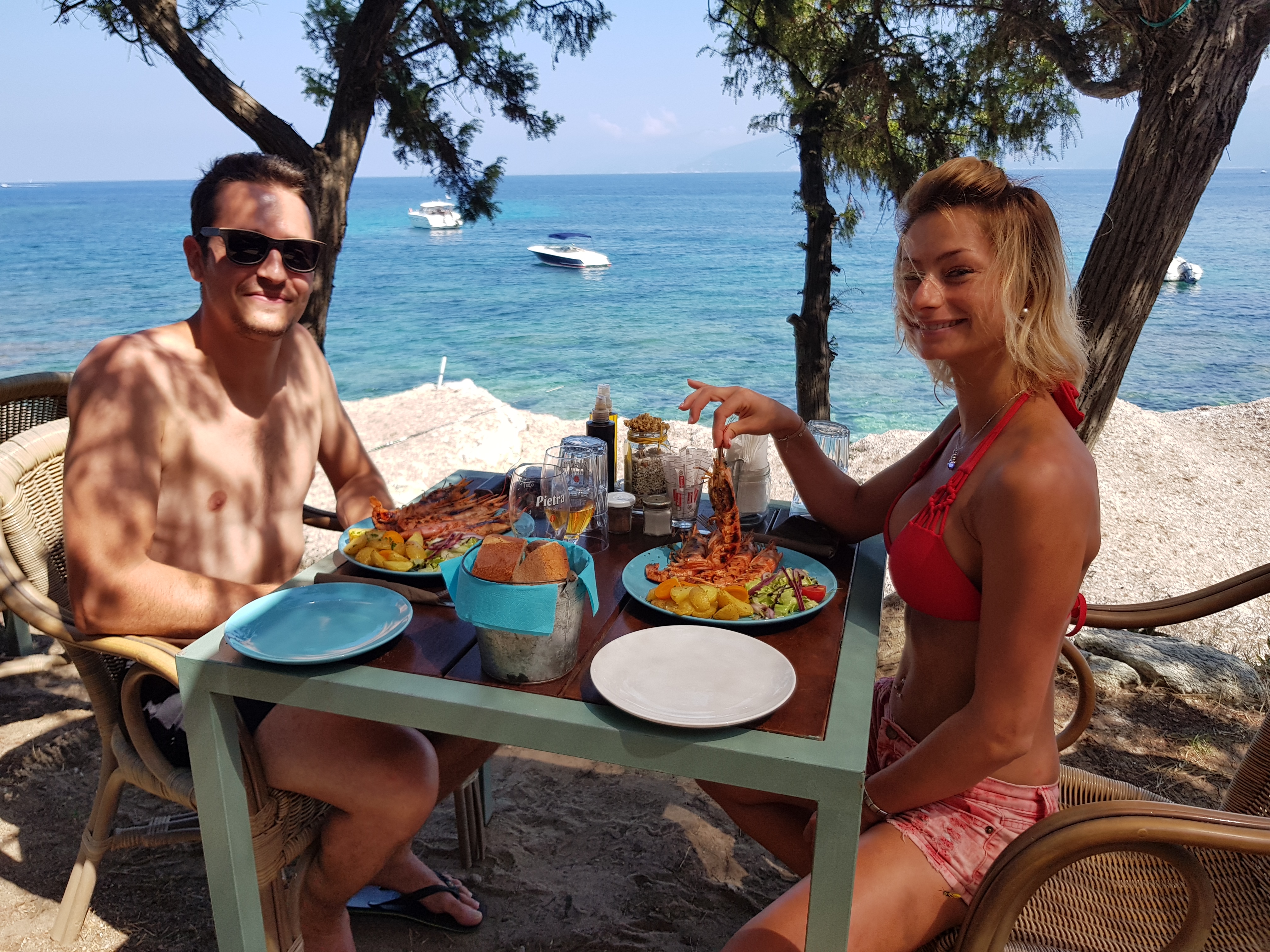 Après avoir bravé la houle avec notre bateau sans permis, nous parvenons à nous ancrer à quelques dizaines de mètres de la berge. S'en suis une bataille avec les oursins pour rejoindre la terre ferme et déguster le saint graal : une bonne pinte de pietra ! Quelle aventure ! Cadre idyllique mais les prix sont un peu abusés. Signé un chti pas forcément censé être là.