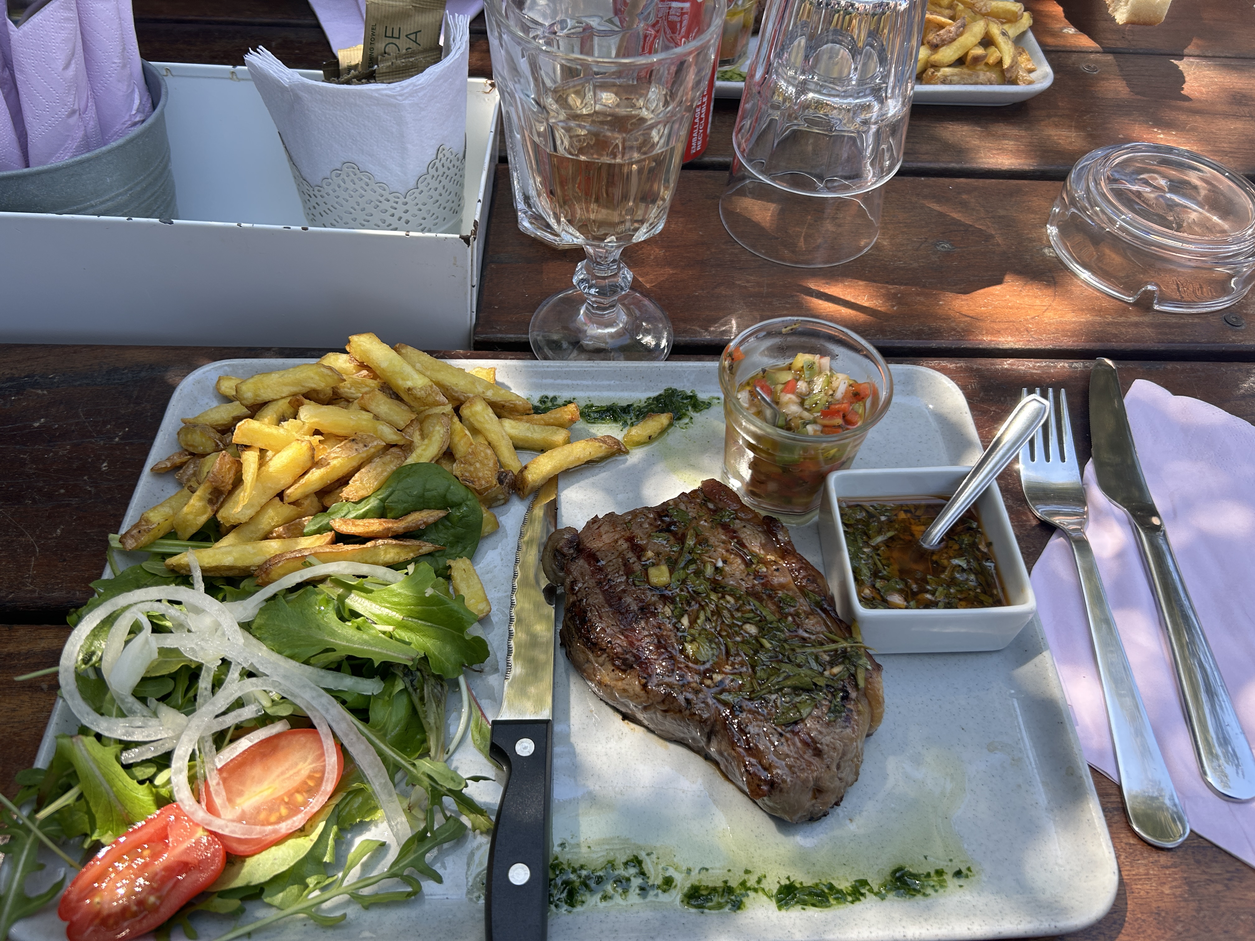 Moment magique dans ce restaurant. Un vrai havre de paix avec musique et déco au petit soin. Très bonnes salade autour de 15€ et grillade sautoirs de 25€, il y en a donc pour tous les budgets. Serveurs très dynamiques et drôles. Rien à redire ! Attention, 1/ réserver à l’avance. 2/ venez avec du liquide: pas de CB