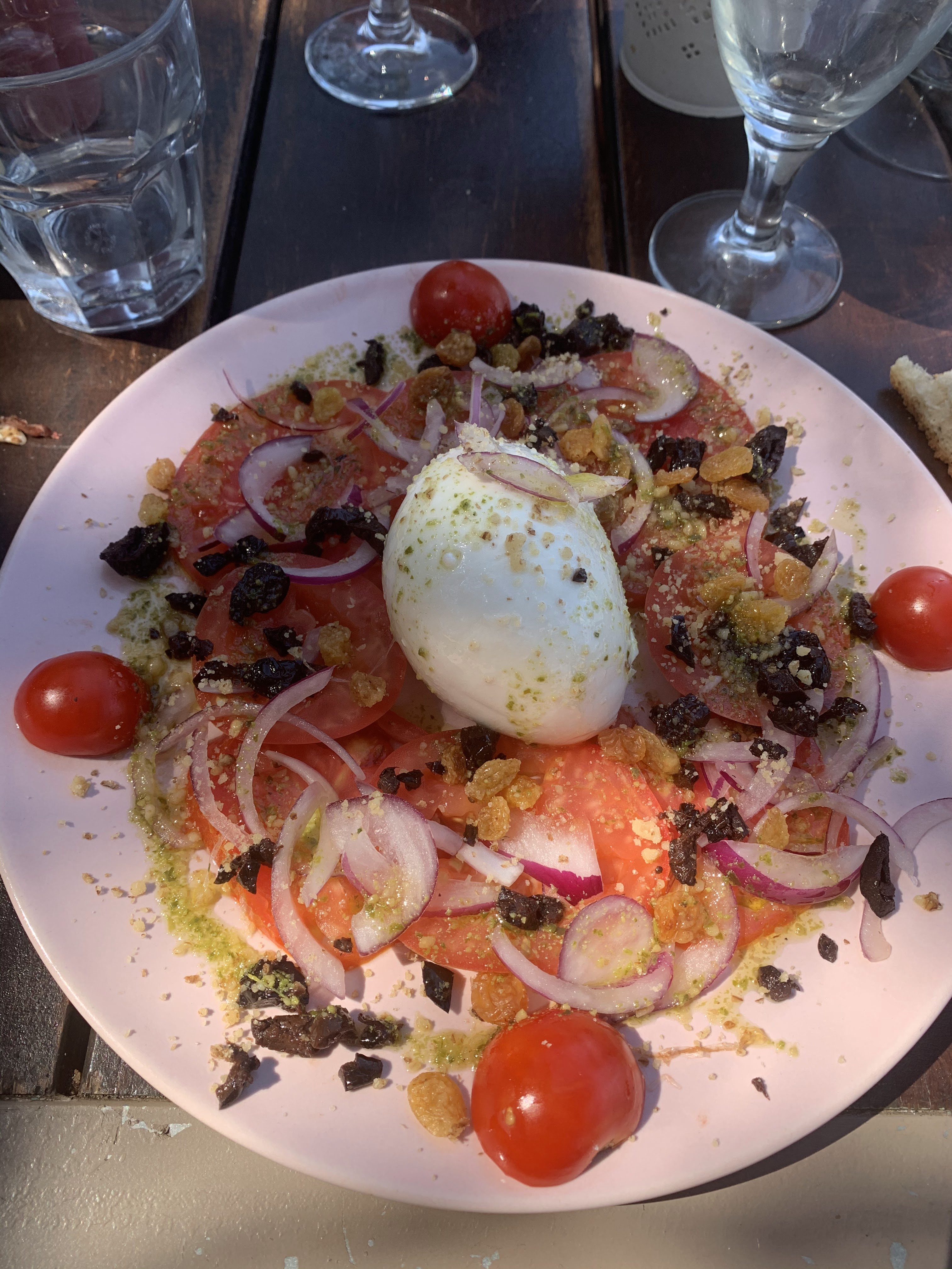 Nous n'avons pas pu manger sur place car nous n'avions pas réservé et tout était complet. Cependant la serveuse nous a gentiment proposé des sandwichs à emporter, dommage que les prix soient exorbitants (7€ le sandwich saucisson beurre ou tomates mozzarella)
