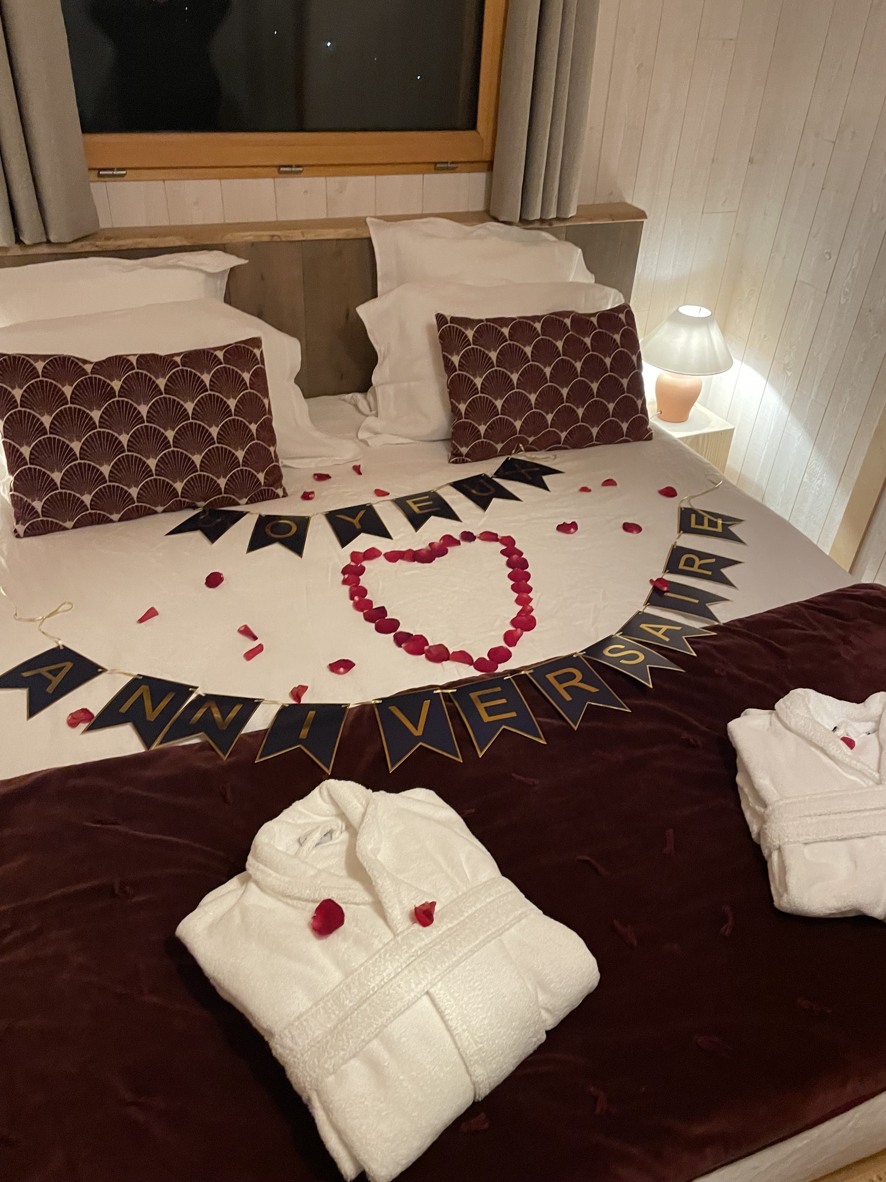 Ce séjour fut magnifique Nous y sommes aller pour fêter notre st Valentin et nos 10 ans de rencontre avec mon conjoint. Nous avons eu une petite intention avec des pétales sur le lit en forme de cœur Un grand merci pour ce séjour à Franck et toute son équipe. Je recommande +++++