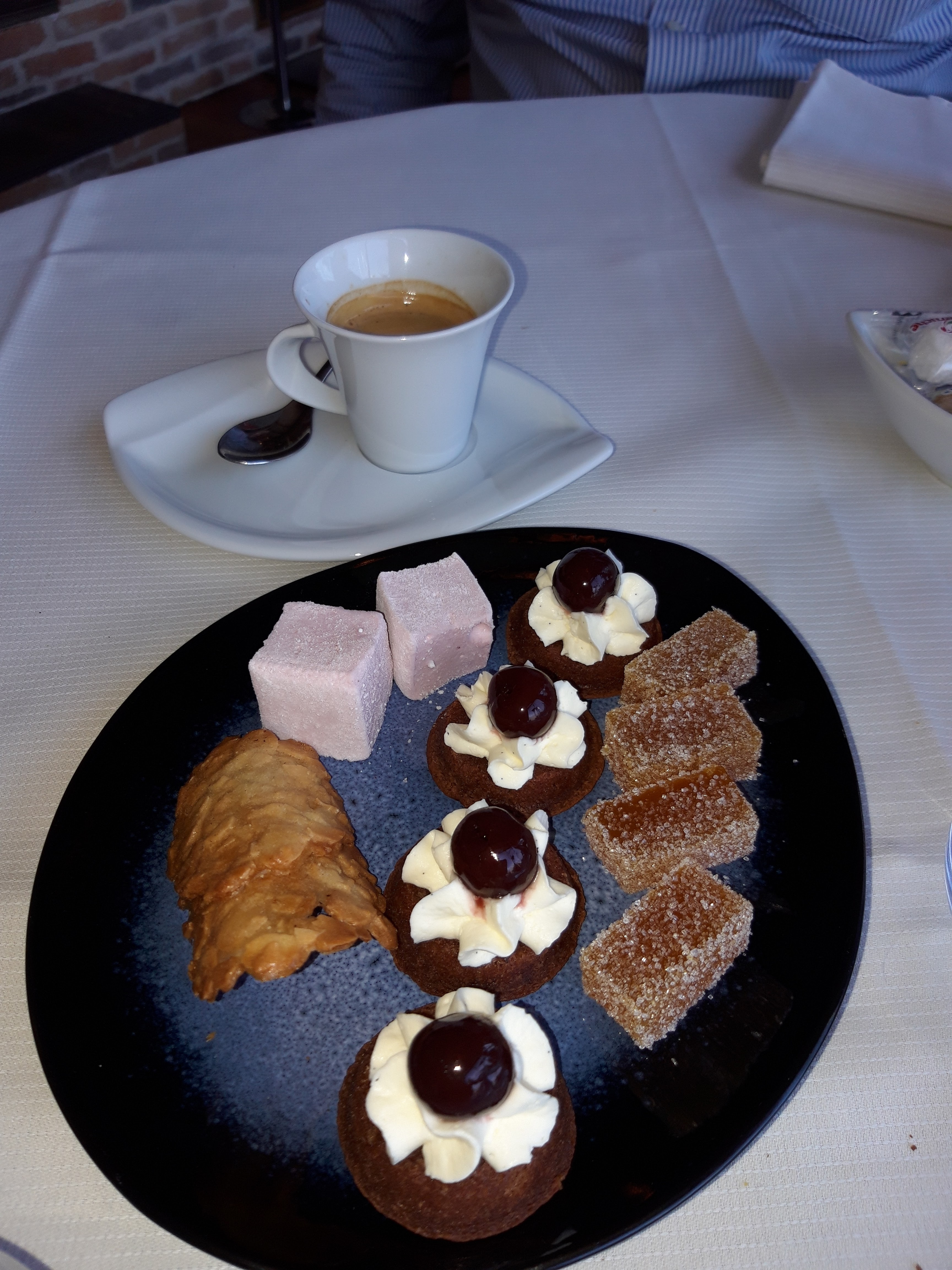 Attention, pratique commerciale curieuse avec les menus avec 2 entrées ! Un supplément est automatiquement appliqué alors qu'il n'y a justement que 2 entrées possibles... Dommage aussi pour les mignardises qui ne sont offertes qu'à la personne qui prend une boisson chaude.