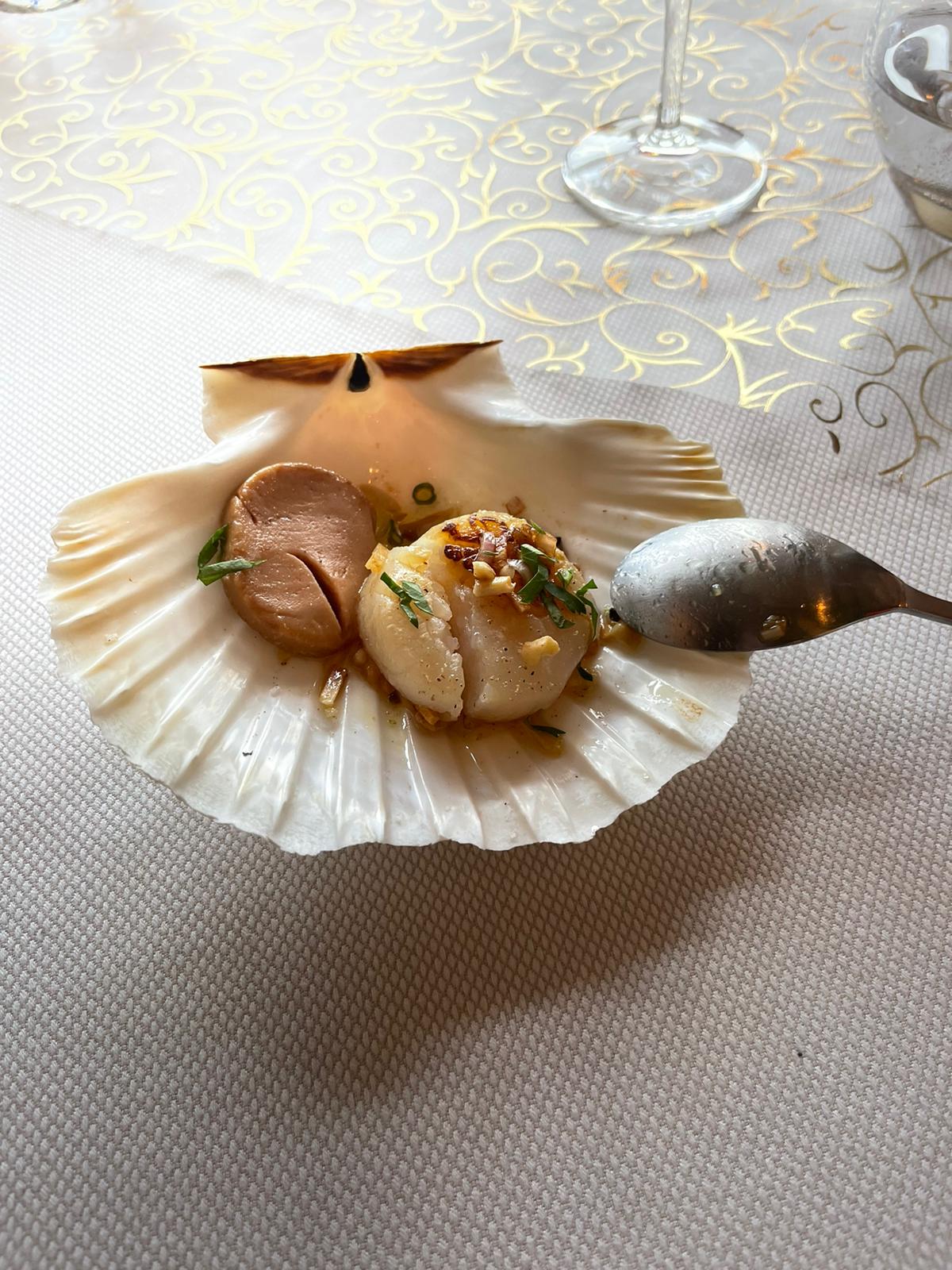 Foie gras sans goût entouré d’un caramel transparent Champagne bas de gamme un verre en apéro dans le menu donc celui qui ne peut boire d’alcool Quantité minimaliste.. Soufflé homard sans morceaux… 1 coquille saint Jacques coupée en 3 sur du choux fleur ? Pigeon avec sauce au vin sans arôme et encore choux de choucroute Seuls le fromage avec truffe et dessert furent correct. Pas de mignardises 10€ le verre honteux Menu 140€ hors de prix vu la cuisine minimaliste et servie tiède Quel gâchis du porte monnaie !!