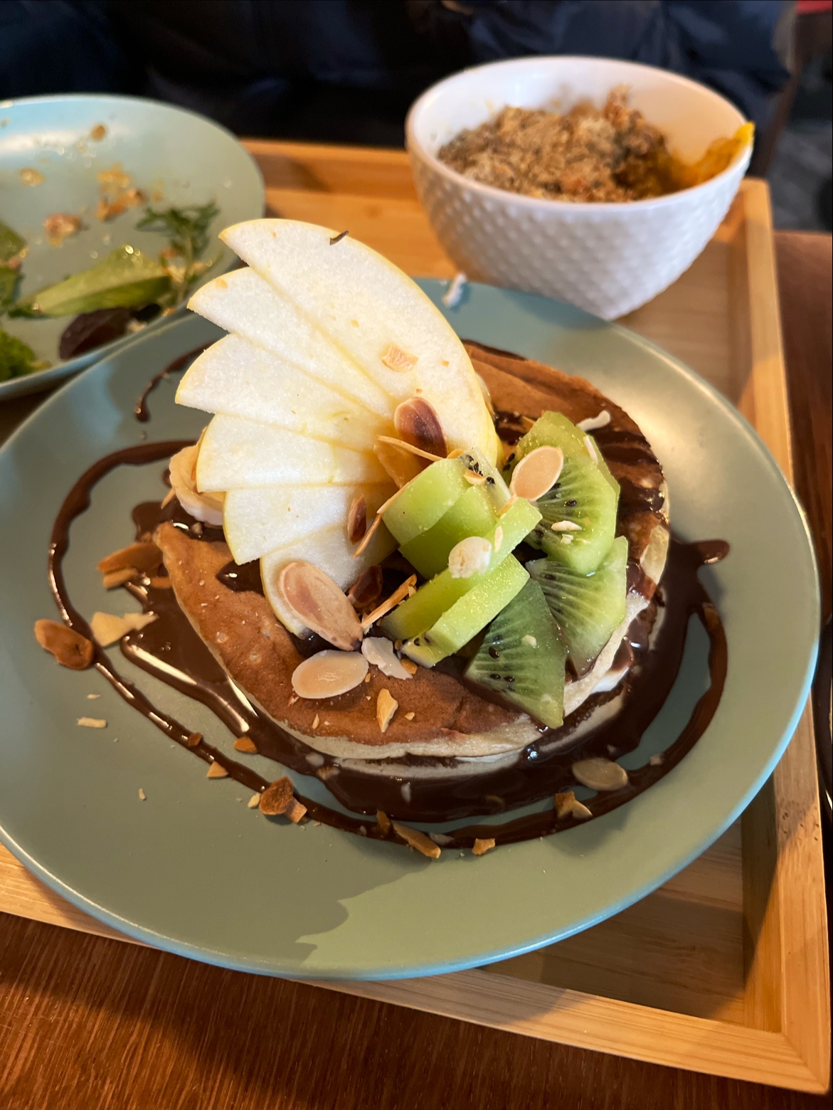 J’ai passé un super moment dans ce salon de thé à jeux! Le lieu est chaleureux, on s'y sent bien. Ils avaient même un brunch végé (une tartine avocat /œuf et un crumble pomme/cannelle). Et les pancakes étaient très bons aussi !